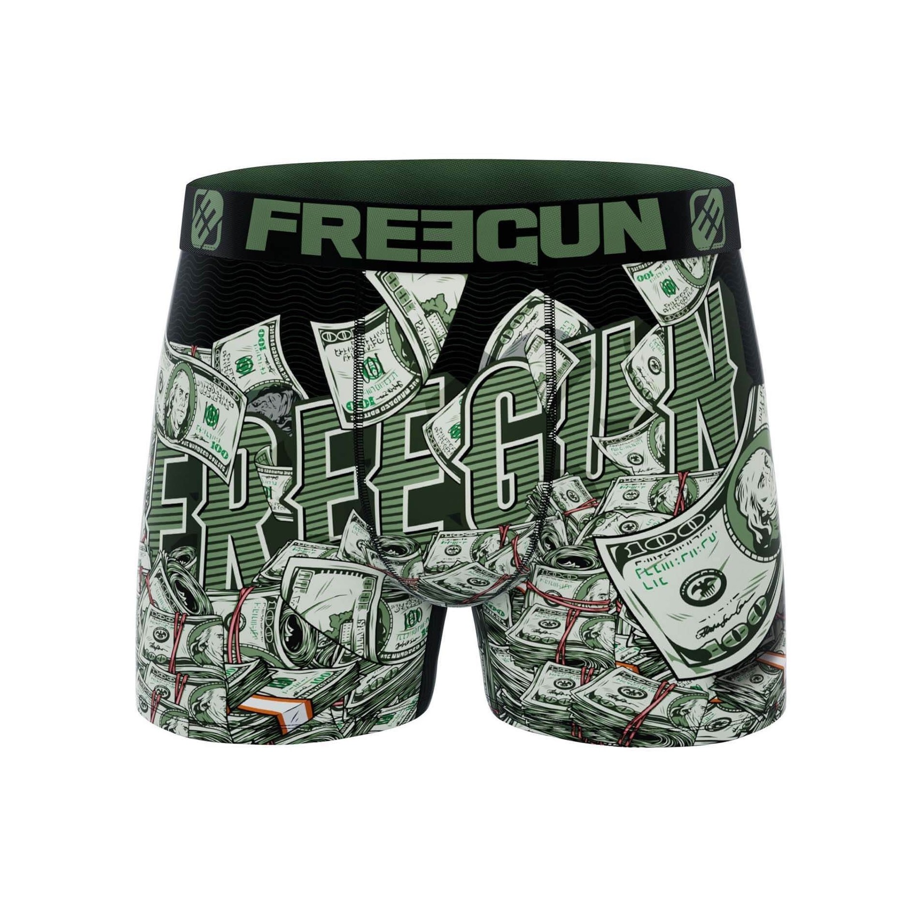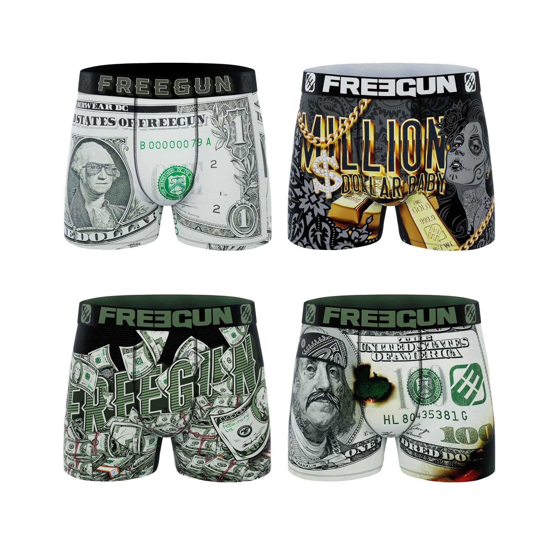 Fantastiskt paket med 4 FREEGUN boxershorts för pojkar tillägnade dem som älskarpengar och gröna sedlar.