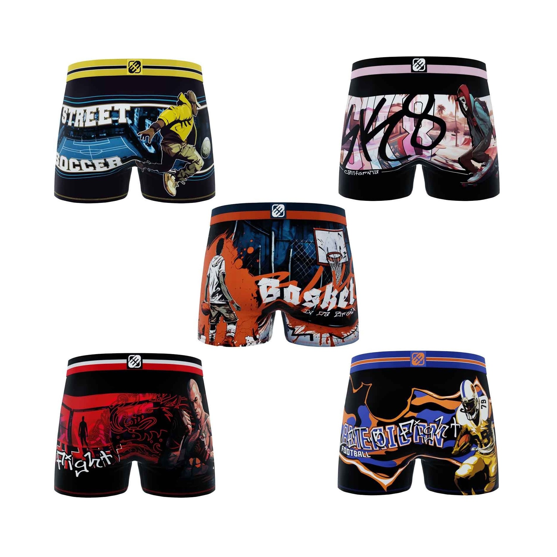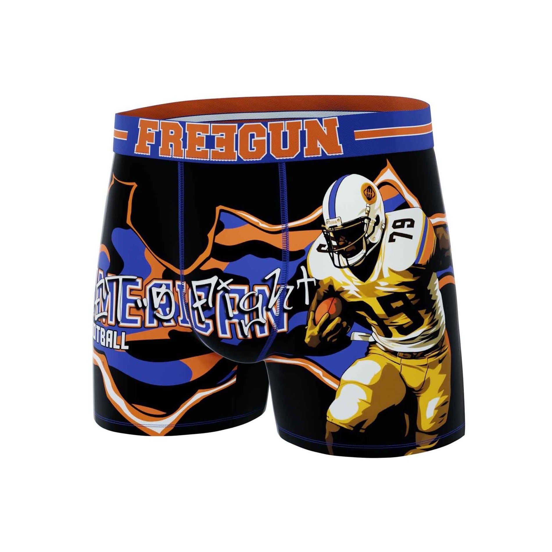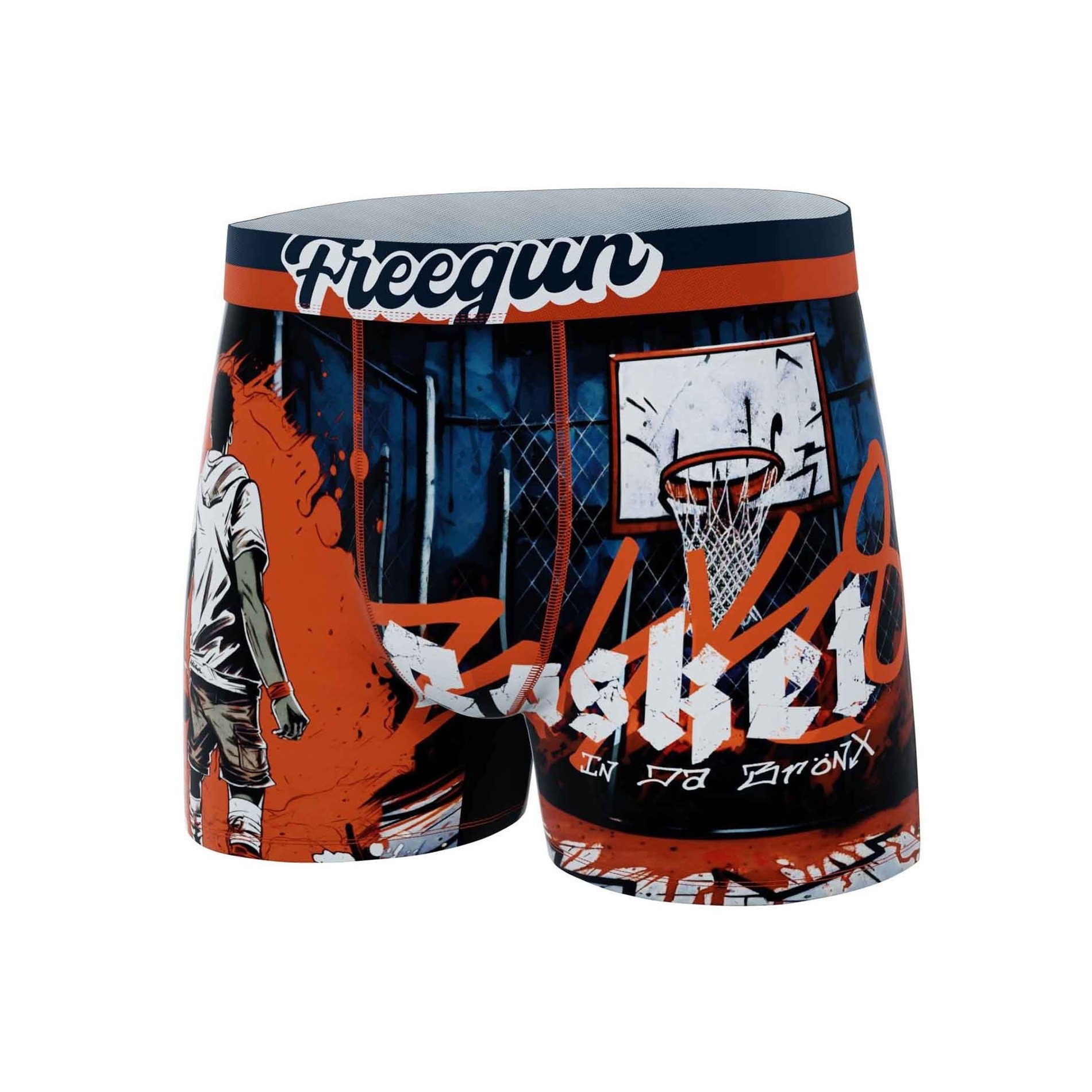 Freegun Förpackning med 5 boxershorts för pojkar Street Sport. Boxershorts som representerar streetsporter som fotboll, basket, street fight, skateboard och fotboll. 92% Polyester 8% Elastan Foder:100% Bomull.