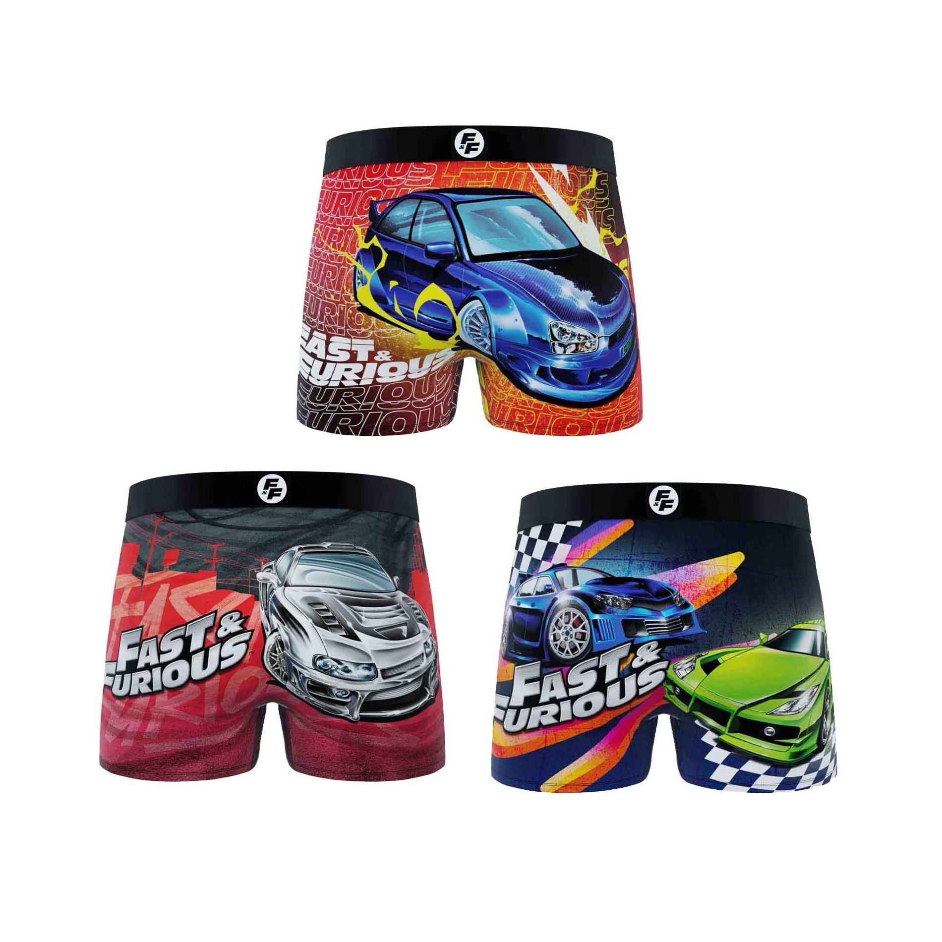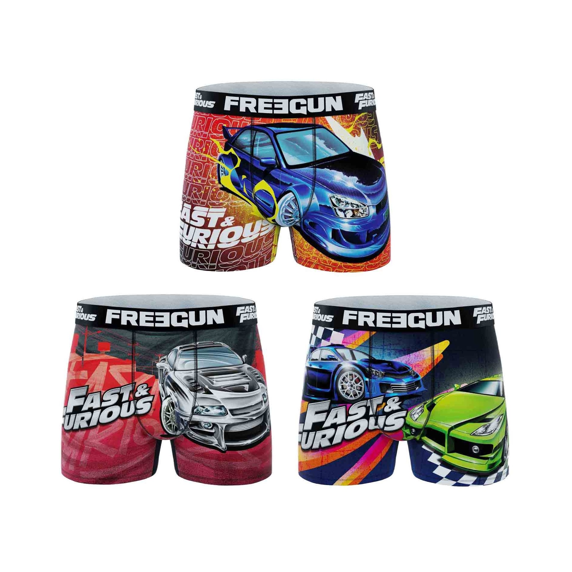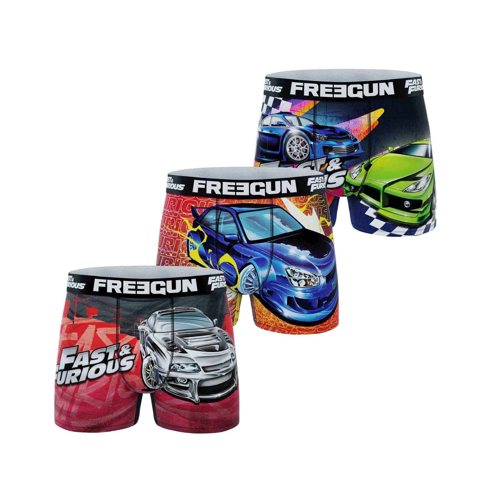 Upptäck setet med 3 boxershorts för pojkar Freegun x Fast & Furious. Skön mikrofiber med snygga motiv från den berömda sagan. Perfekt för unga bilfantaster!