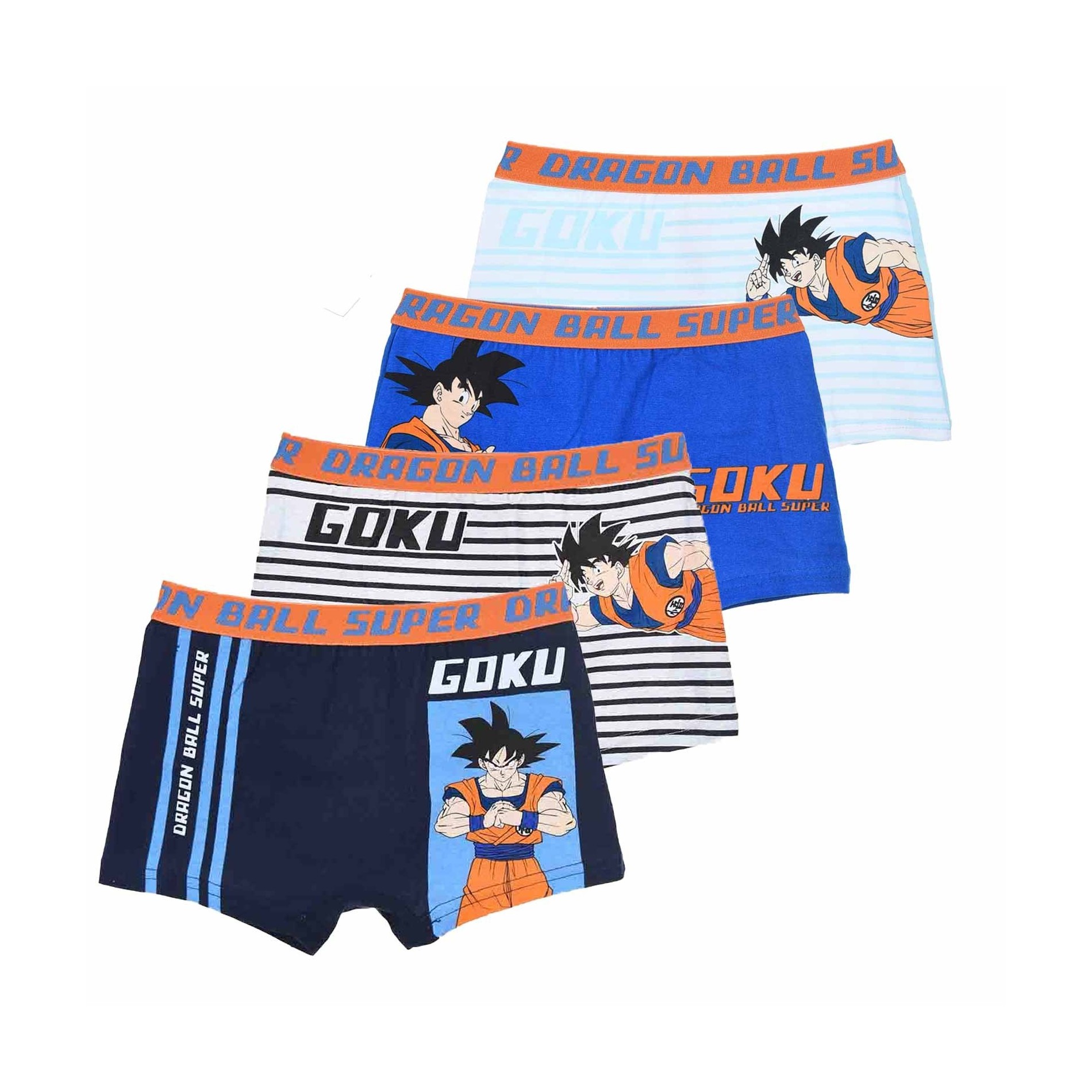 Förpackning med 4 boxershorts i 100% bomull för pojkar med Goku - Dragon Ball Super. Färgglada mönster, elastisk midjeresår med märke, optimal komfort. Under officiell licens. 95% bomull och 5% elastan