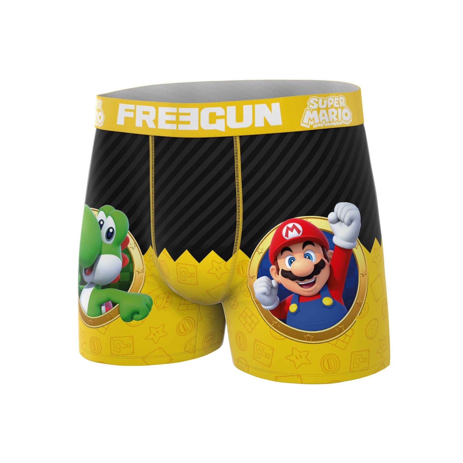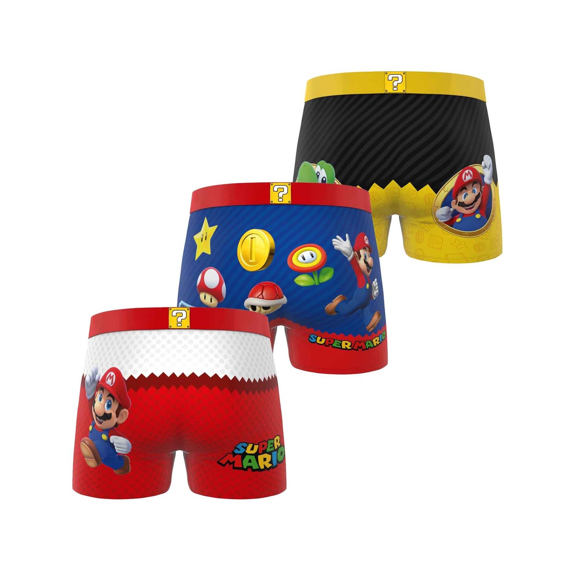 3-pack "Super Mario Bros" Boys' Microfibre Boxer Briefs - Freegun Under officiell Nintendo / Super Mario Bros-licens Mjukt, stretchigt mikrofibertyg: 92% polyester, 8% elastan Elastisk midjeresår Freegun för perfekt passform Färgglada mönster med Mario, Yoshi och kultföremål från spelet Bekvämt, andas och perfekt för vardagsbruk