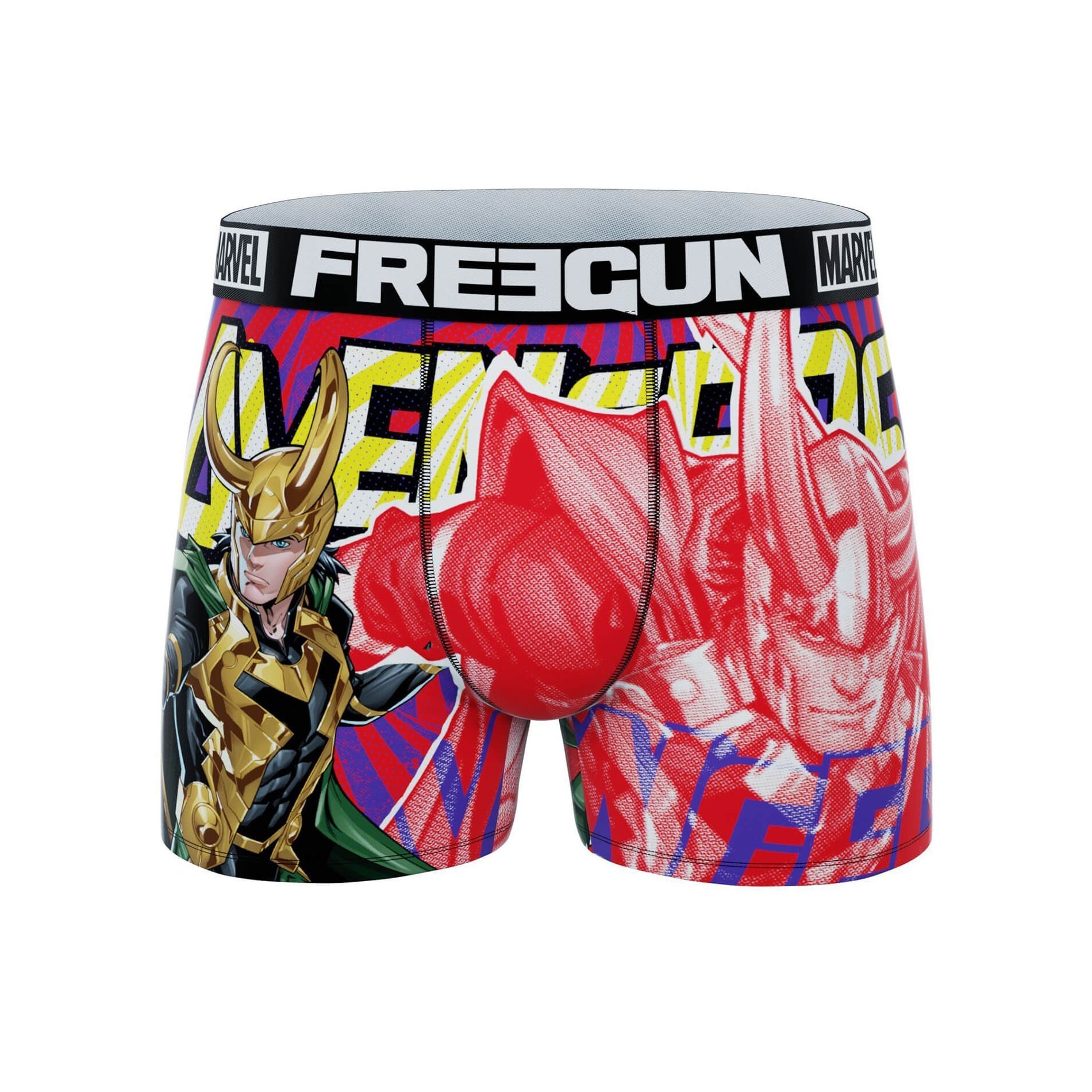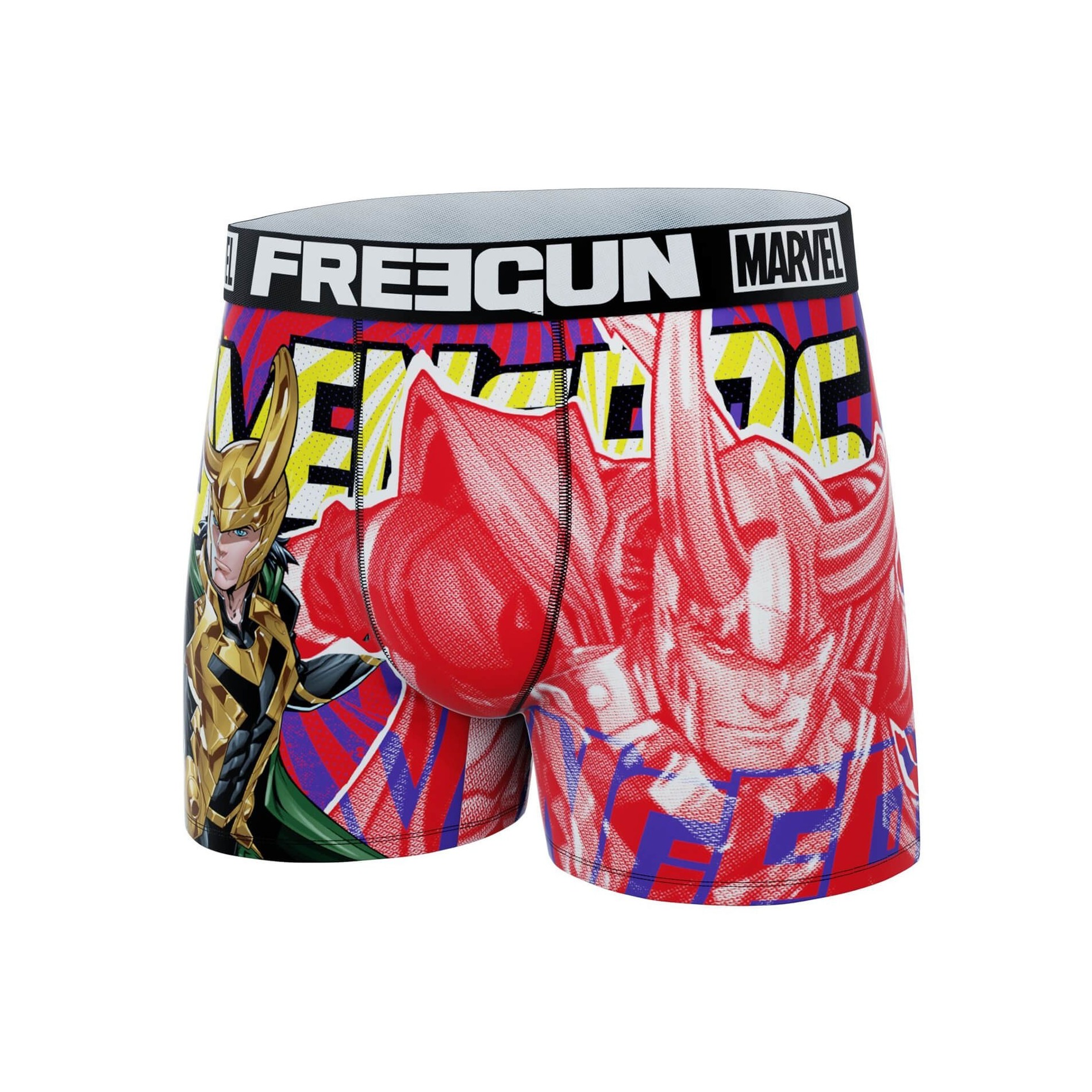 Boxershorts Freegun Marvel-pojken Loki. Fans av serietidningar kan bära dessa boxershorts med Thors bror Loki . 92% polyester, 8% elastan 100% bomull foder