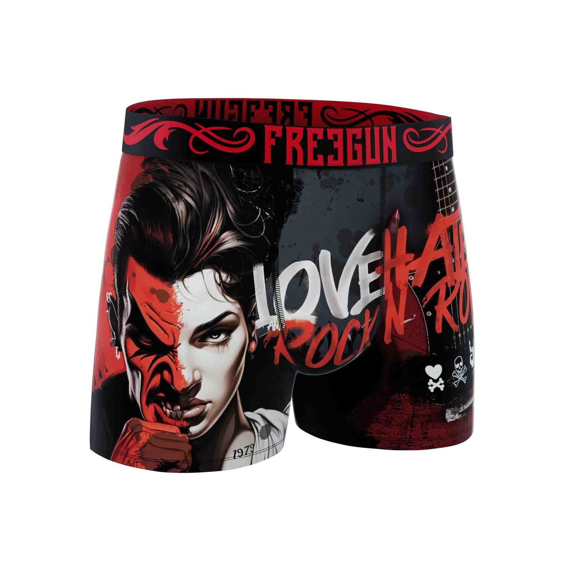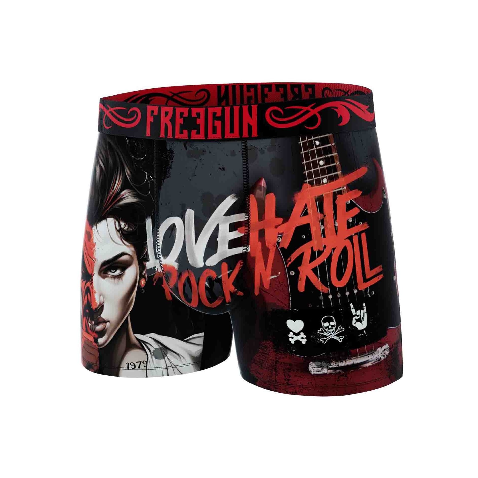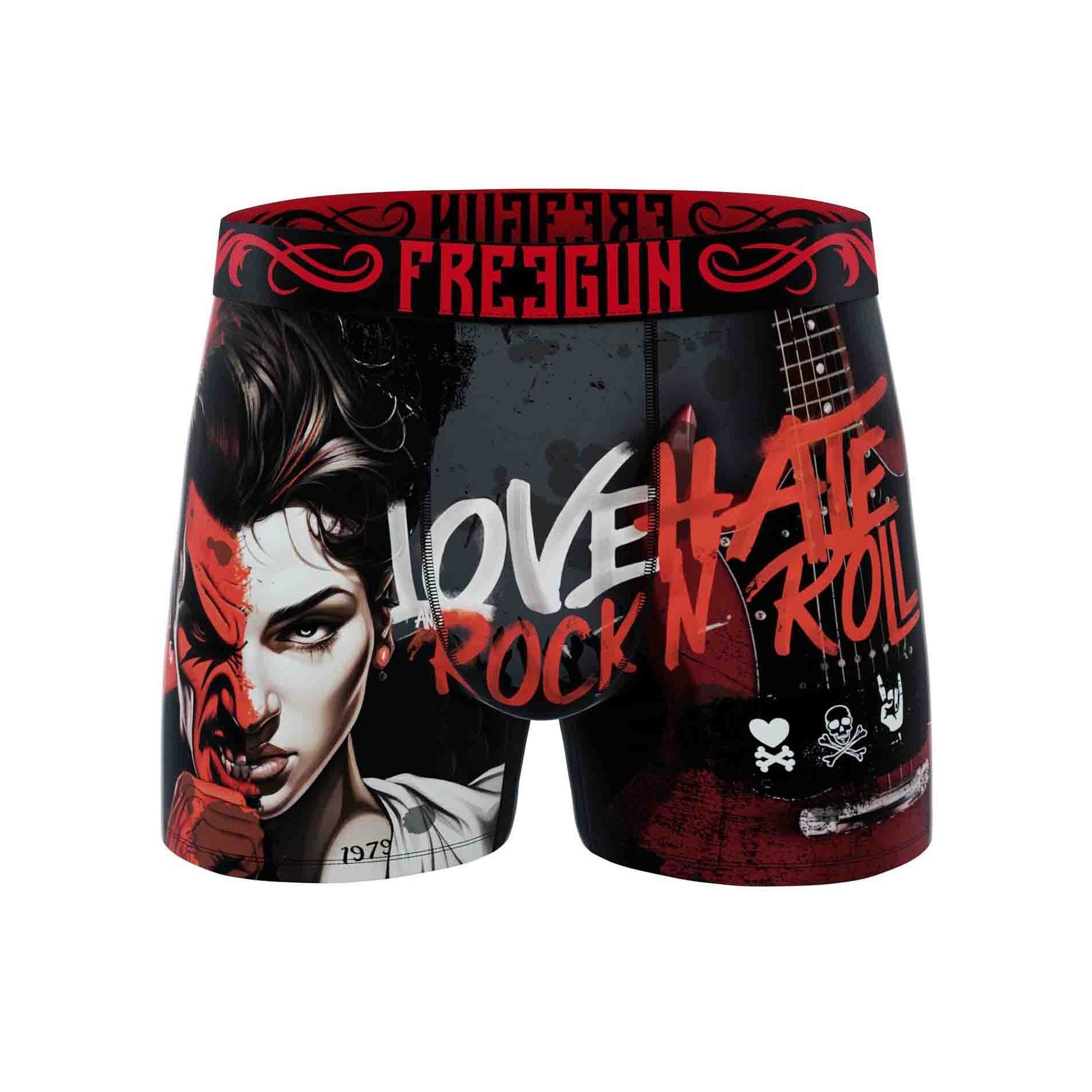 Uttryck din rebelliska sida med dessa djärvt designade FREEGUN herrboxershorts "Love Hate Rock n Roll". Boxershortsen är tillverkade av ultramjuk mikrofiber och kombinerar komfort, stil och rockanda. Det grafiska mönstret blandar element av kärlek och uppror, perfekt för fans av rockmusik och avantgardistiska trender. Ett måste för att visa upp din personlighet samtidigt som du är bekväm.