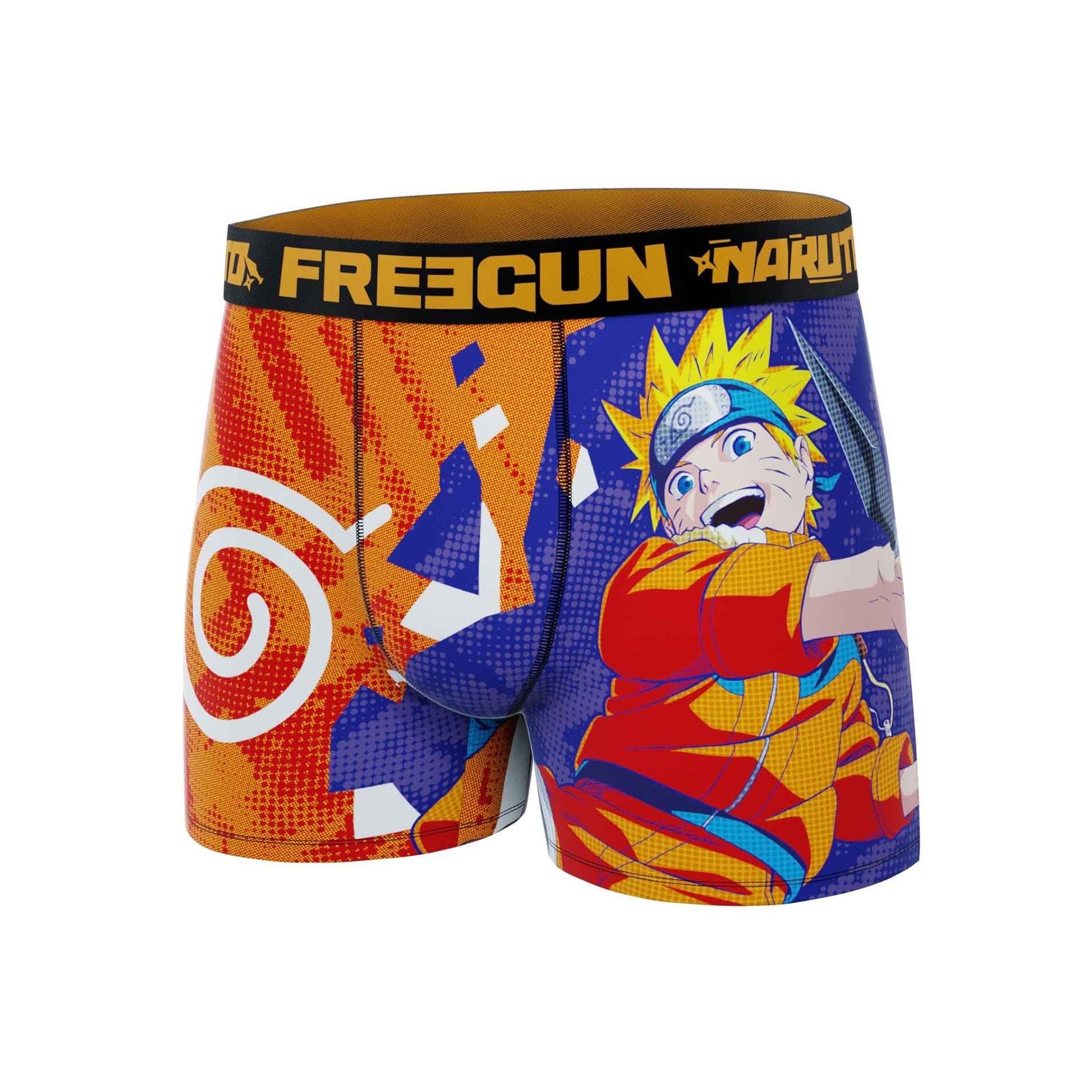 Anta ninjastilen med Naruto Classic 7 herrboxershorts från Freegun. Komfort i mikrofiber, explosiv design och den officiella licensen för kultmanga Naruto!