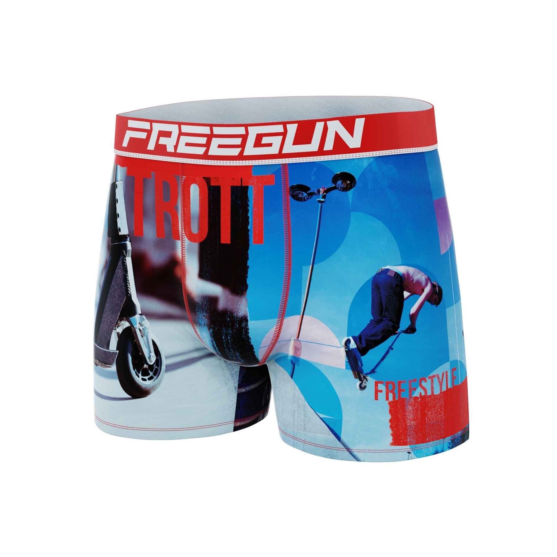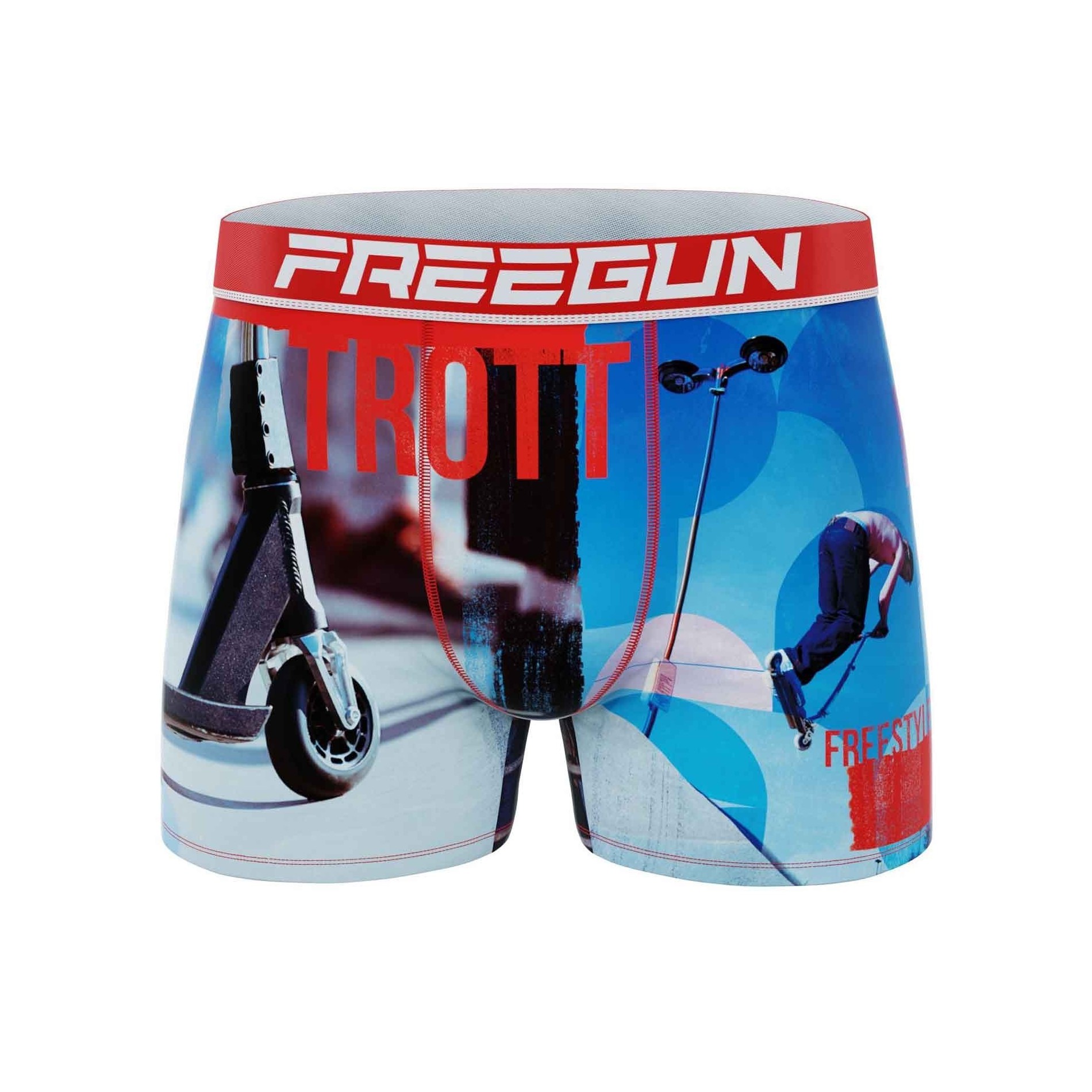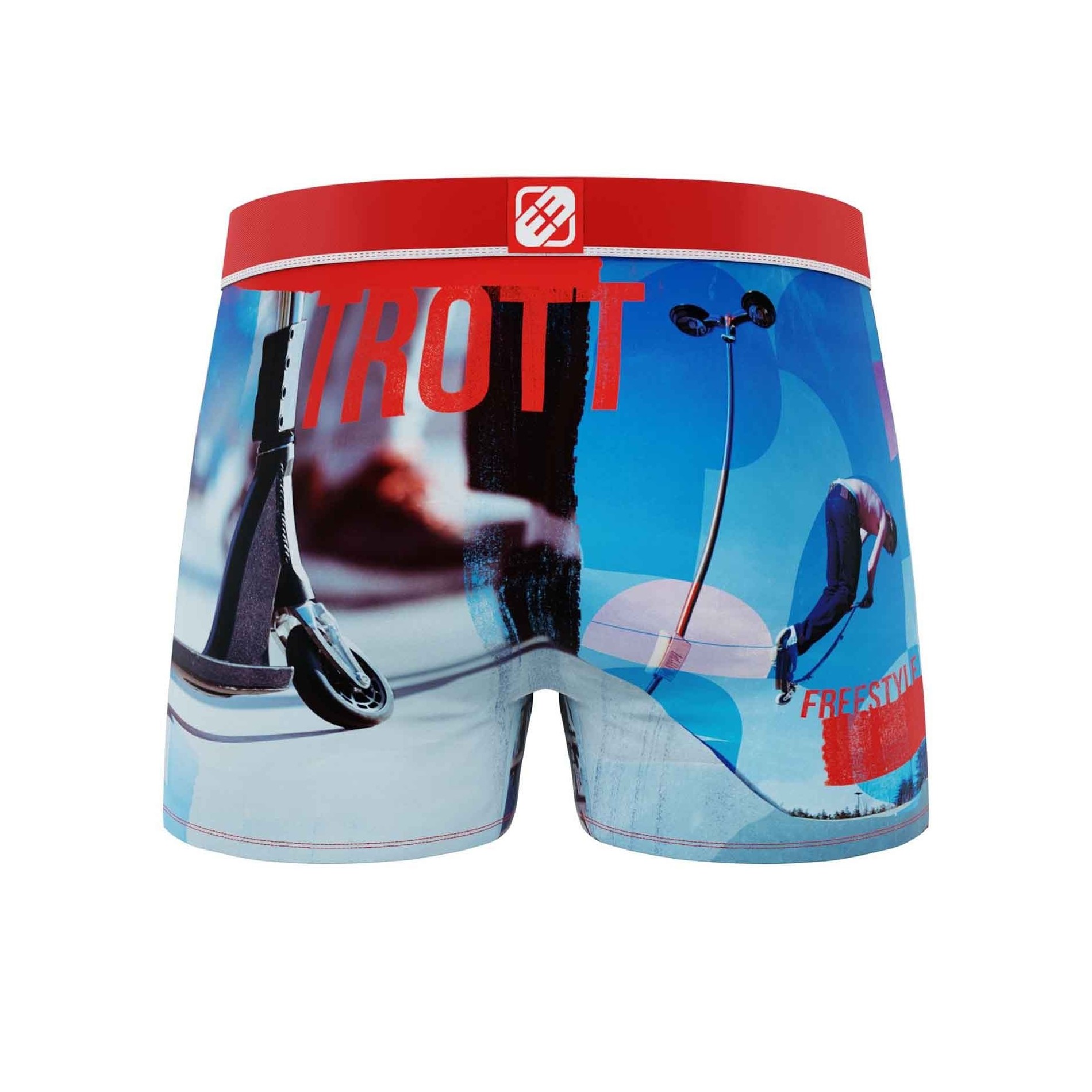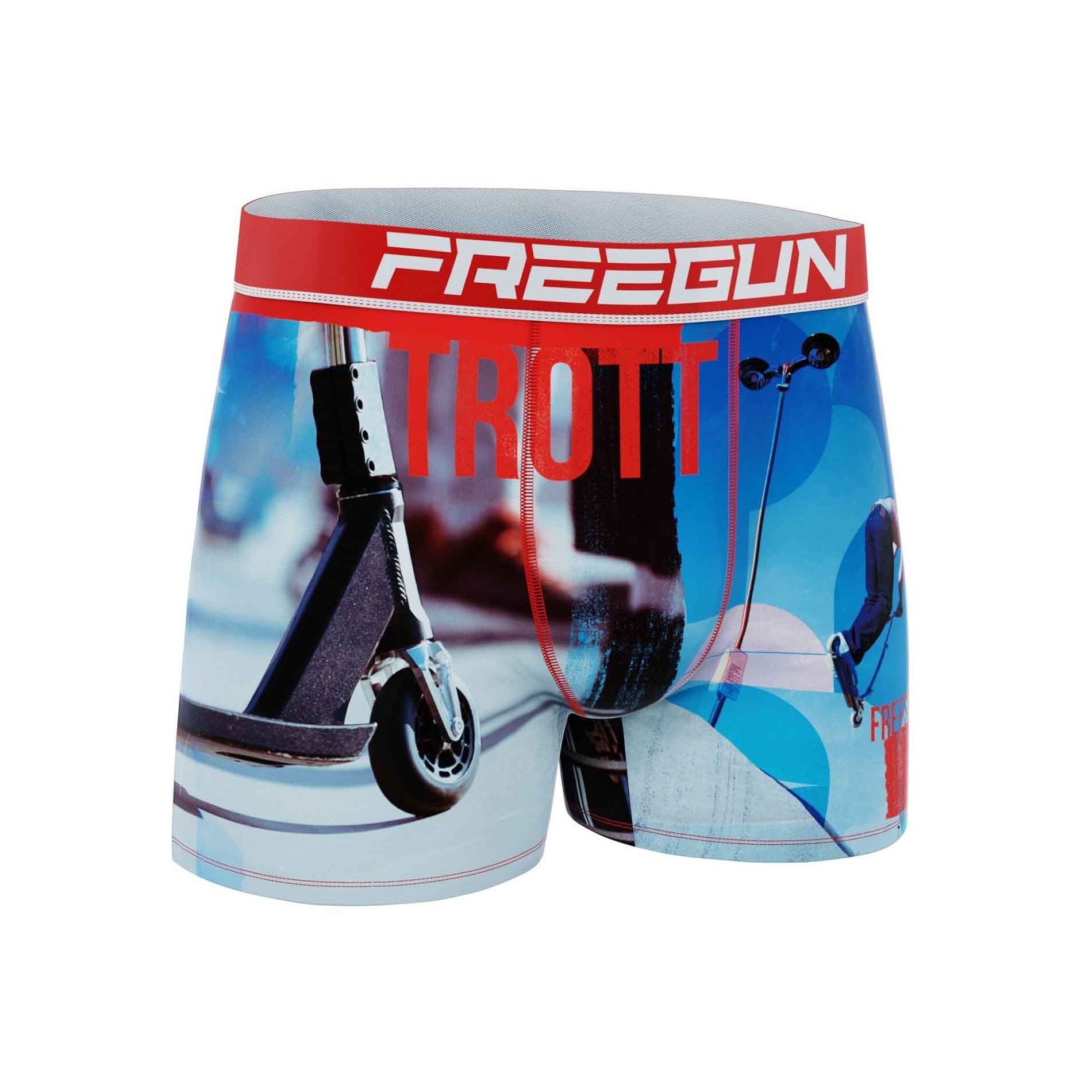 Boxershorts för män Freegun "TROTT Freestyle" i bekväm mikrofiber. Extremt scootermotiv, röd linning, perfekt för urbana sportfans.