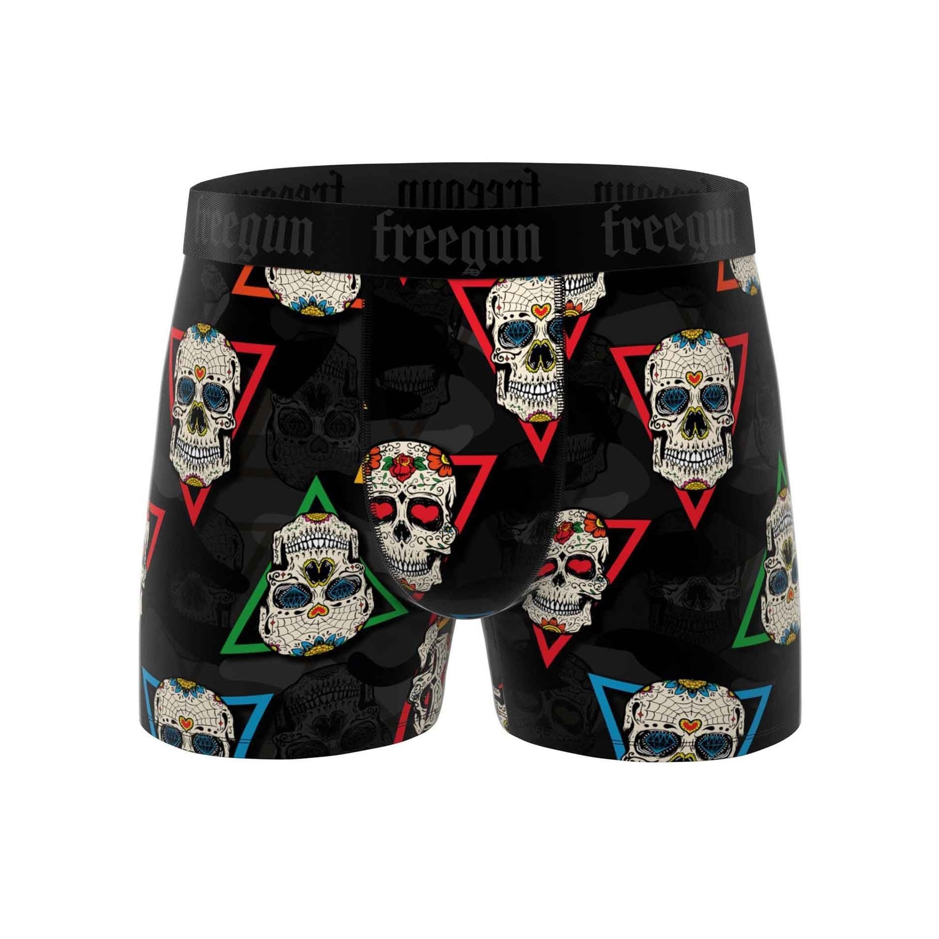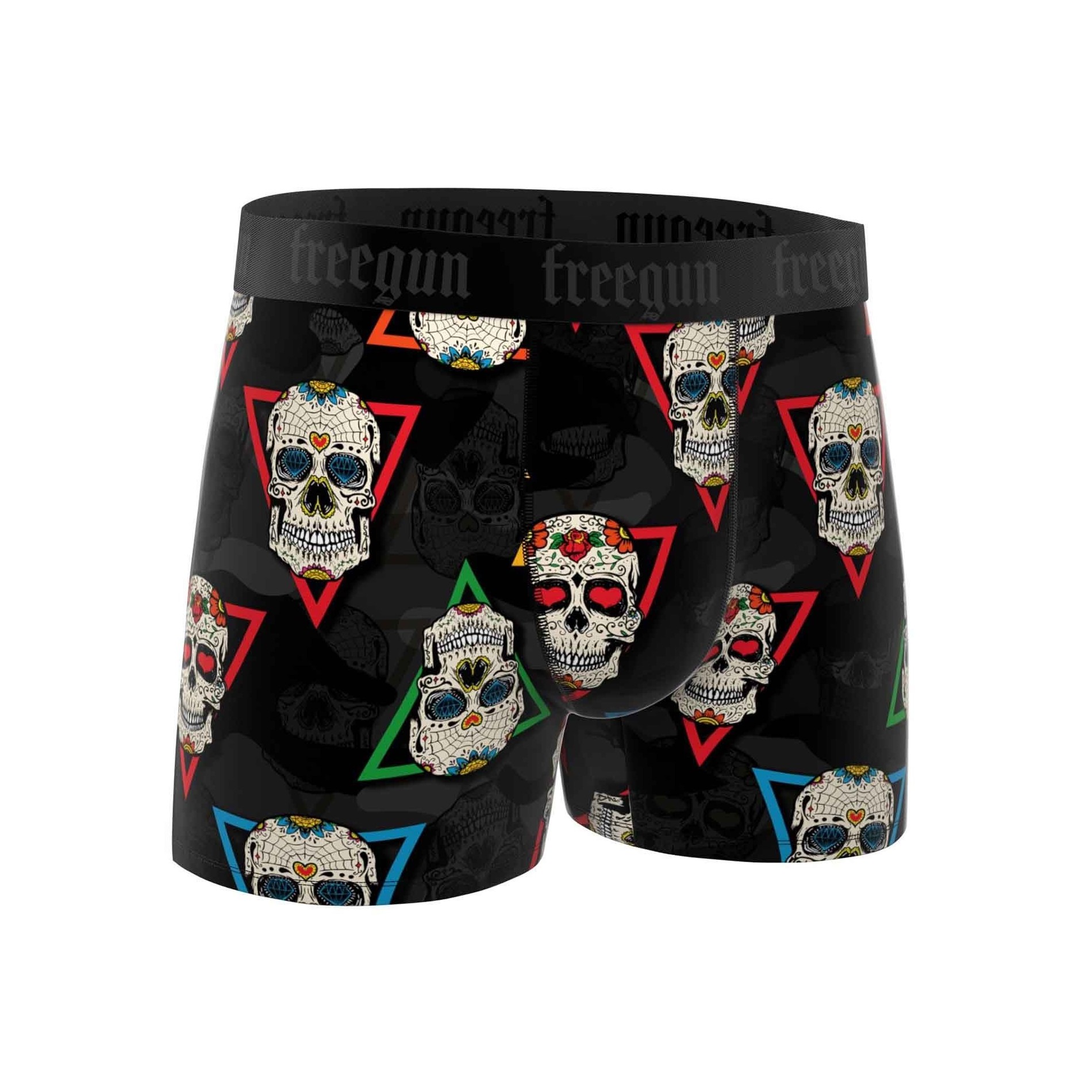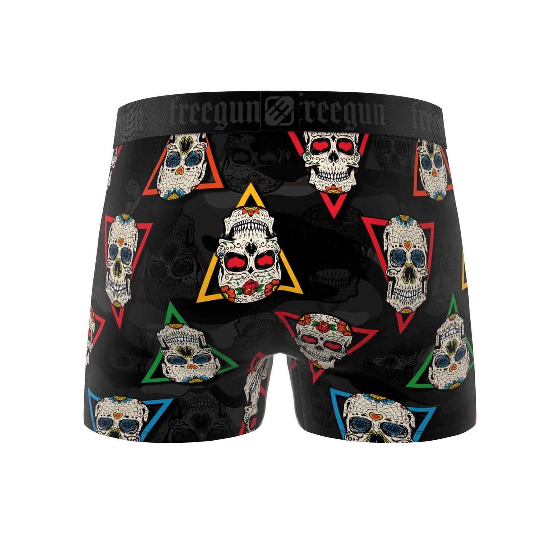 Boxershorts för män Freegun i mikrofiber som andas med "Día de la Muerte" calaveramotiv. Stretchkomfort, snabbtorkande, elastisk midjeresår. Storlekar S till XXL.