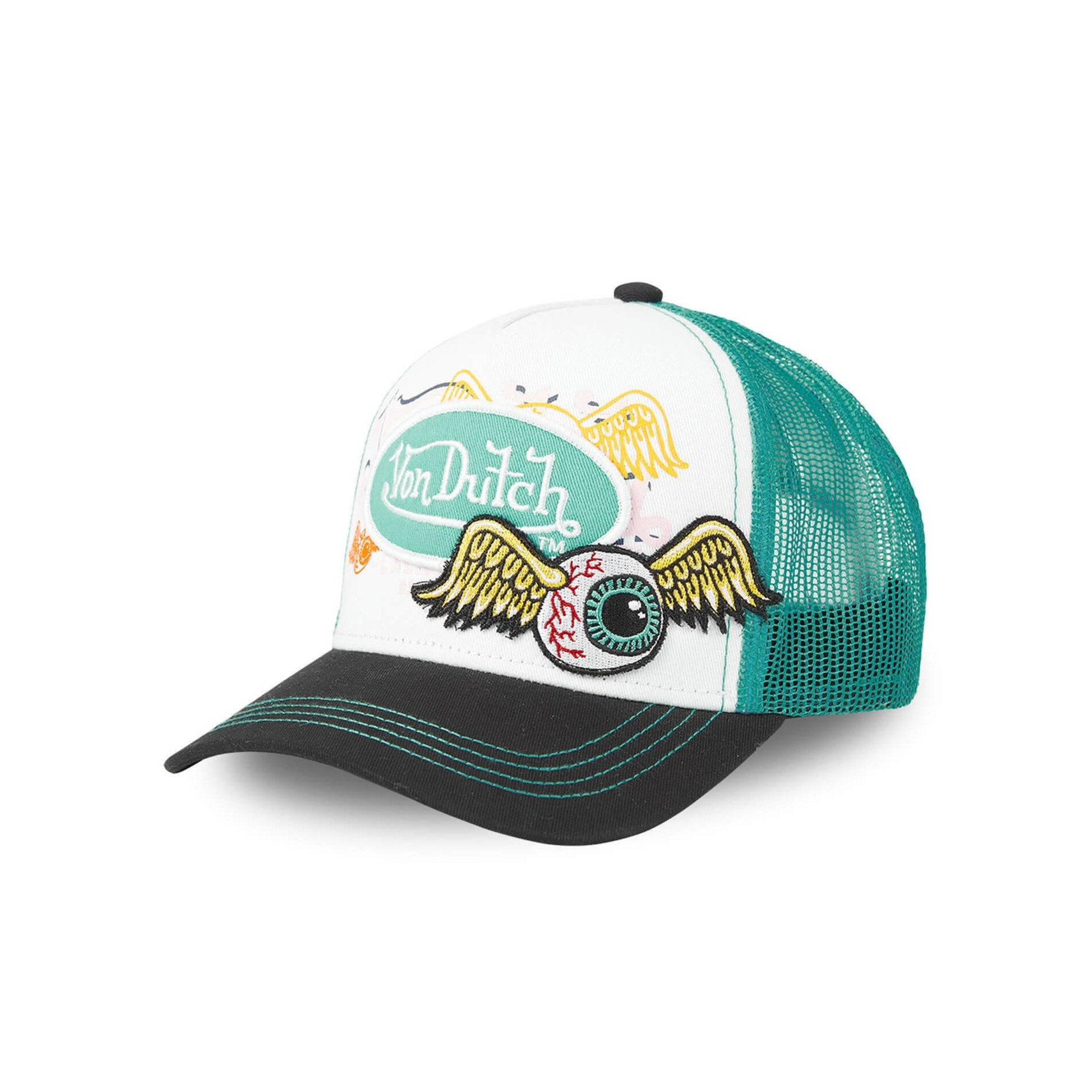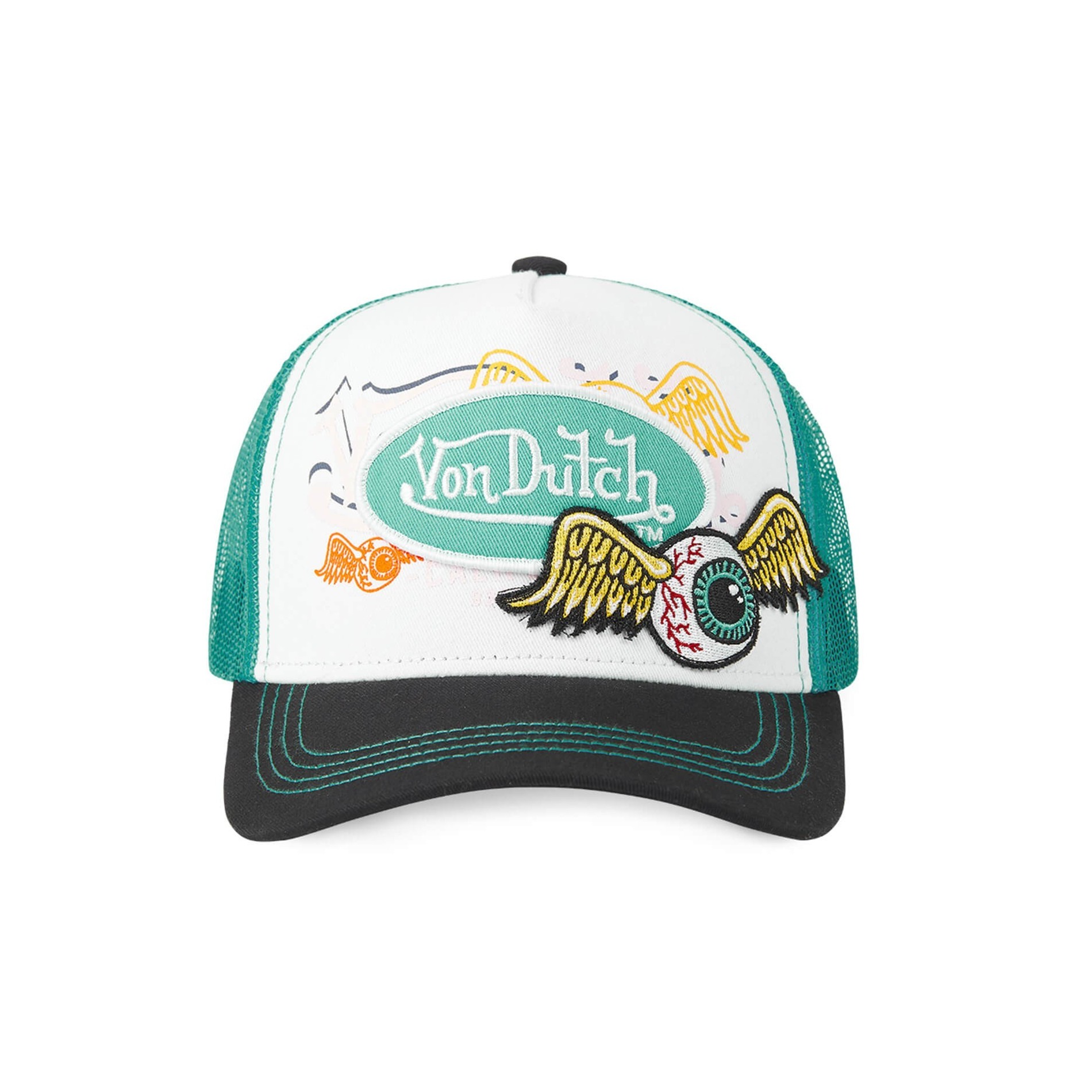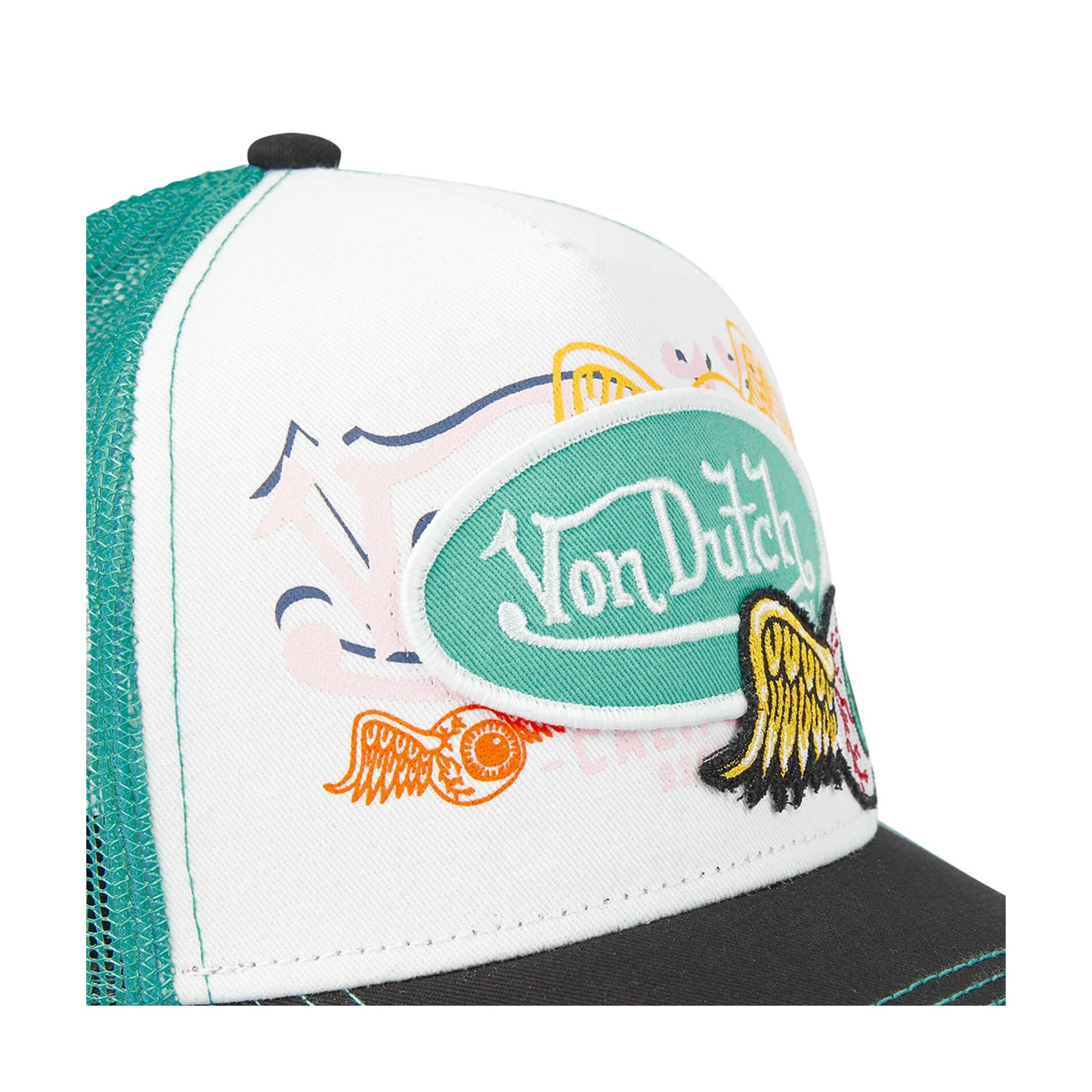 Överbroderade märken Von Dutch och tryckta på visiret.