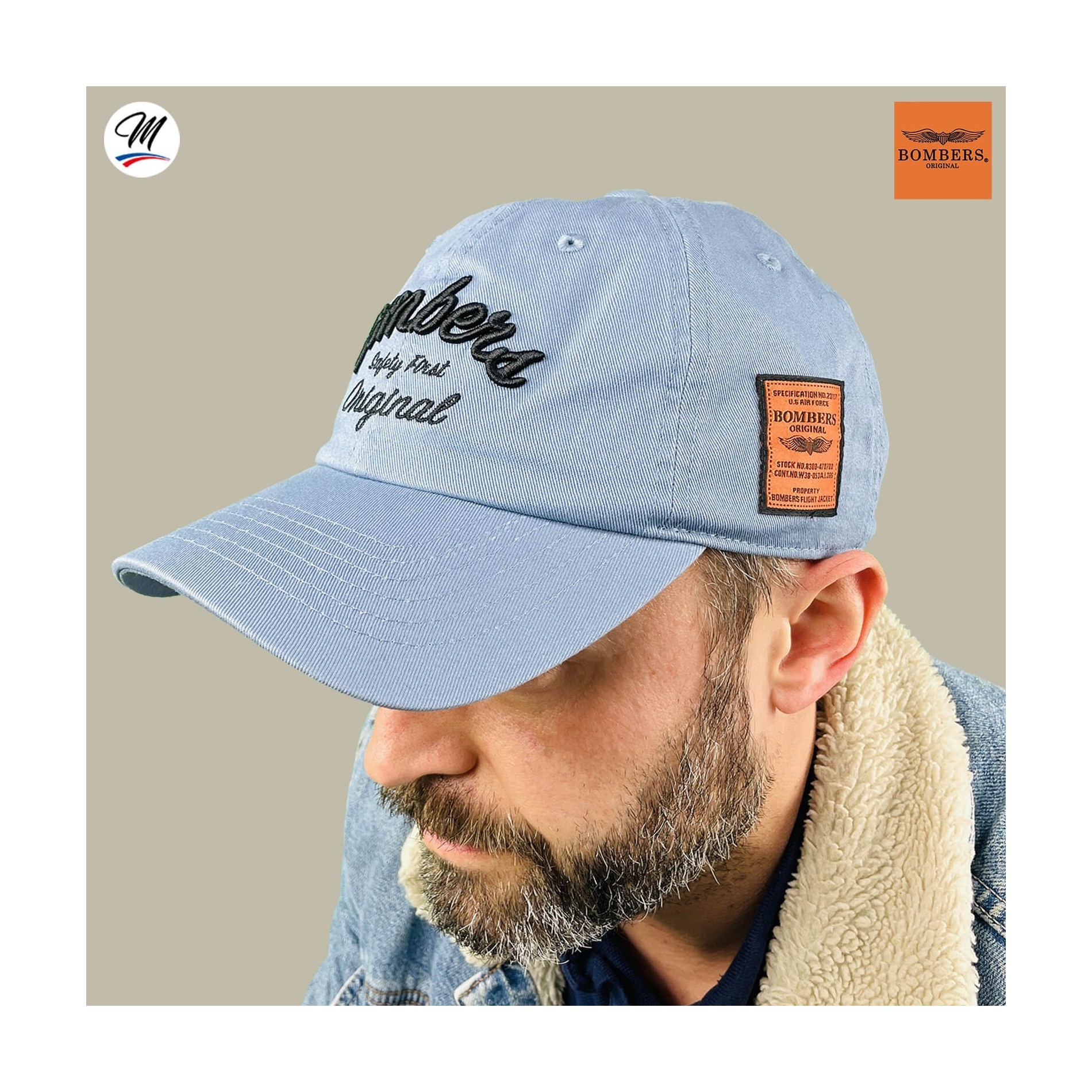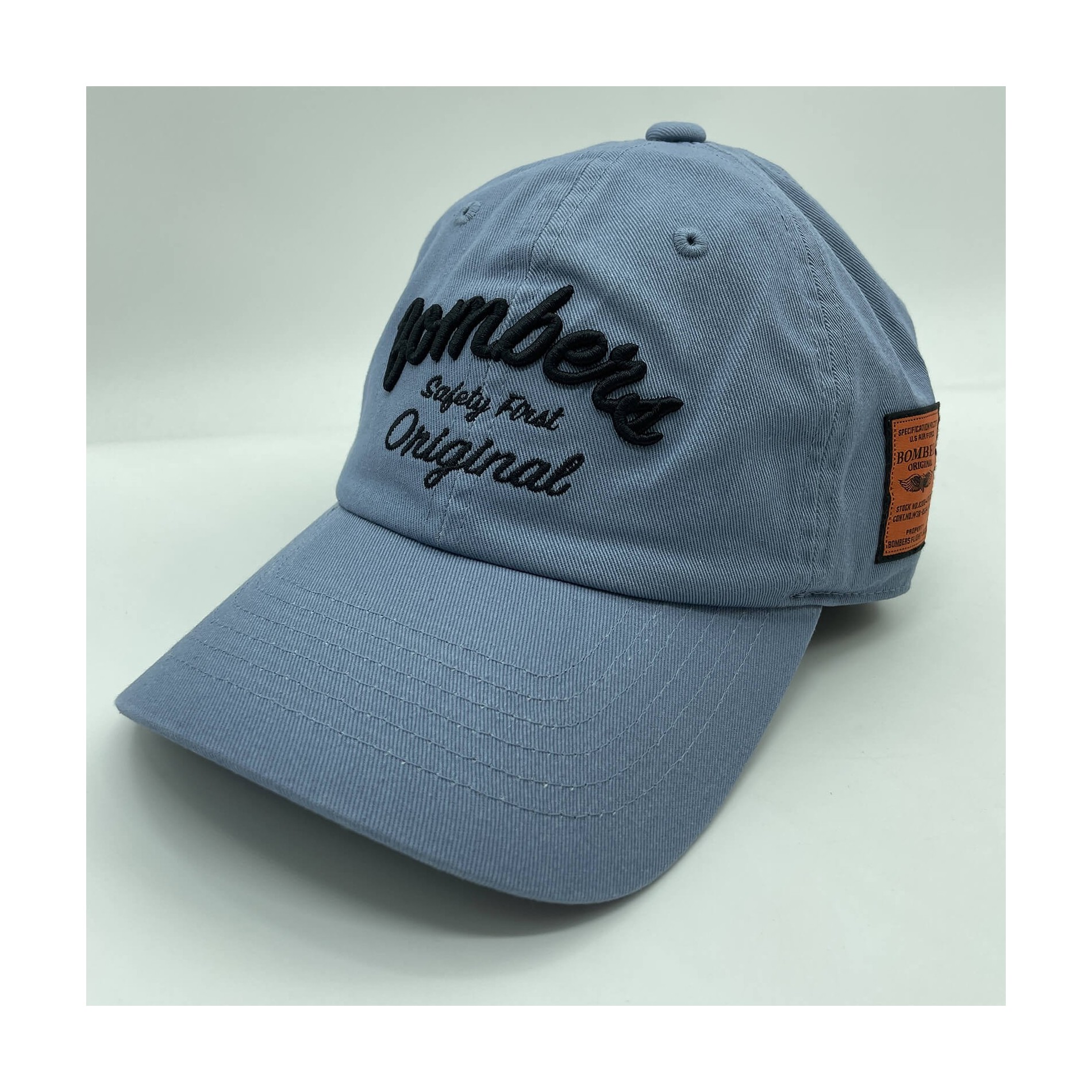 Baseballkeps i bomull från BOMBERS Original. Mjuk, enfärgad färg, med broderi och plåster "Bombers Safety First Original" på sidan. Material : 100 % bomull