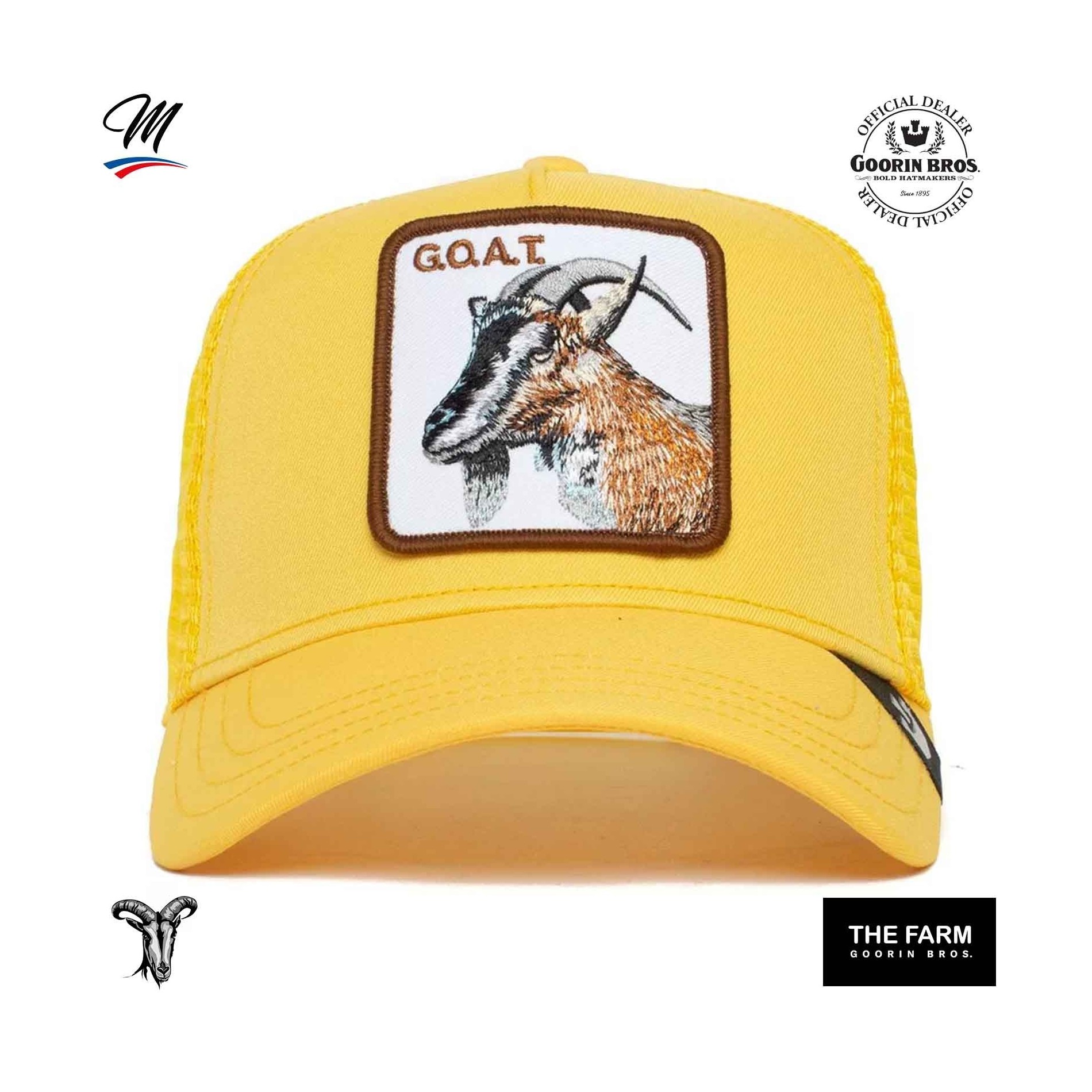 Autentiska GOORIN BROS Baseball Trucker Cap med mesh, broderad Goat patch och"G.O.A.T.", vilket betyder "G.O.A.T." "Greatest Of All Time" men goat är också en get på engelska.