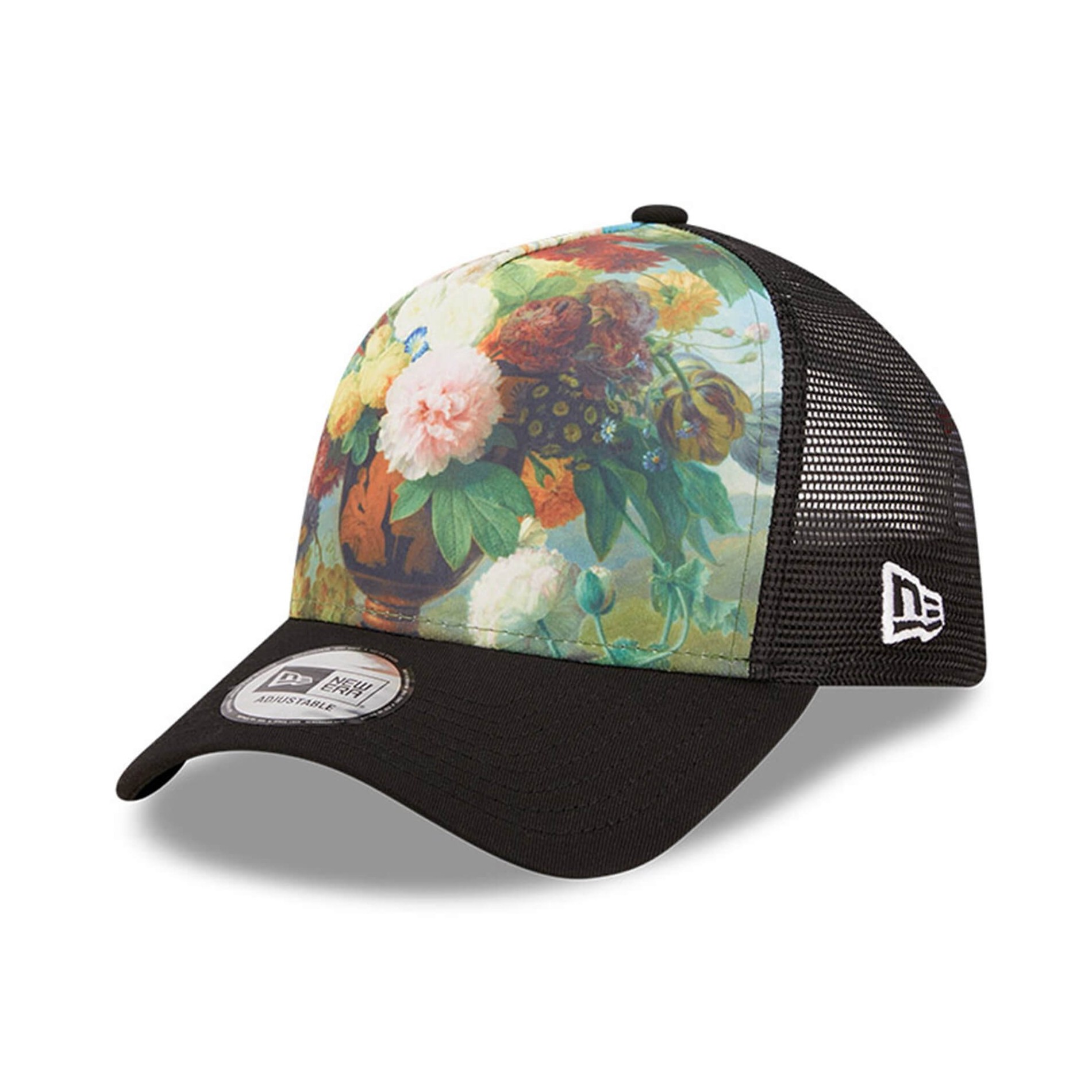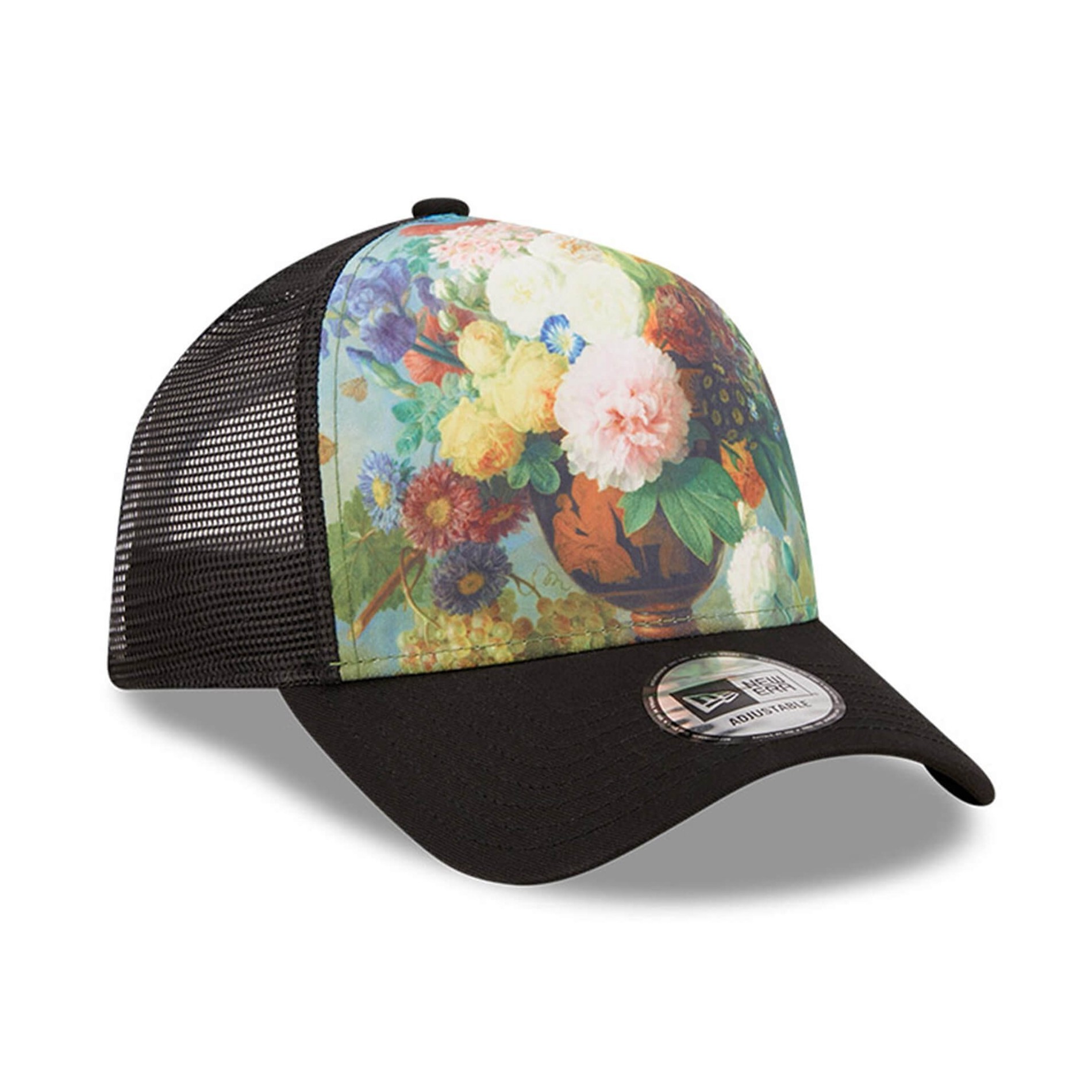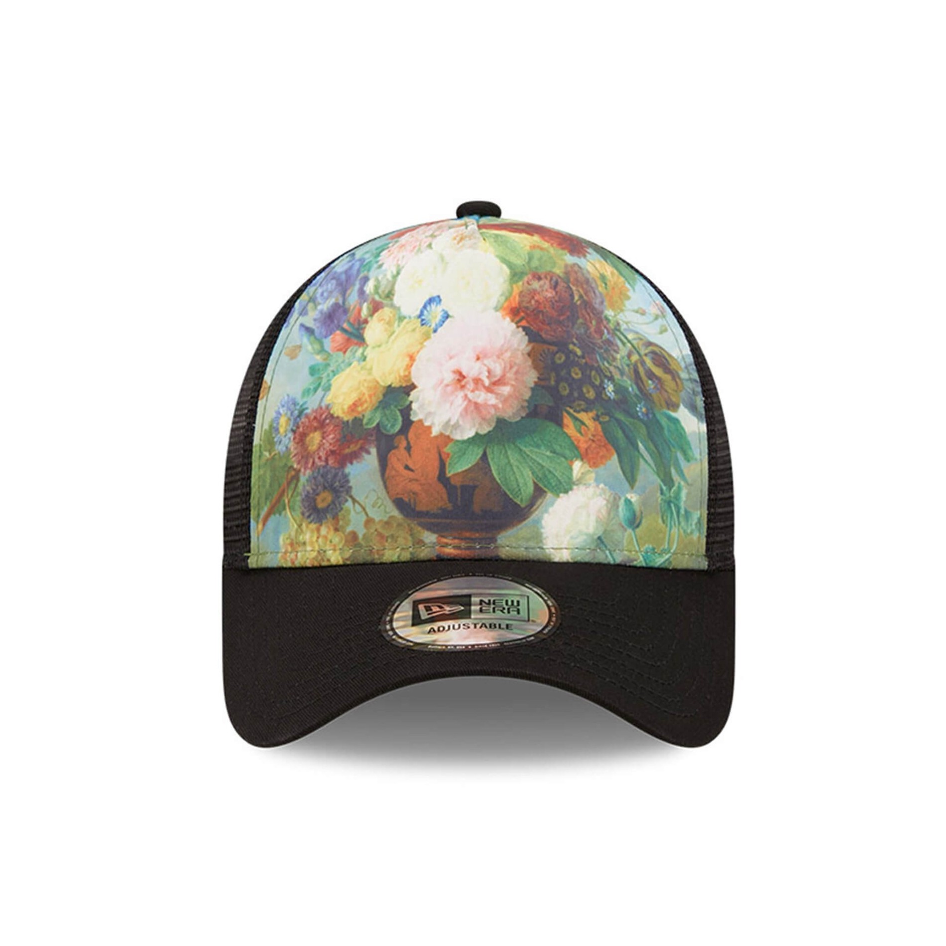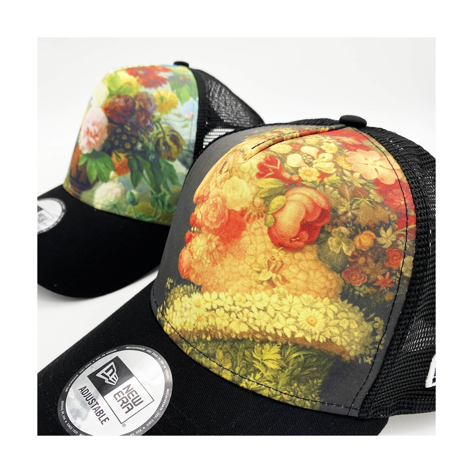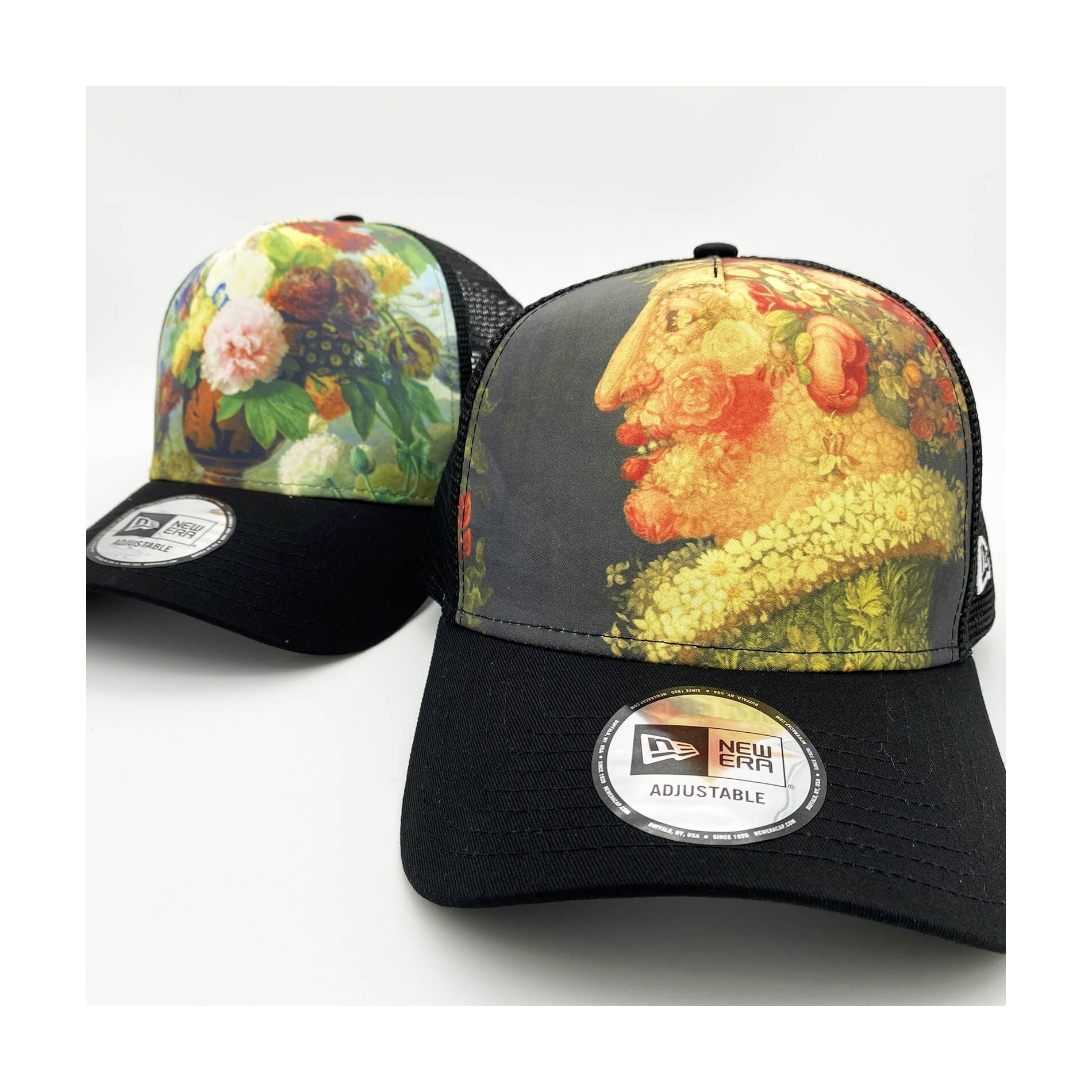 NEW ERA Trucker cap "Louvren" med målningen "Spring" av Giuseppe Arcimboldo eller "Vase of Flowers" av Elise Bruyère. originalmodell 100% Polyester.