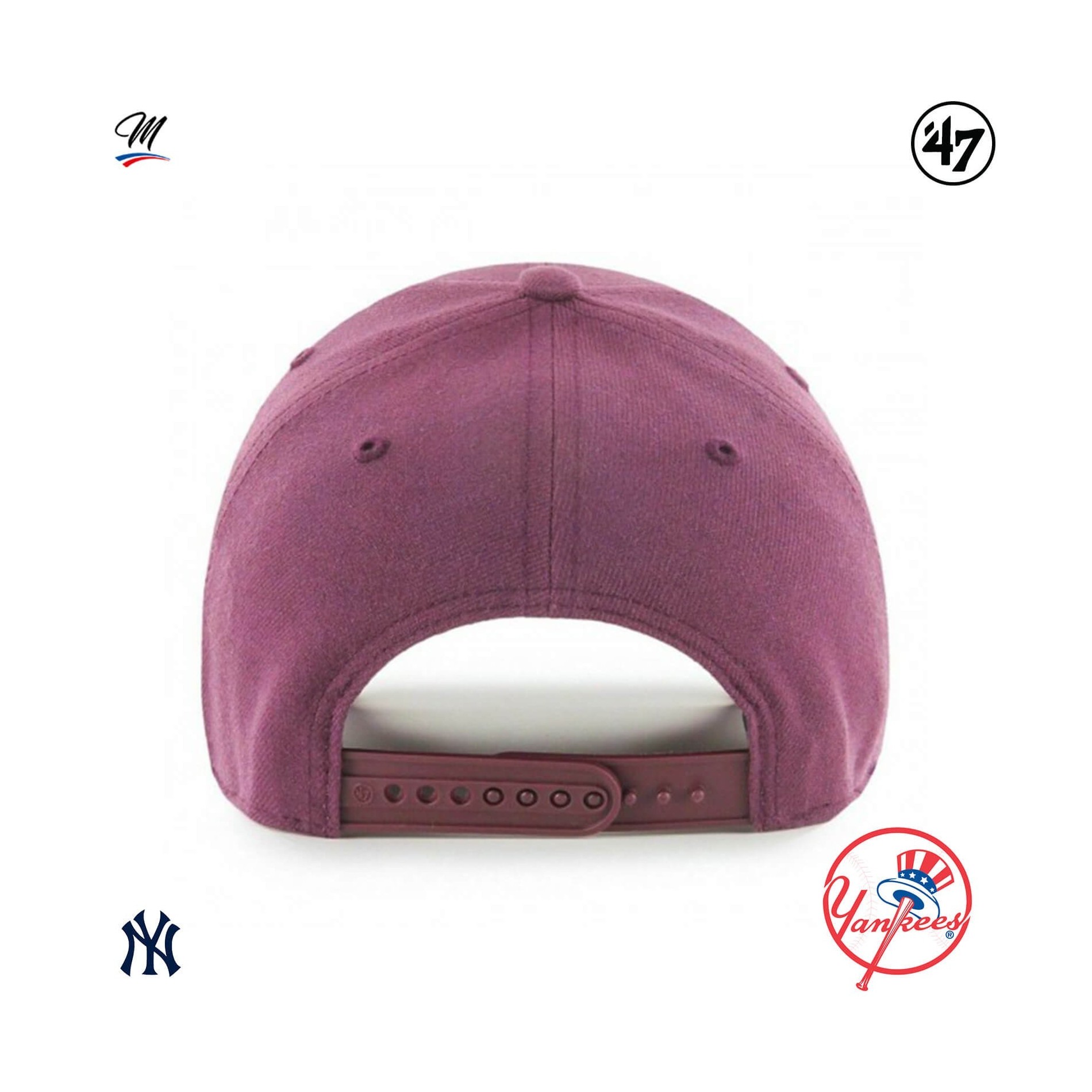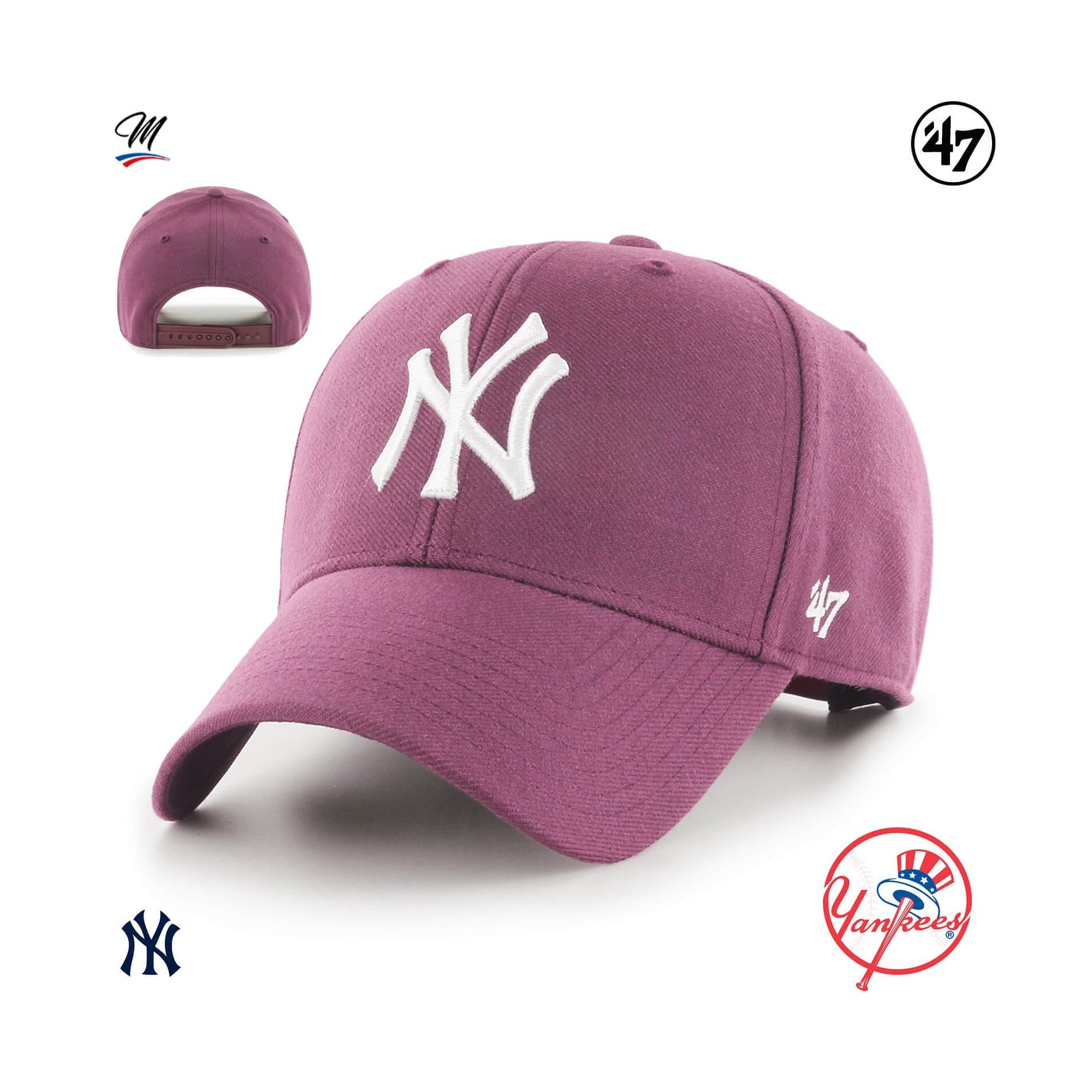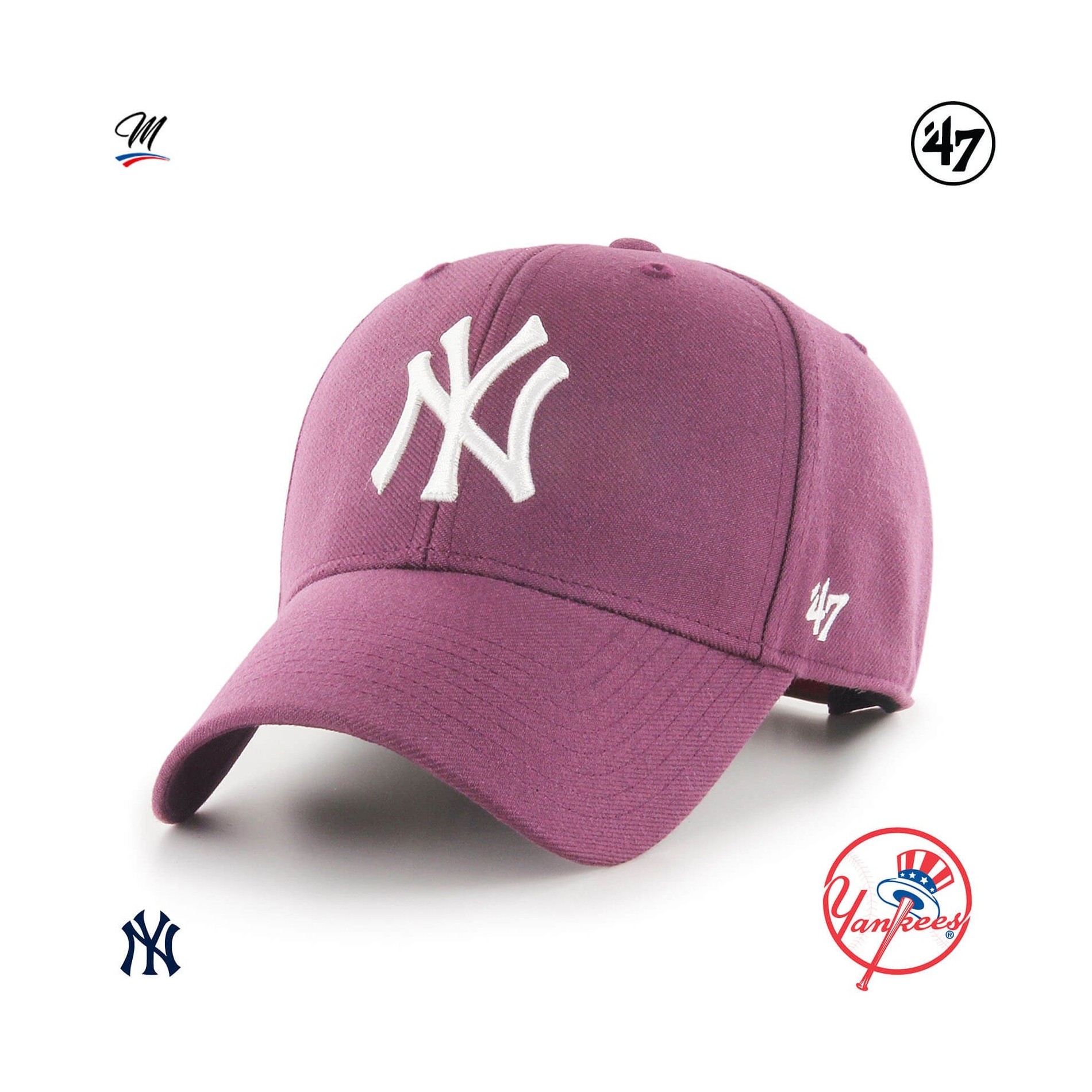 Den '47 MLB New York Yankees MVP Snapback Cap i lila är en strukturerad, böjd basebollkeps med upphöjt broderi på framsidan, '47-broderi på sidan och snapback-knäppning på baksidan.