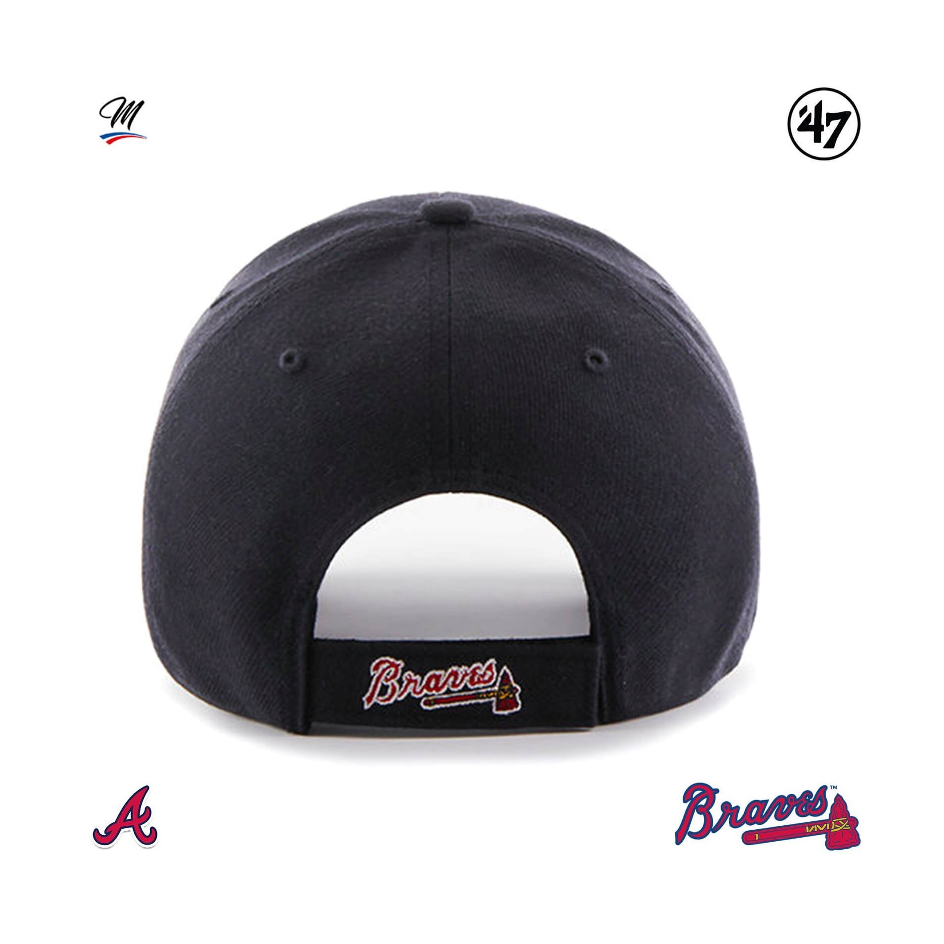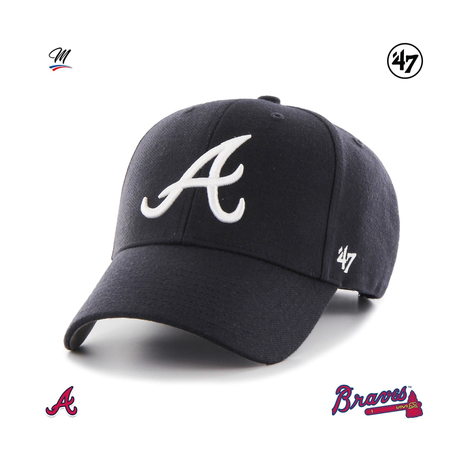 Atlanta Braves '47 MVP "Team Logo" Cap är en strukturerad, böjd basebollkeps med präglad framsida och '47 sidobroderi och kardborreknäppning på baksidan.