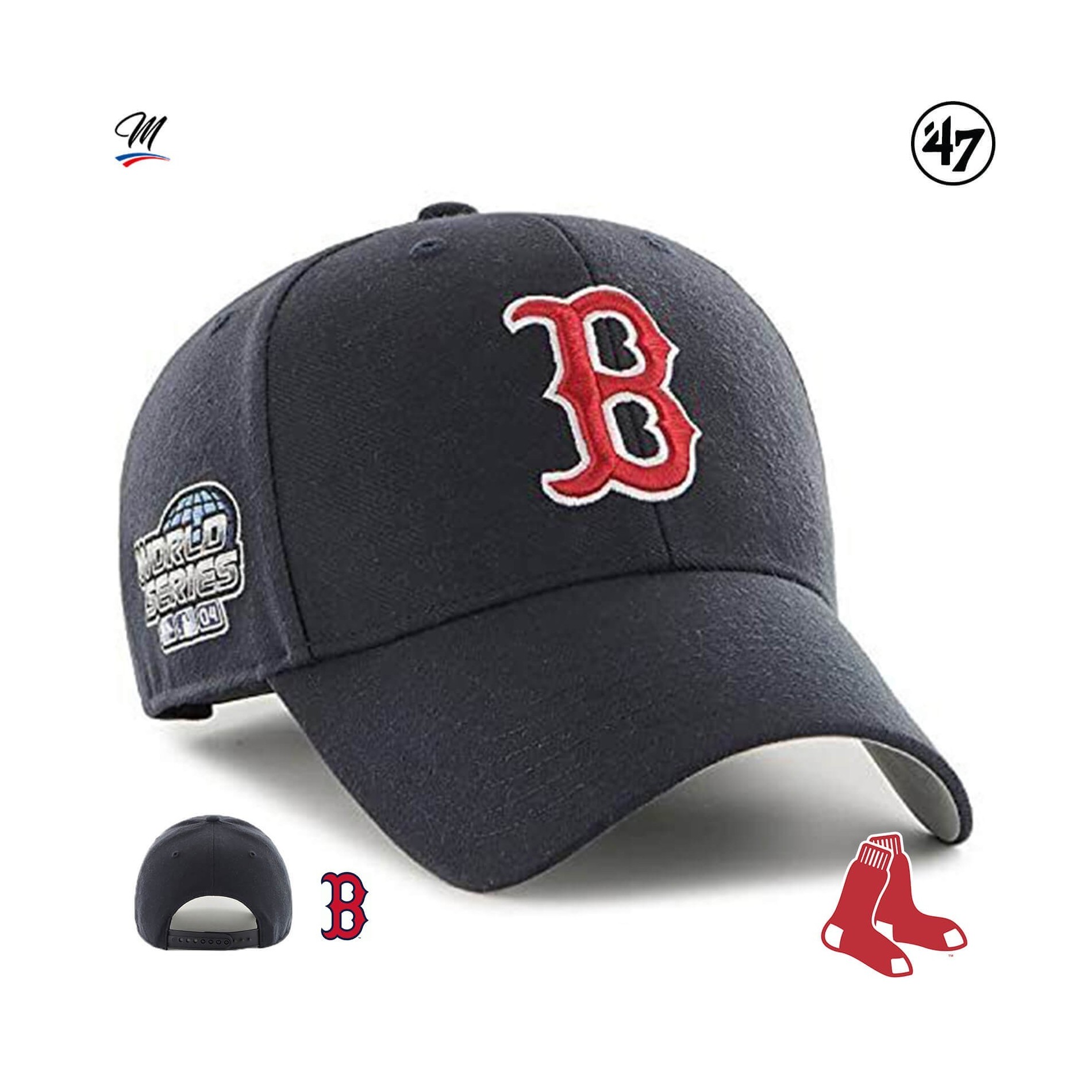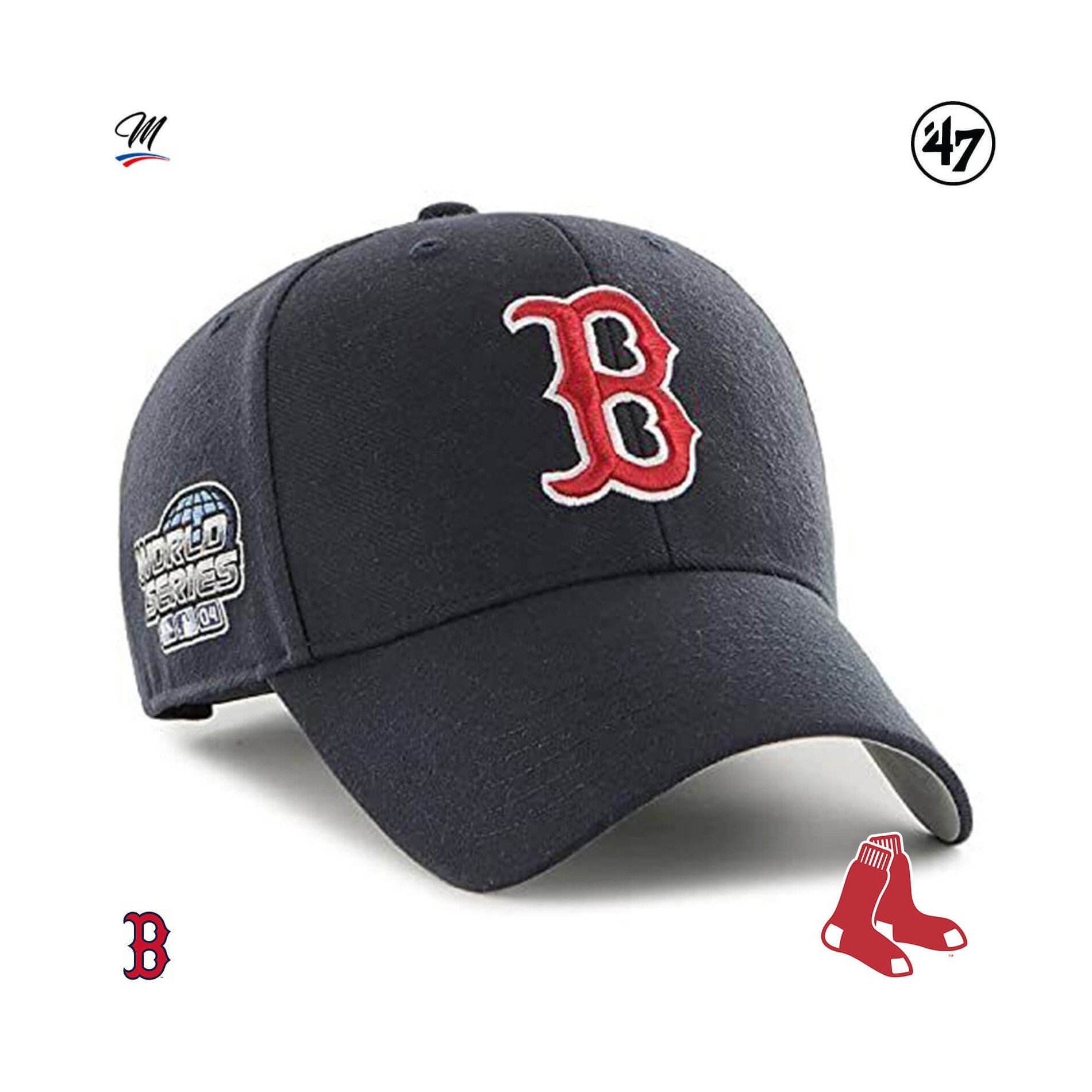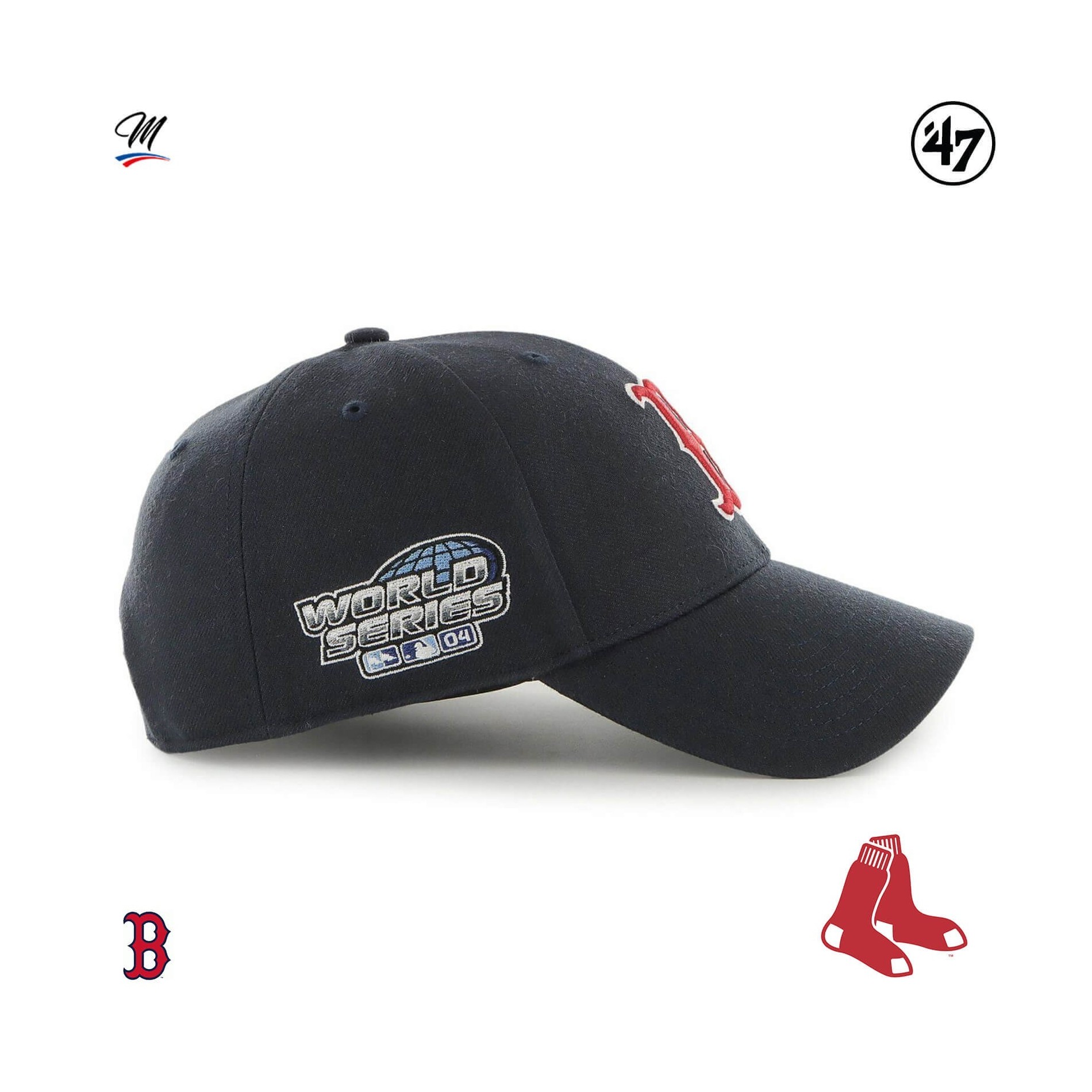 MVP '47 Boston Red Sox Sure Shot Snapback MLB World Series 2004 är en strukturerad, böjd basebollkeps med upphöjt broderi på framsidan och '47-broderi på sidan.
