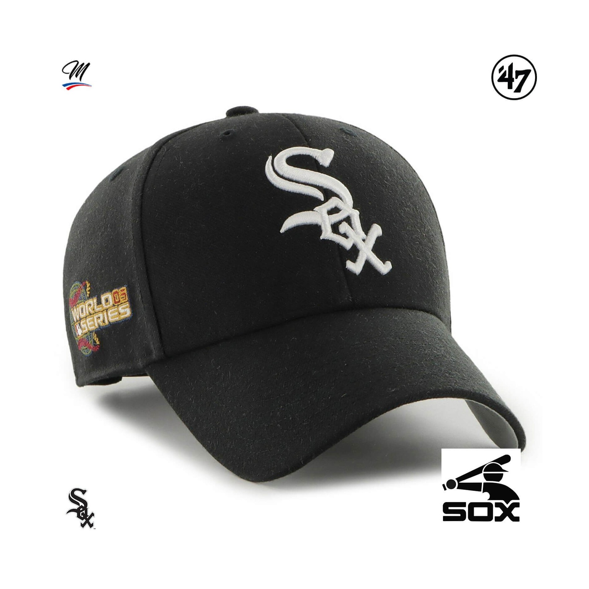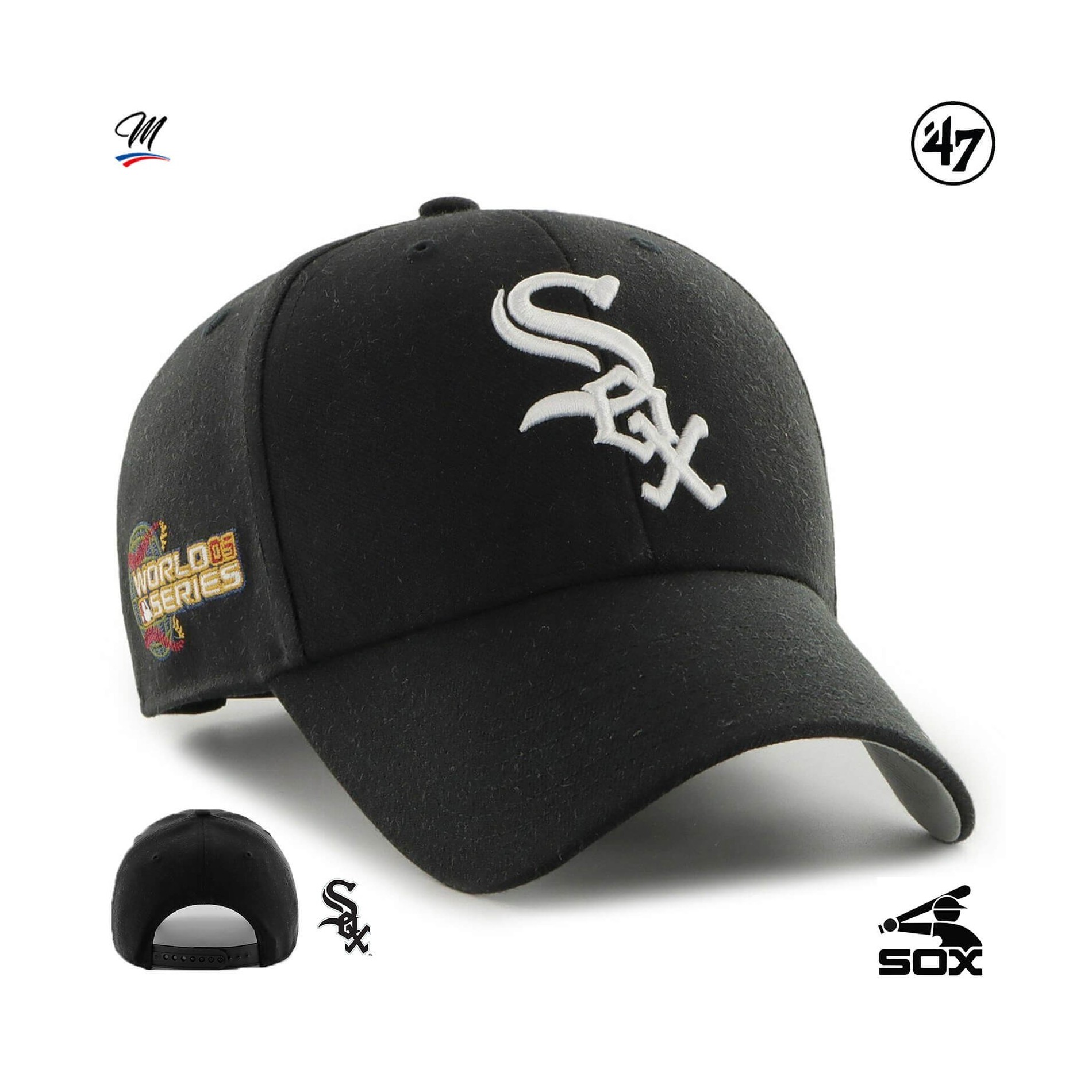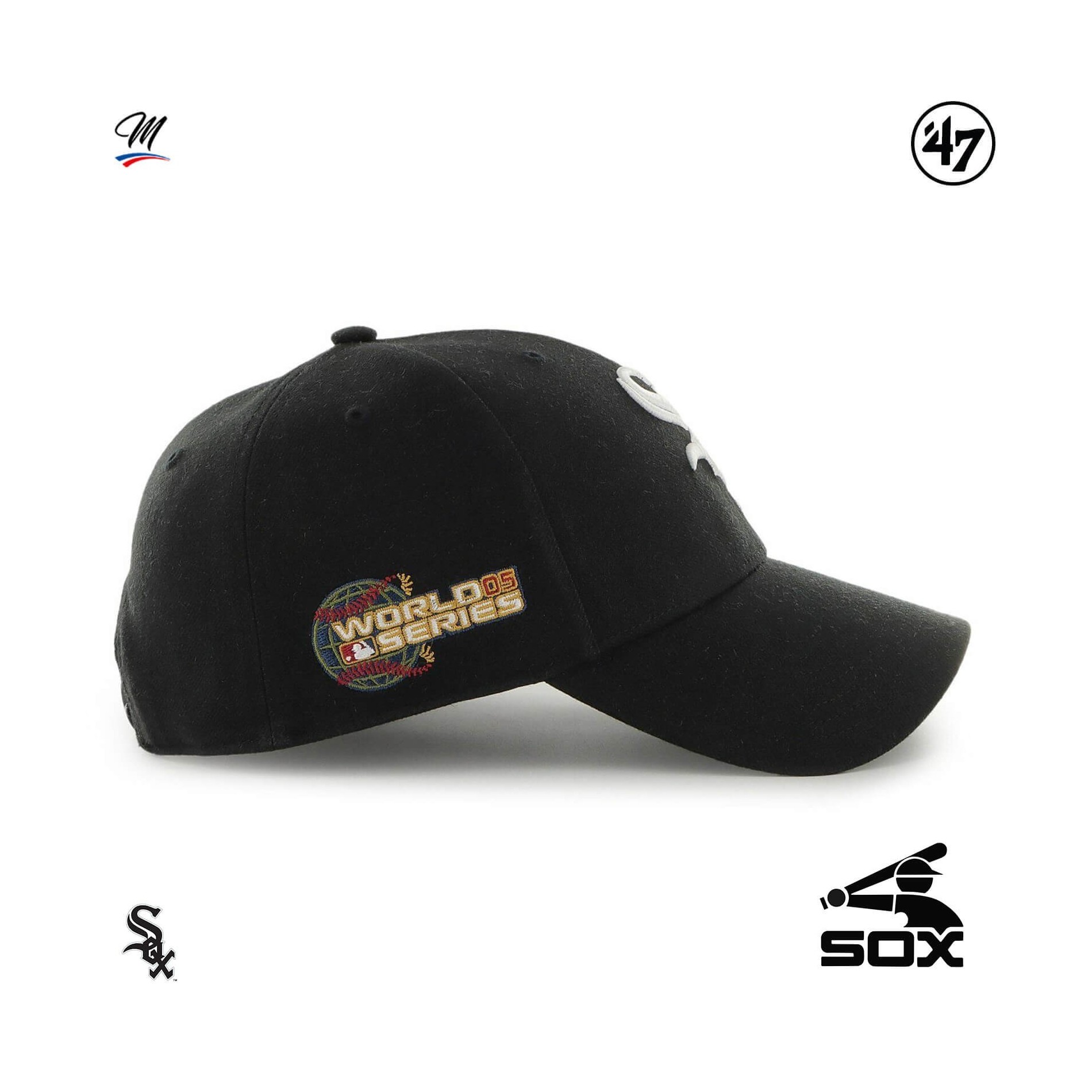 Den '47 MVP Chicago White Sox Sure Shot Snapback MLB World Series 2005 keps är en strukturerad, böjd basebollkeps med upphöjt broderi på framsidan och '47 broderi på sidan.