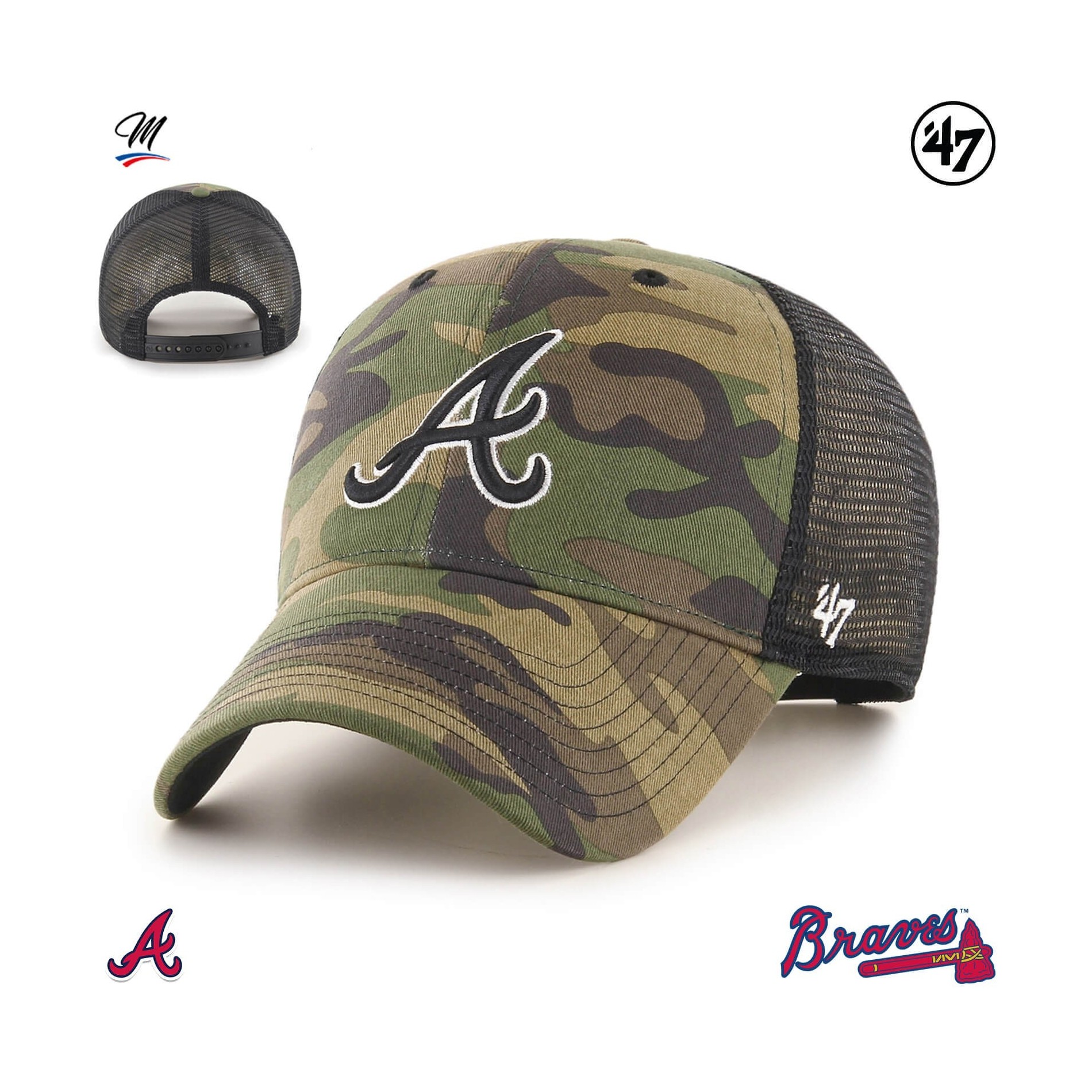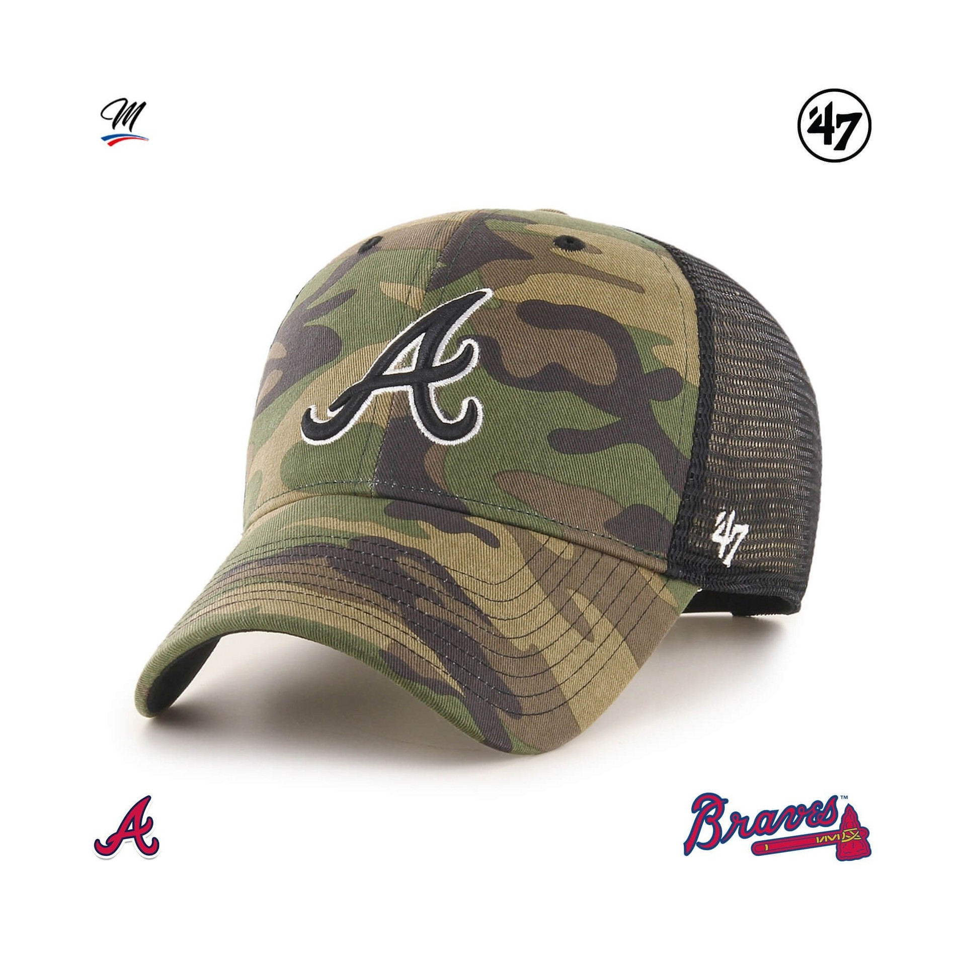 Branson '47 MVP Atlanta Braves Cap är en kamouflage, strukturerad, böjd baseball Trucker cap med upphöjt broderi på framsidan och '47 broderi på sidan.