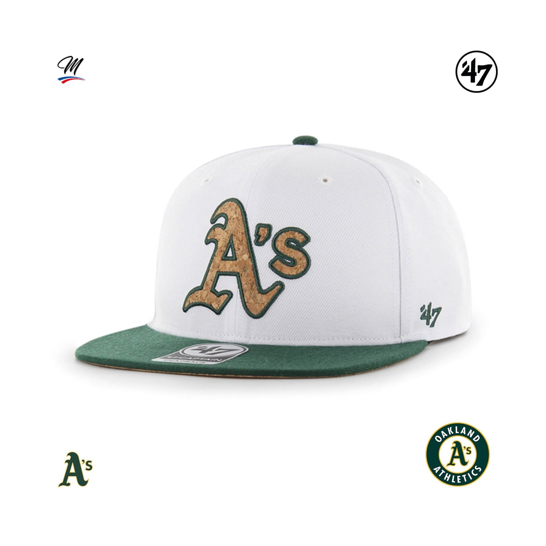 Oakland Athletics '47 "Corkscrew '47 Captain" keps är en strukturerad basebollkeps med en platt korkskärm, korklogotyp på framsidan, '47 broderi på sidan.