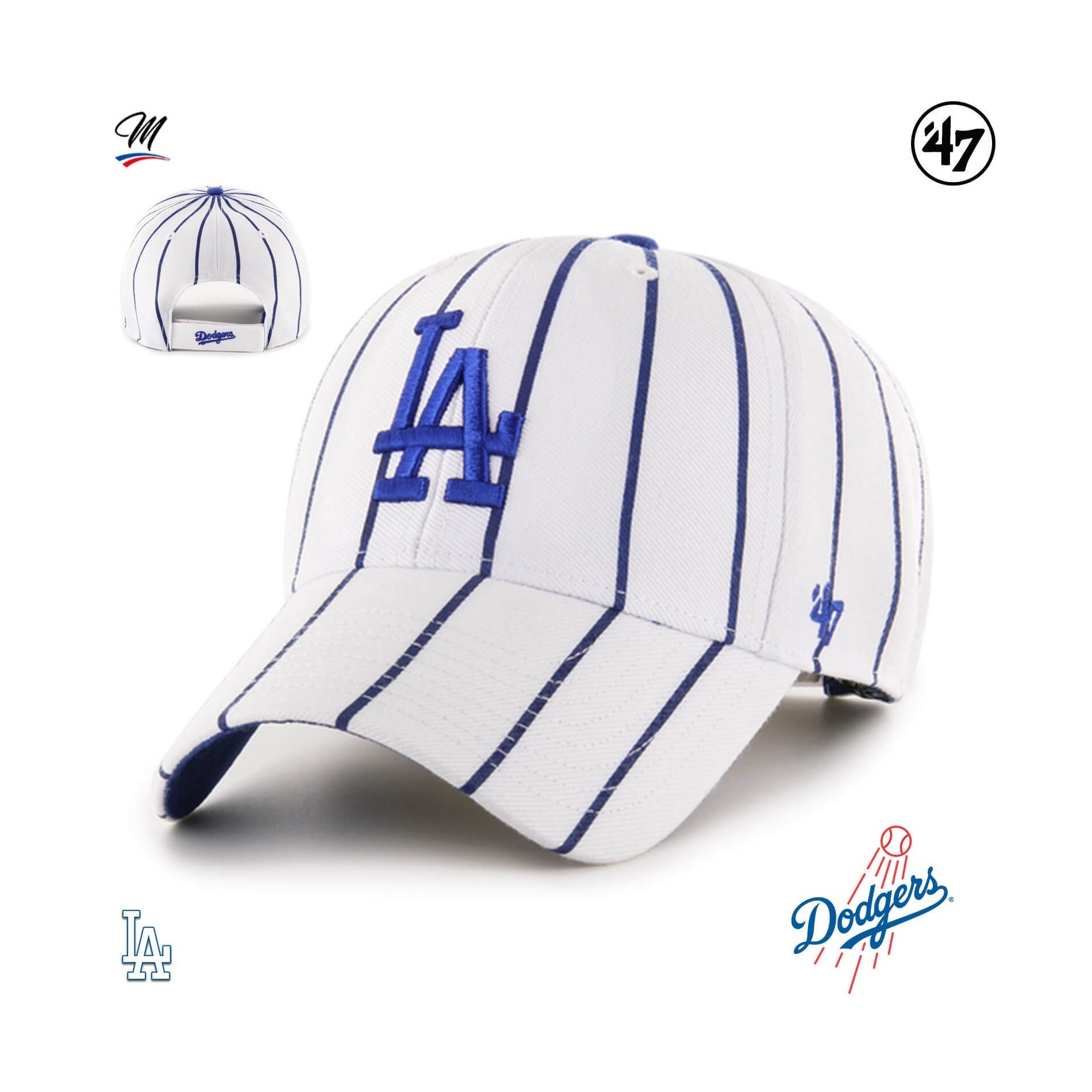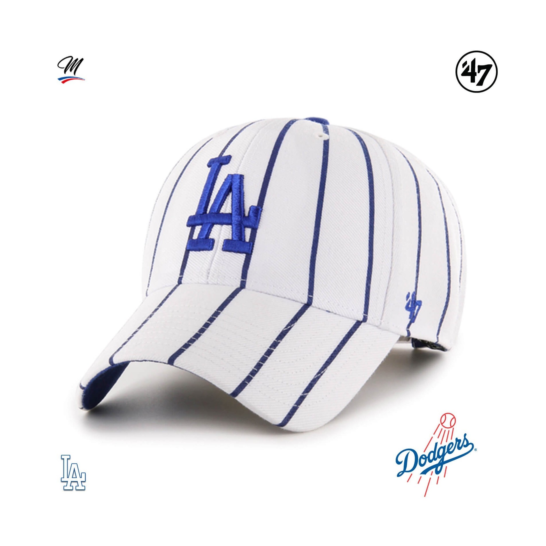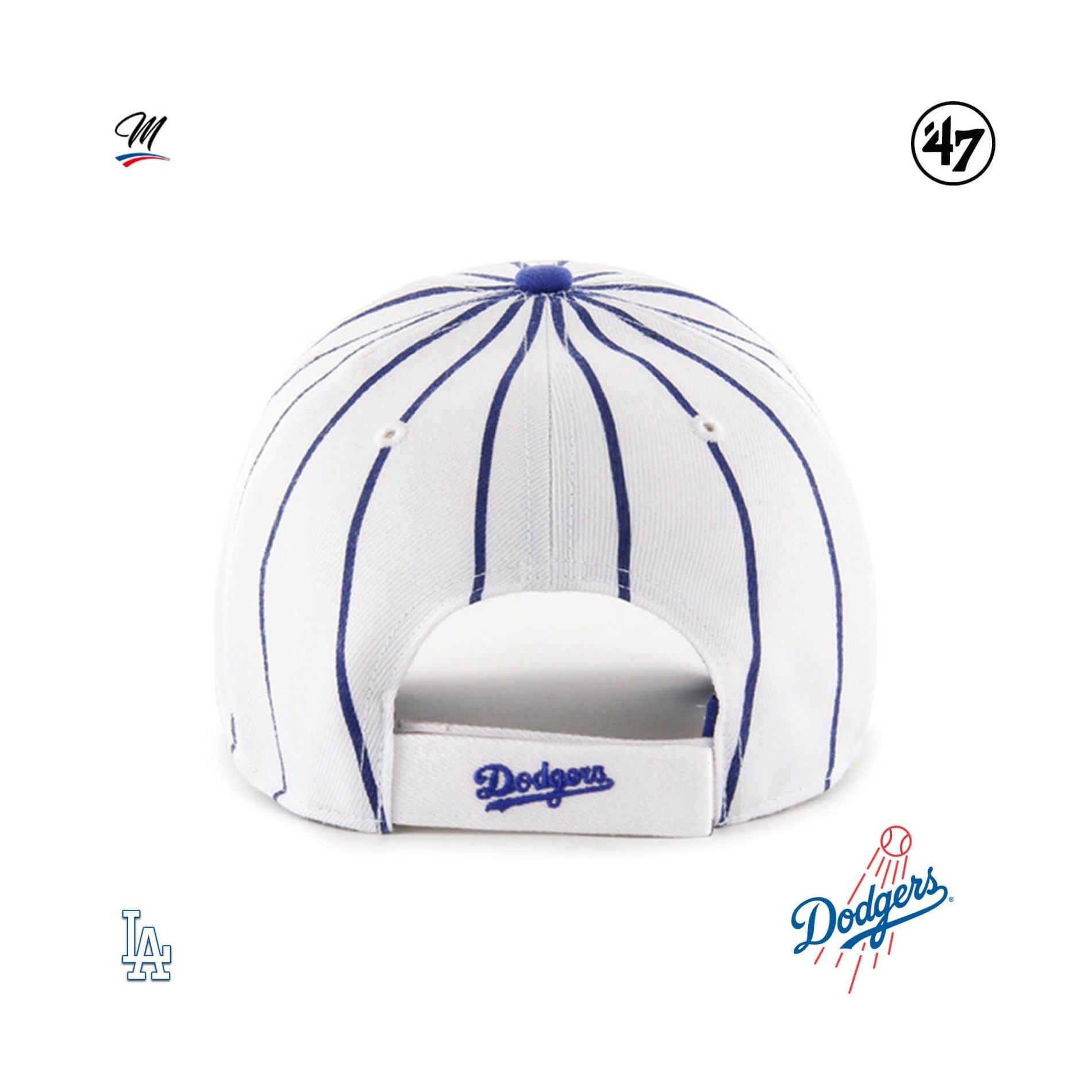 Los Angeles Dodgers '47 MVPBird Cage Pinstriped Cap är en strukturerad, böjd basebollkeps med ett kritstrecksmönster, präglad framsida och '47 sidobroderi samt en kardborreknäppning på baksidan. 100 % polyester