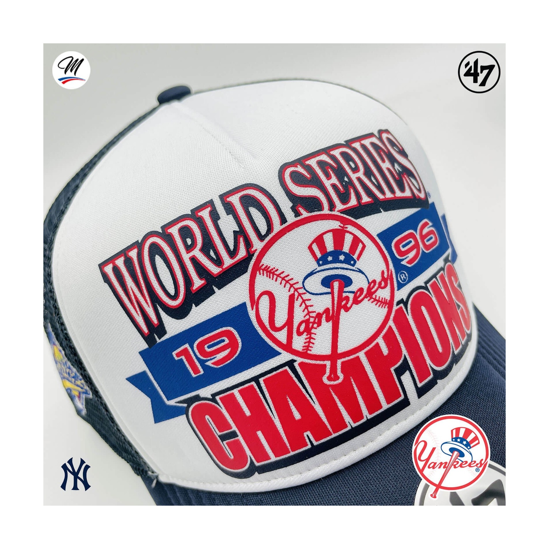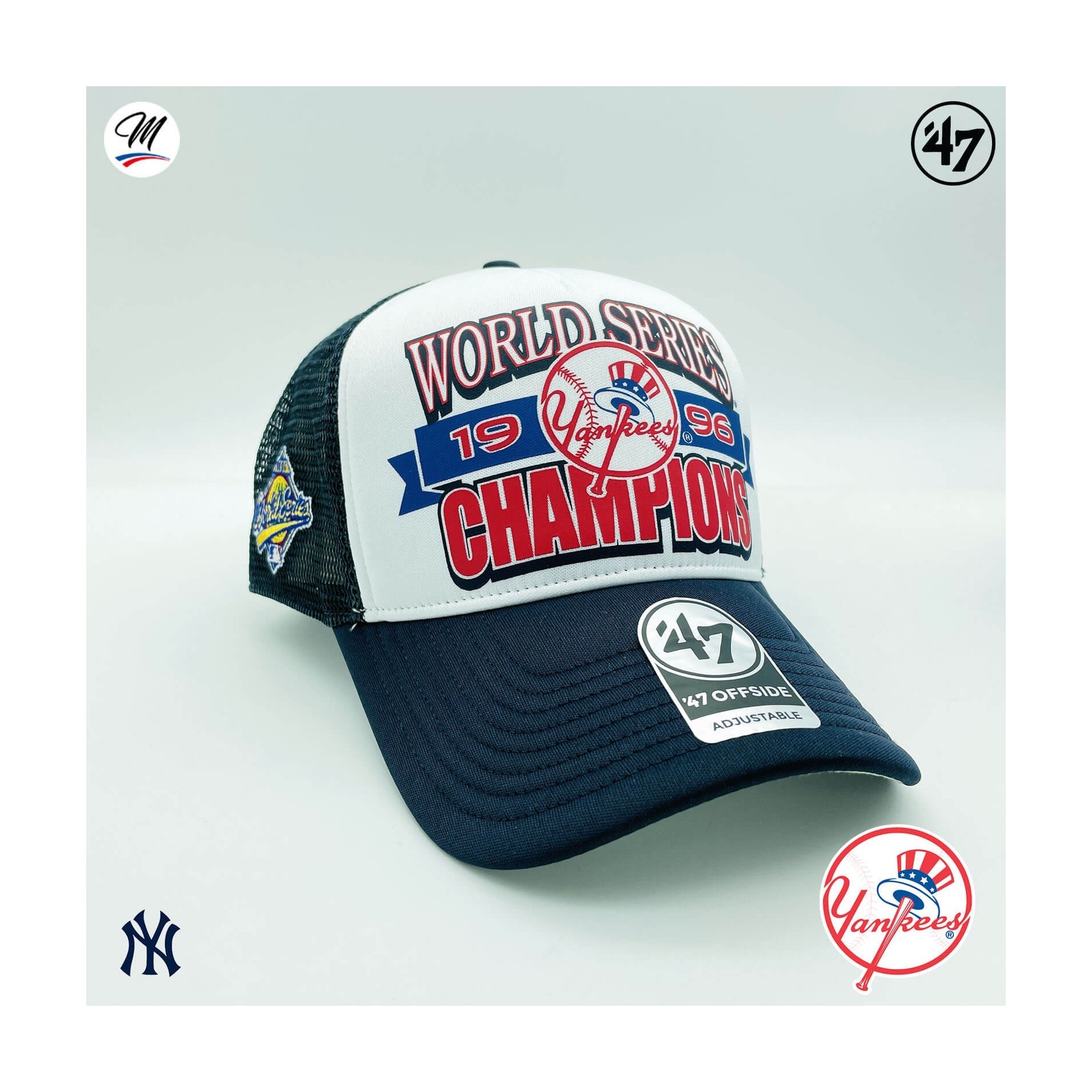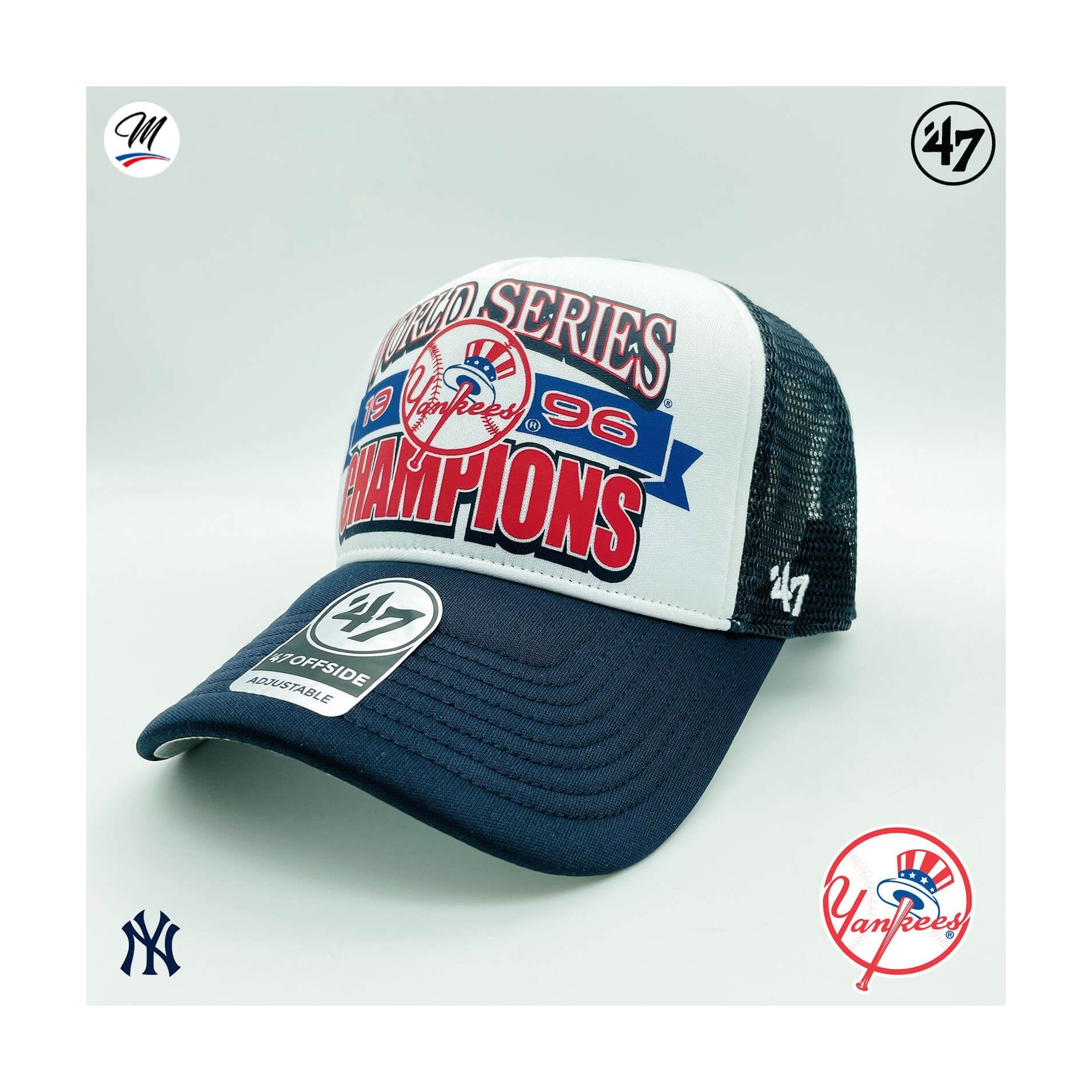 New York Yankees '47 MVP"Foam '47 Offside DT" Cap är en böjd, strukturerad basebollkeps i skum med en tryckt "1996 World Series Champion's"-logotyp på framsidan, en broderad flagga på sidan och en annan '47-broderi på andra sidan, en snapback-knäppning på baksidan.