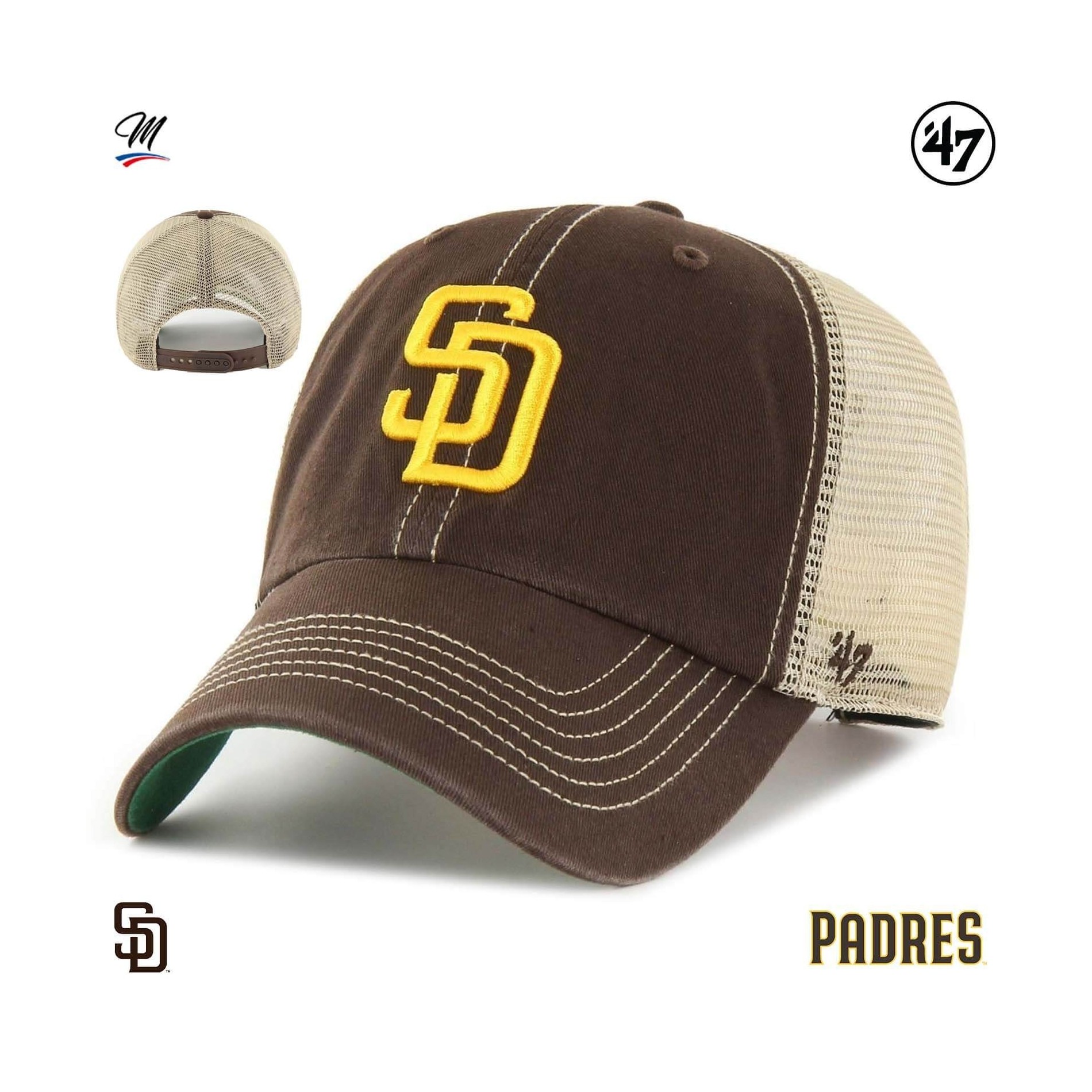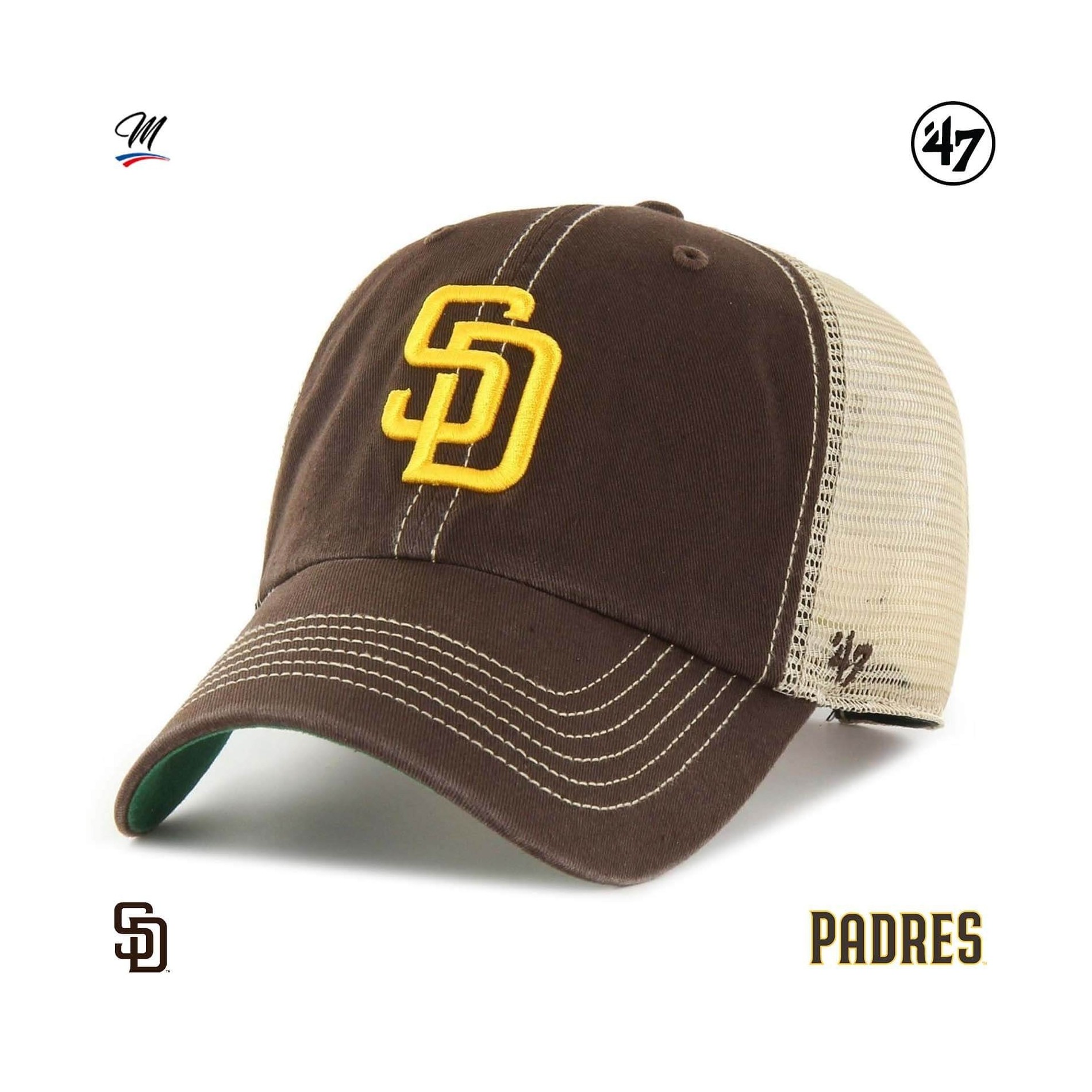 San Diego Padres Trawler '47"Clean Up Vintage" är en trendig basebollkeps med en mjuk, böjd och avslappnad passform, SD-broderi framtill och '47-broderi på sidan.