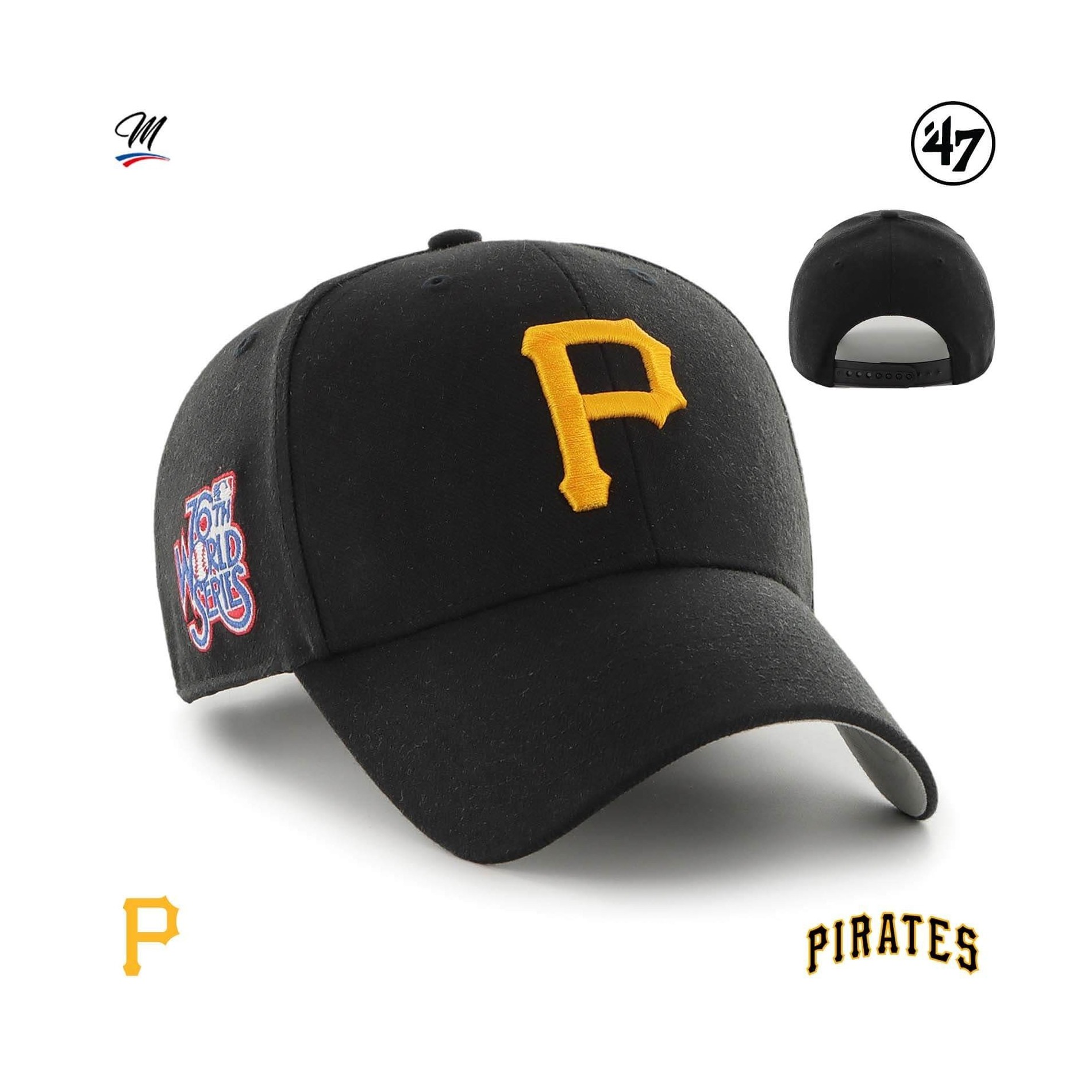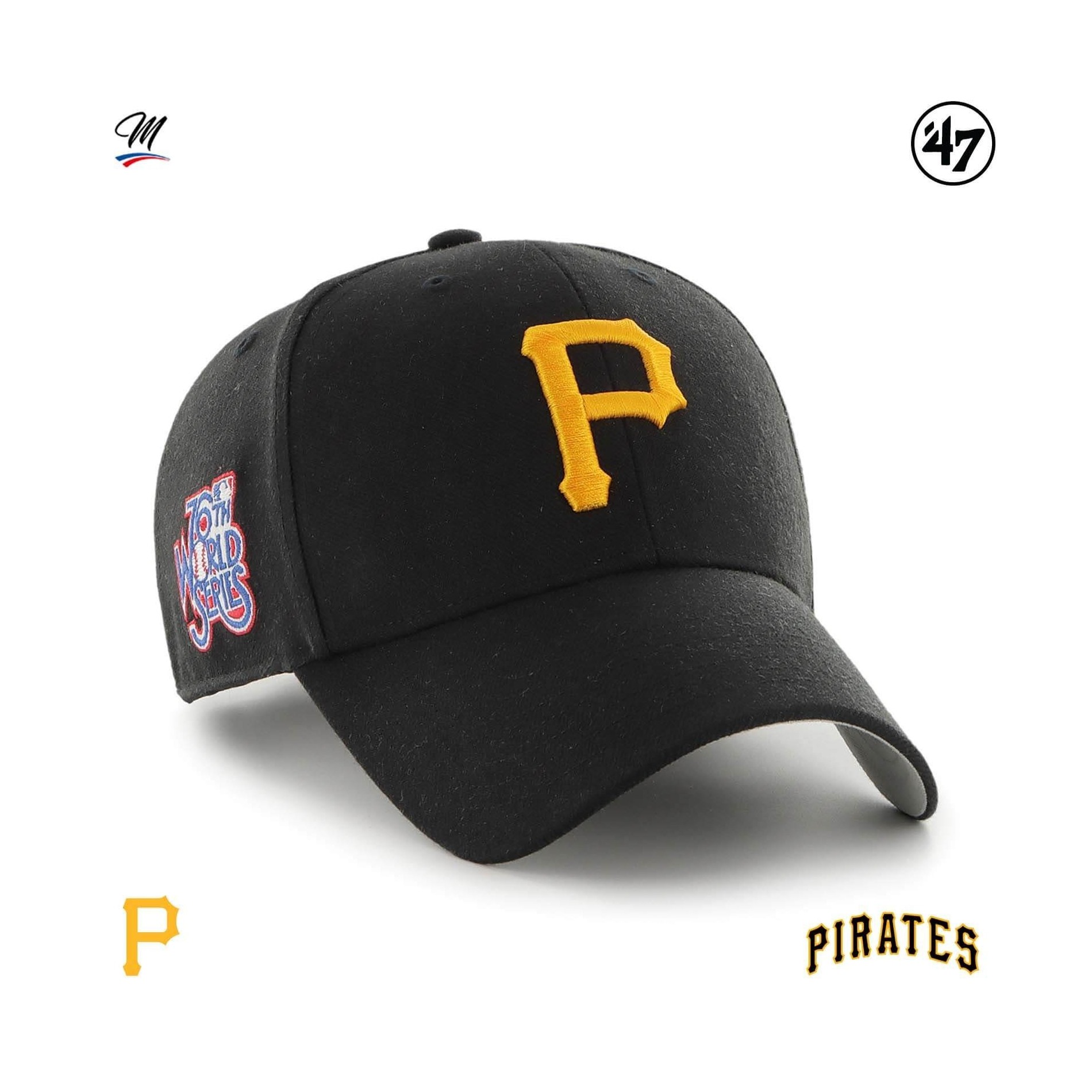 '47 MVP Pittsburgh Pirates Sure Shot Snapback MLB World Series 1976 cap är en basebollkeps, strukturerad och böjd, med präglat broderi på framsidan, '47 broderi på sidan.