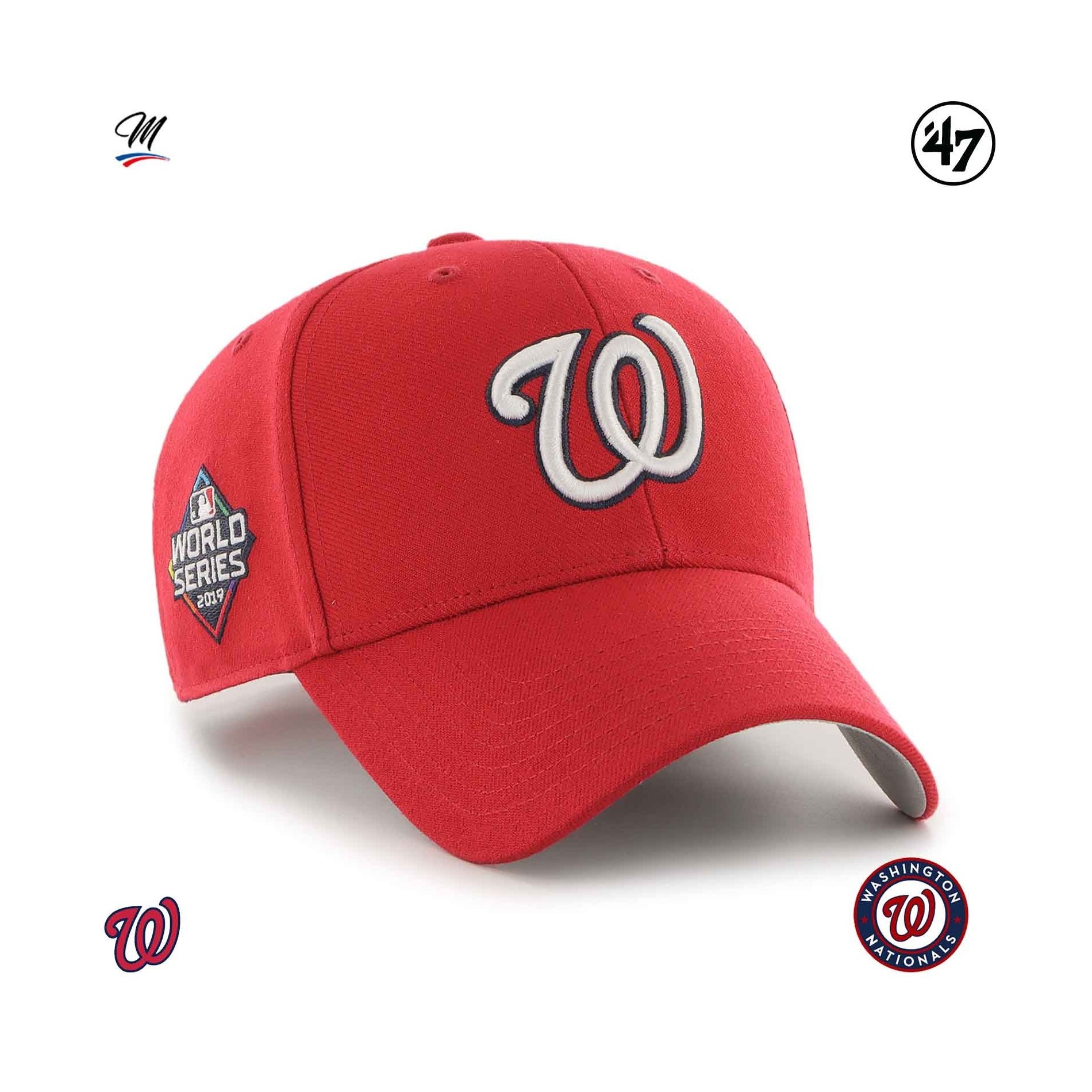 MVP Washington Capitals '47 Sure Shot Snapback MLB World Series 2019 Cap är en strukturerad, böjd basebollkeps med upphöjt broderi på framsidan och '47-broderi på sidan.