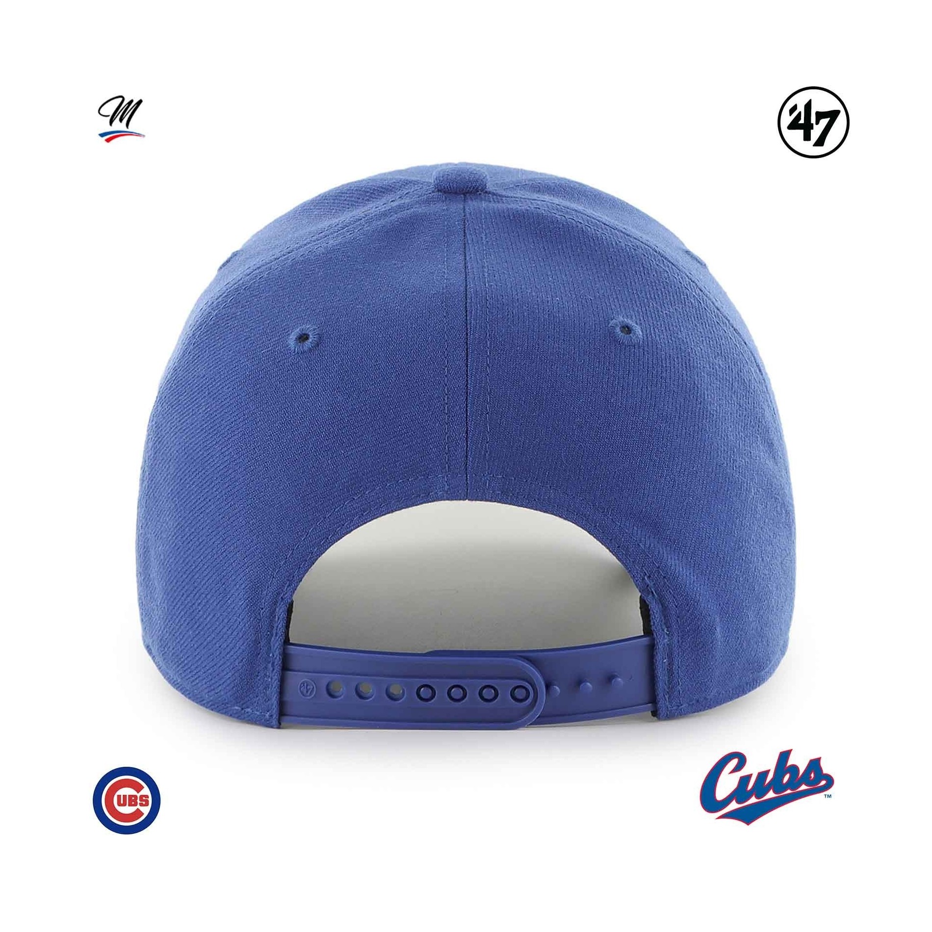 MVP Chicago Cubs '47 Sure Shot Snapback MLB World Series 2016 Cap är en strukturerad, böjd basebollkeps med upphöjt broderi på framsidan och '47-broderi på sidan.