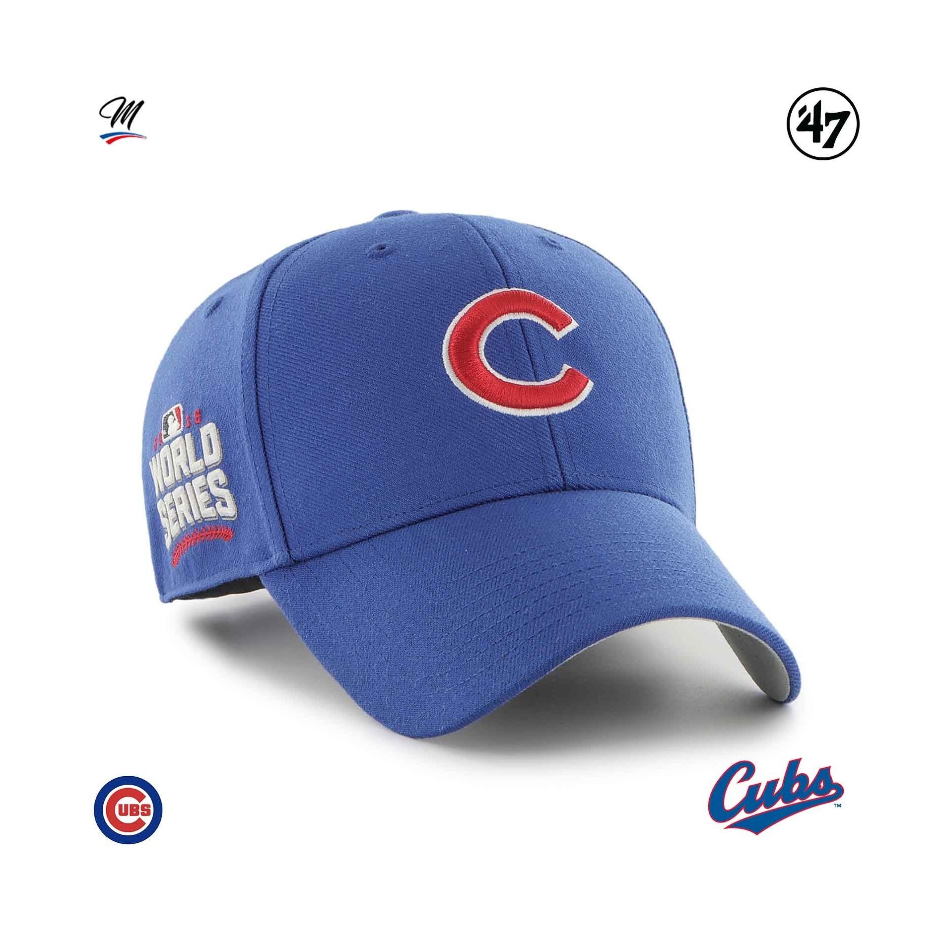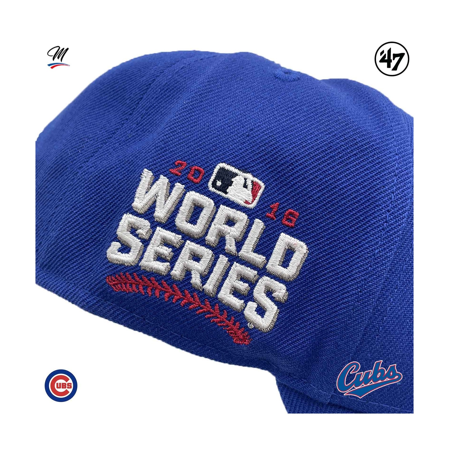 '47 MVP Chicago Cubs Sure Shot Snapback MLB World Series 2016 cap är en basebollkeps, strukturerad och böjd, med präglat broderi på framsidan, '47-broderi på sidan.