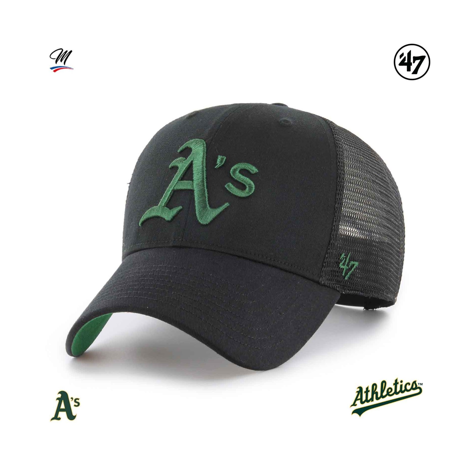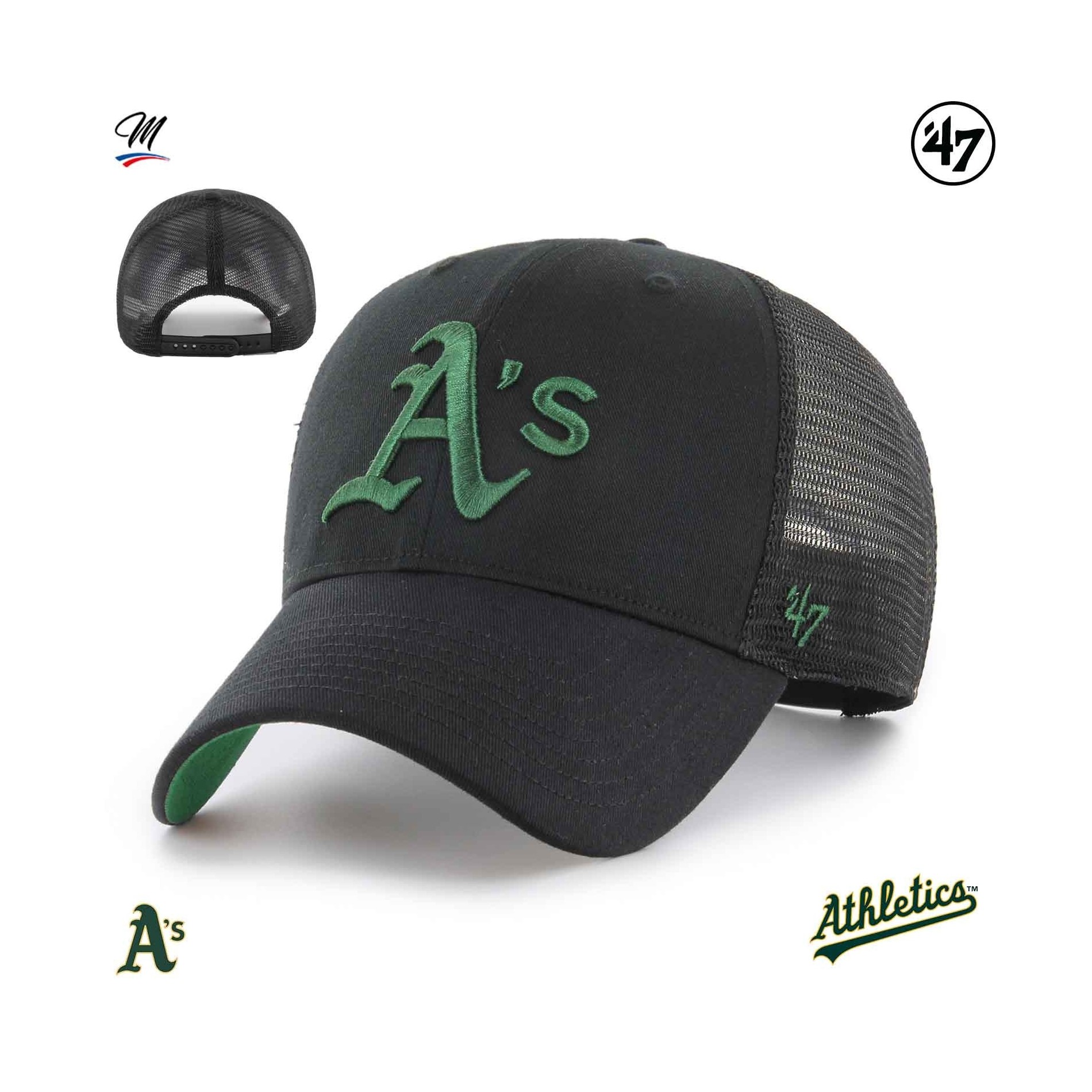 Oakland Athletics "'47 Ballpark Mesh"-keps är en strukturerad, böjd Trucker-basebollkeps med upphöjt broderi framtill och '47-broderi på sidan.