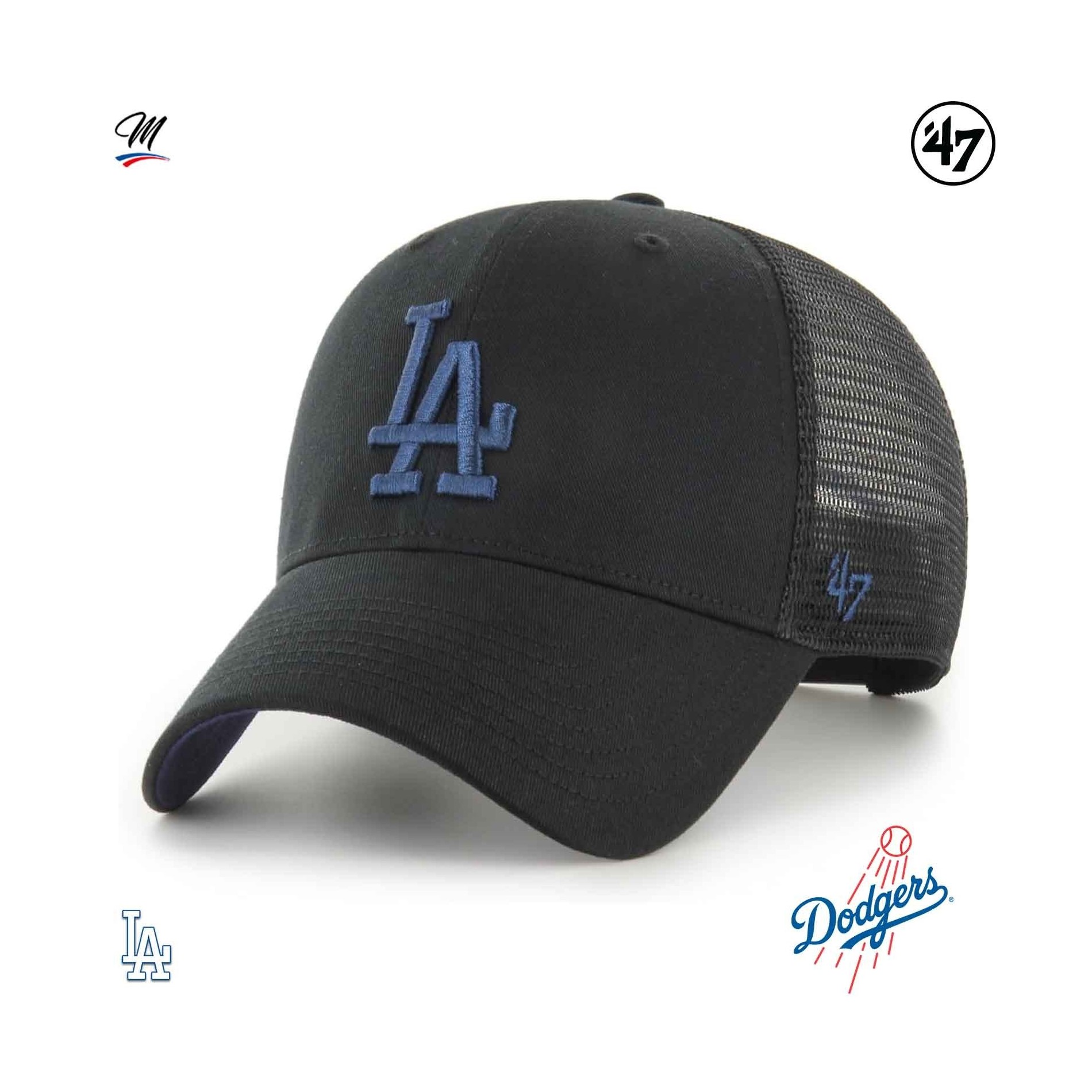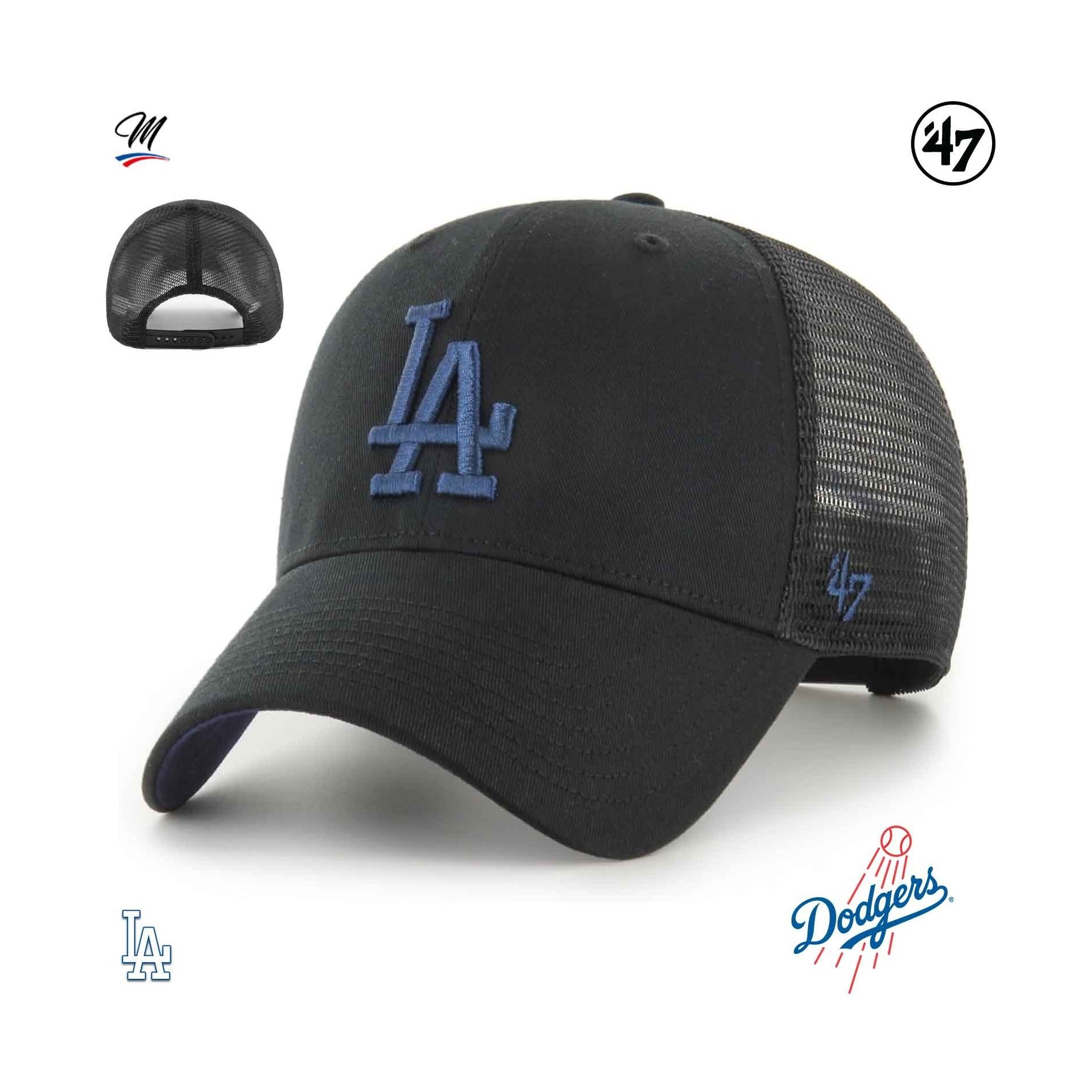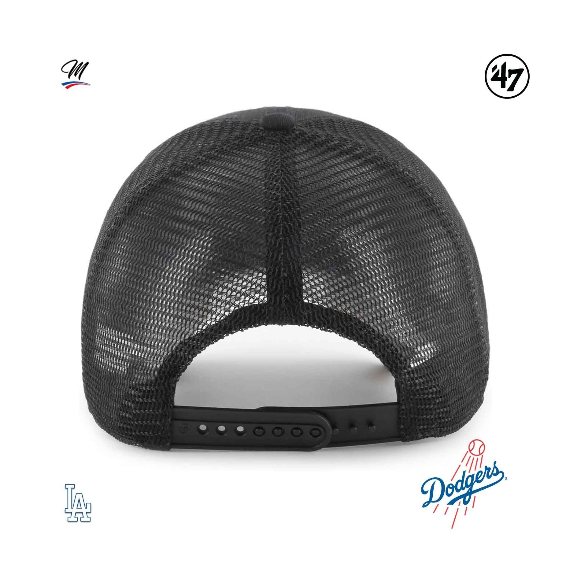 Los Angeles Dodgers "'47 Summer Ballpark Mesh"-keps är en strukturerad, böjd Trucker-basebollkeps med reliefbroderi framtill och '47-broderi på sidan.