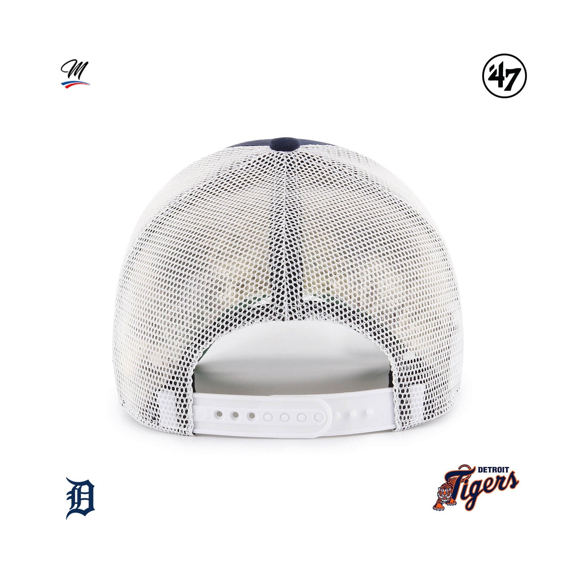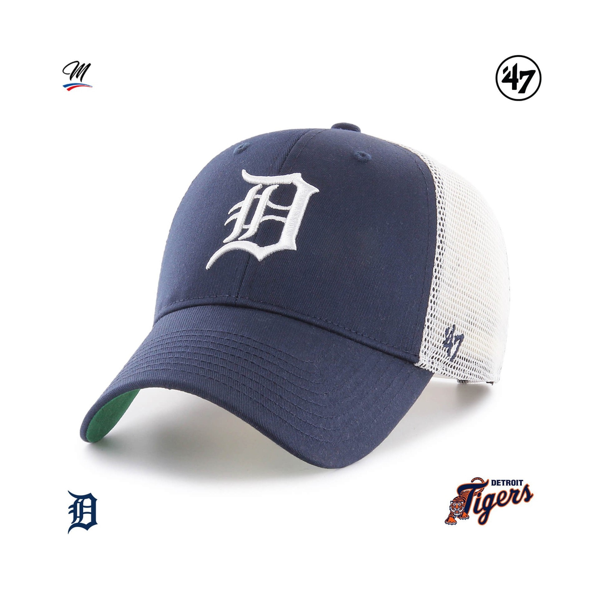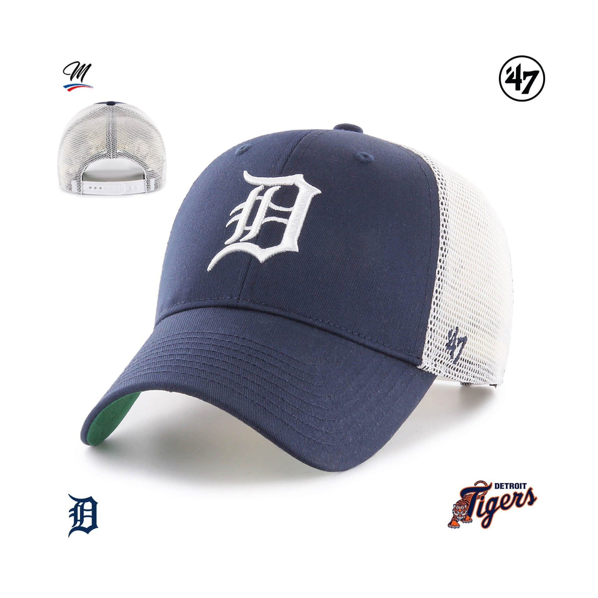 Branson '47 MVP Detroit Tigers-keps är en strukturerad, böjd Trucker-basebollkeps med upphöjt broderi framtill och '47-broderi på sidan.