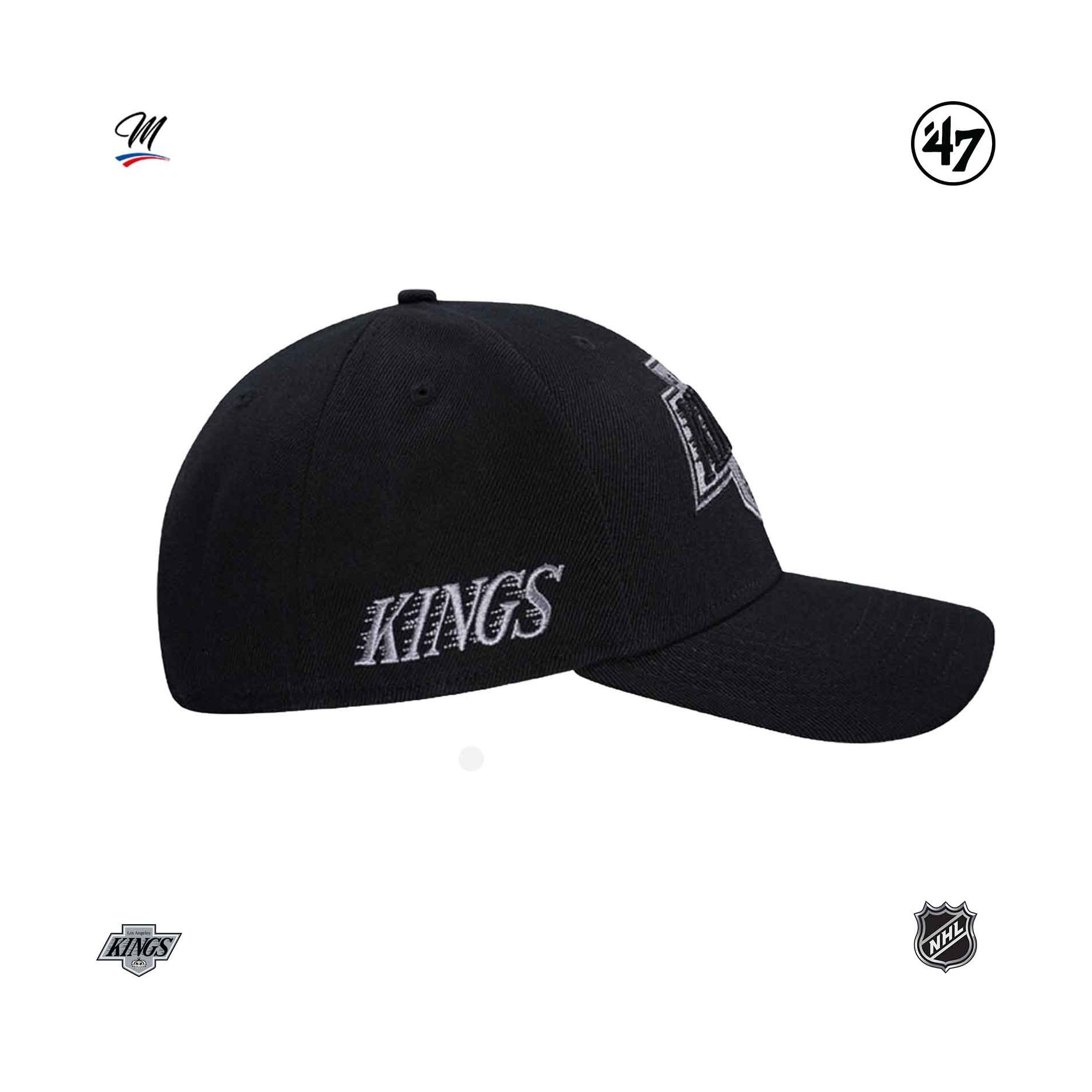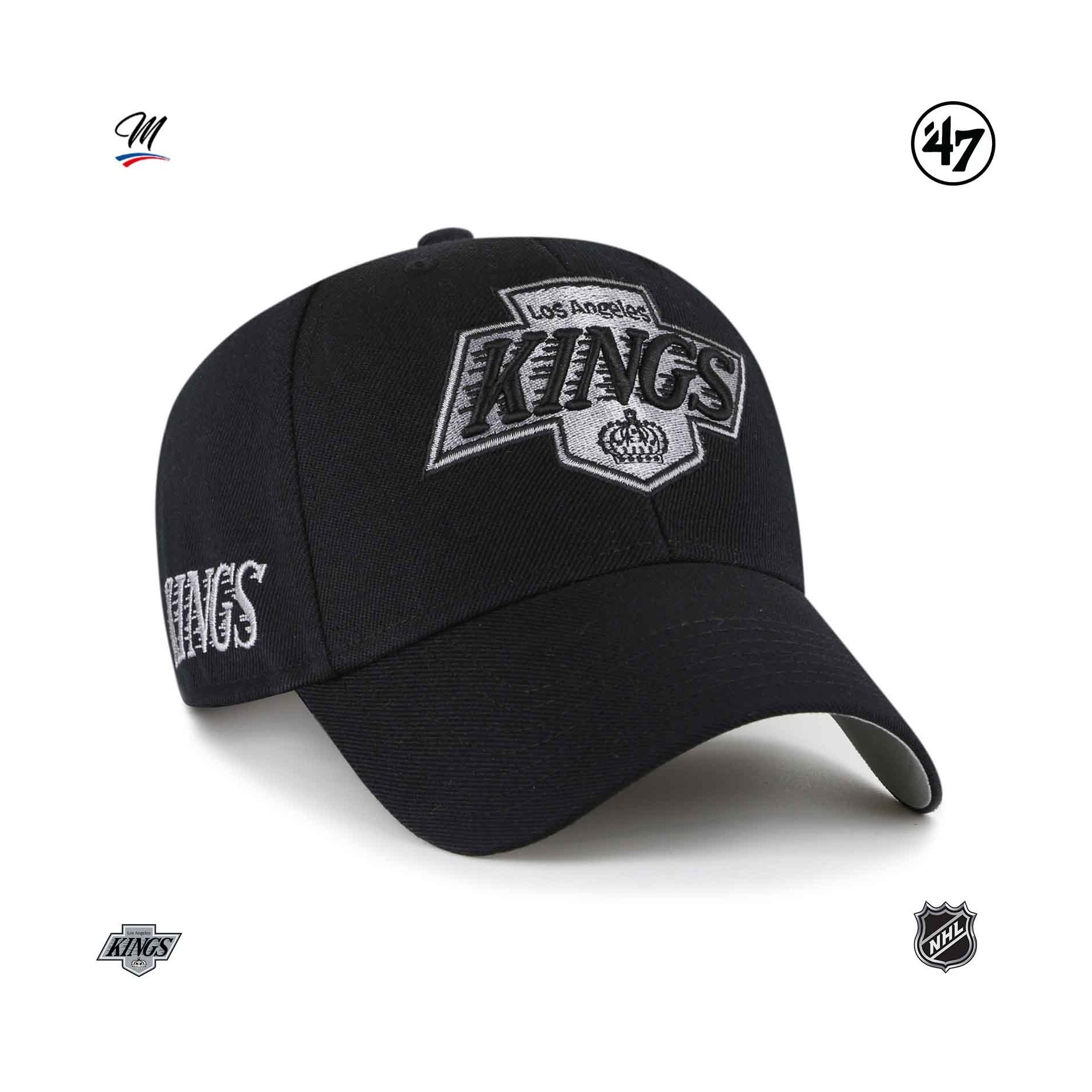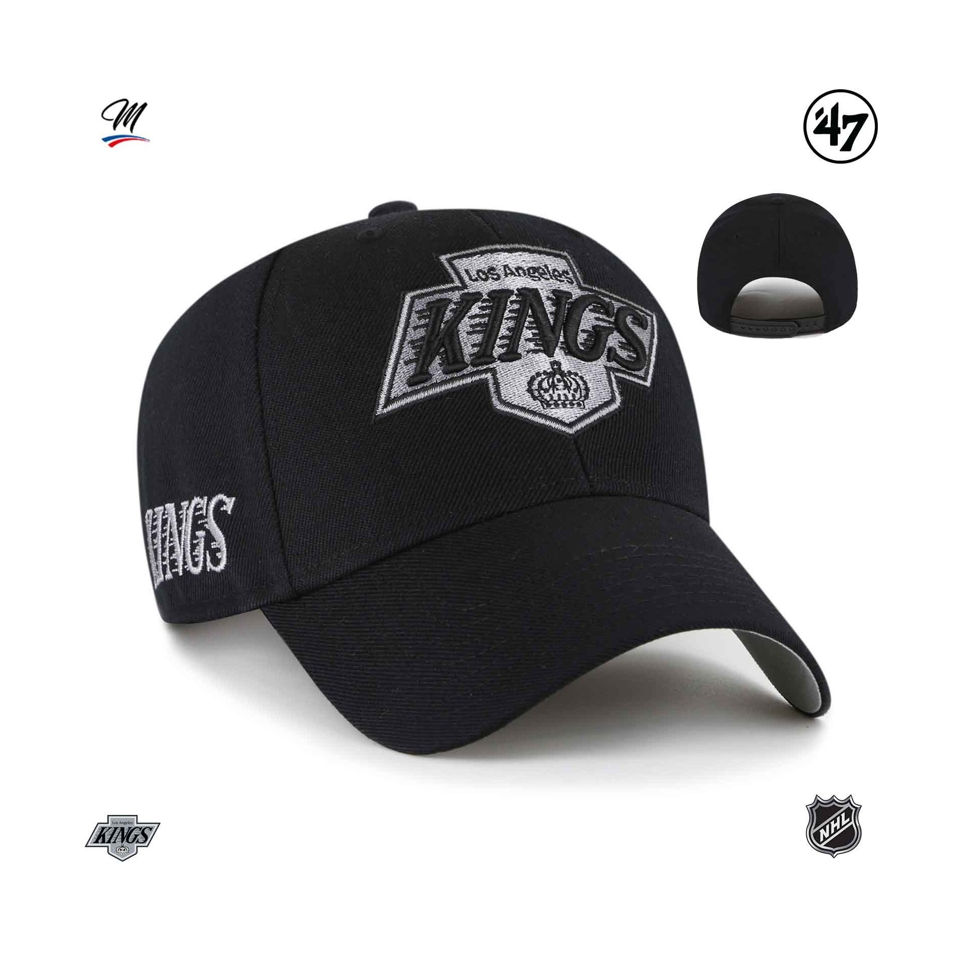 Los Angeles Kings '47 Sure Shot Snapback NHL MVP"-keps är en strukturerad, böjd hockeykeps med upphöjt broderi på framsidan och '47-broderi på sidan.