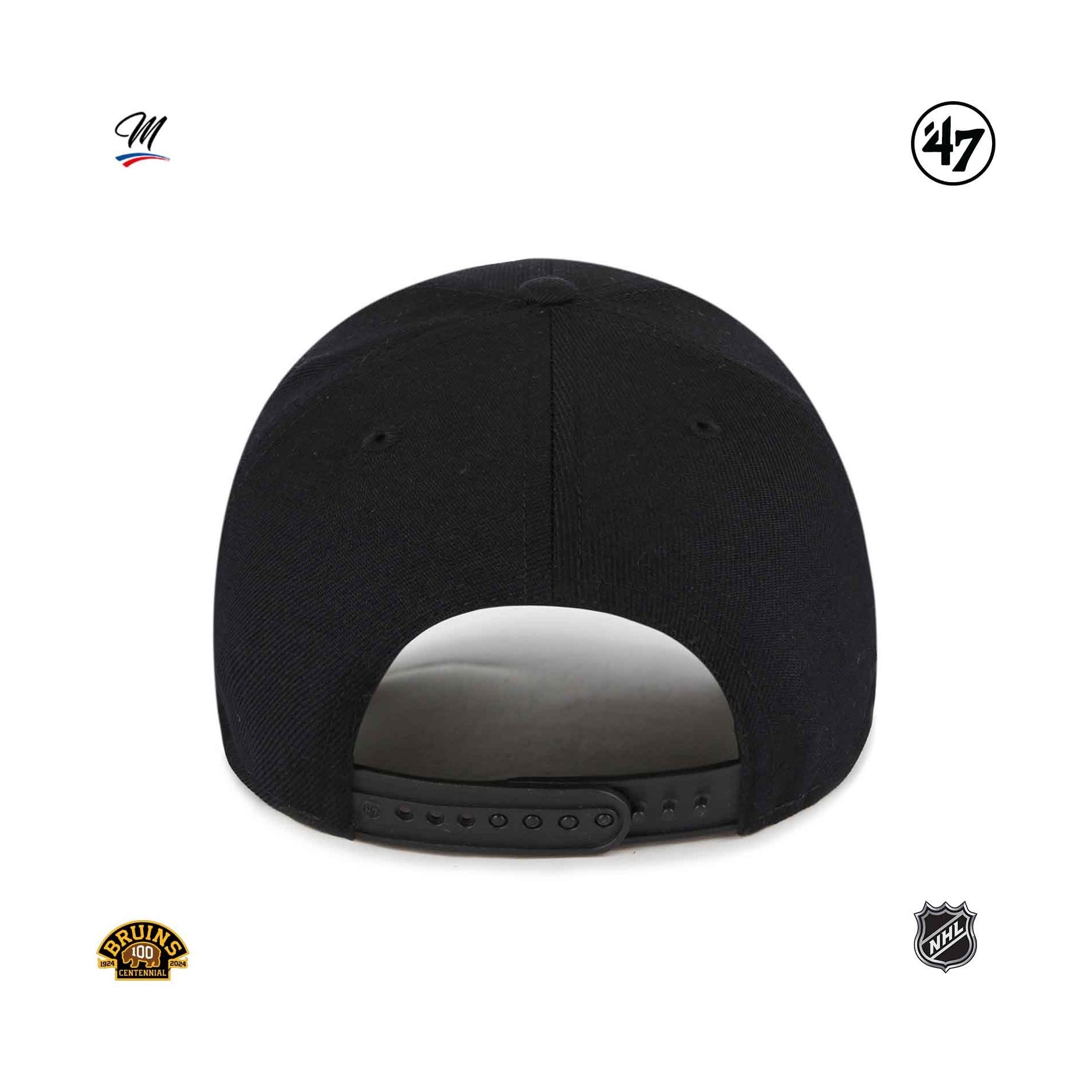 '47 Boston Bruins Sure Shot Snapback NHL MVP"-keps är en strukturerad, böjd hockeykeps med upphöjt broderi på framsidan och '47-broderi på sidan.