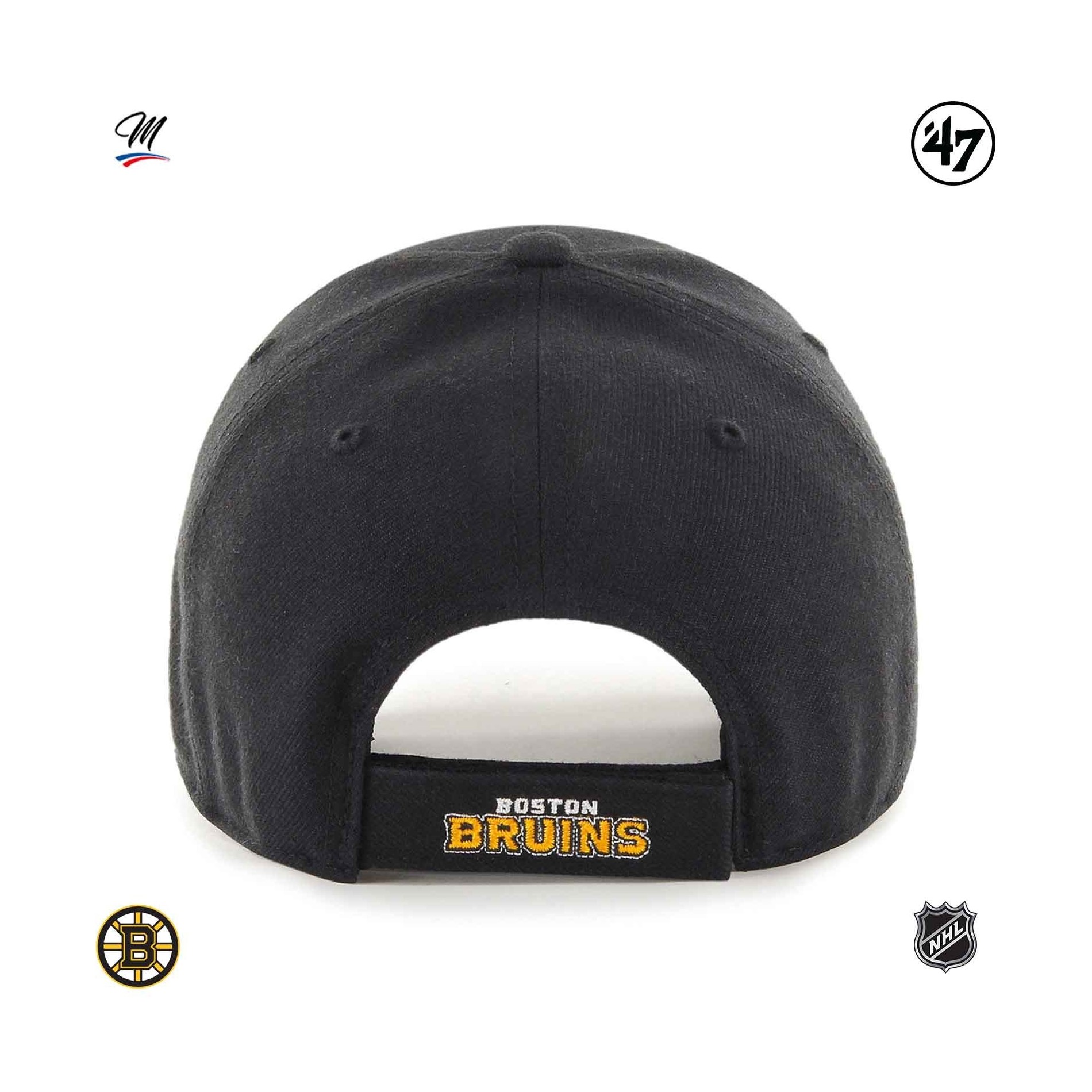 Boston Bruins '47 NHL MVP "Team Logo"-keps är en strukturerad, böjd hockeykeps med präglat broderi fram, '47-broderi på sidan och kardborreknäppning baktill.