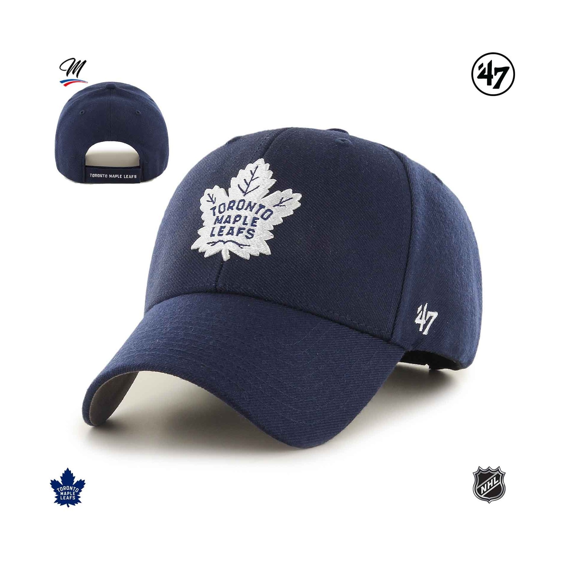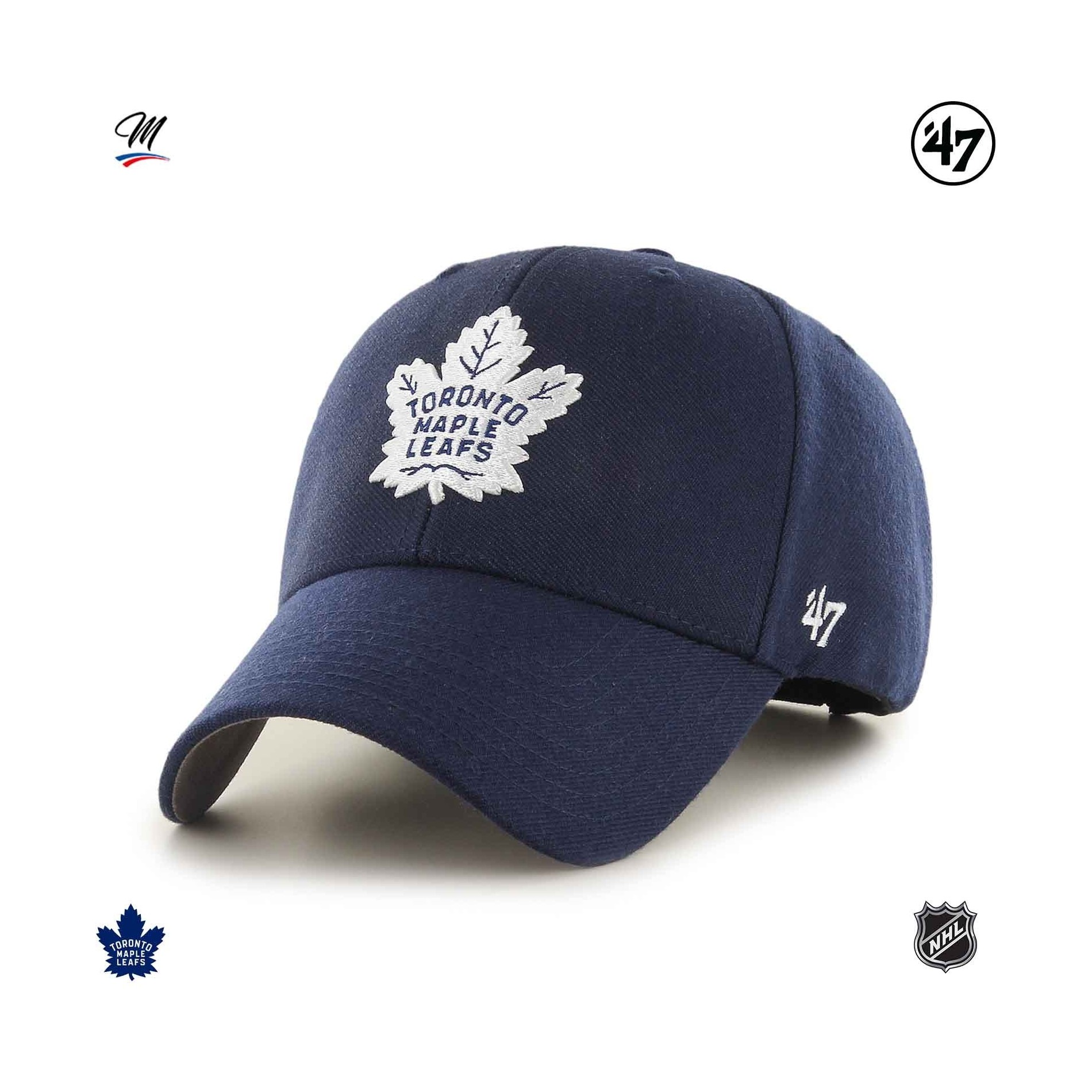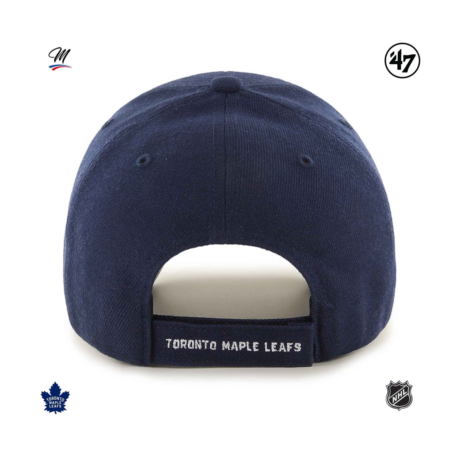 Toronto Maple Leafs '47 NHL "Team Logo MVP" keps är en strukturerad, böjd hockeykeps med präglat broderi på framsidan, '47 broderi på sidan och kardborreknäppning baktill.