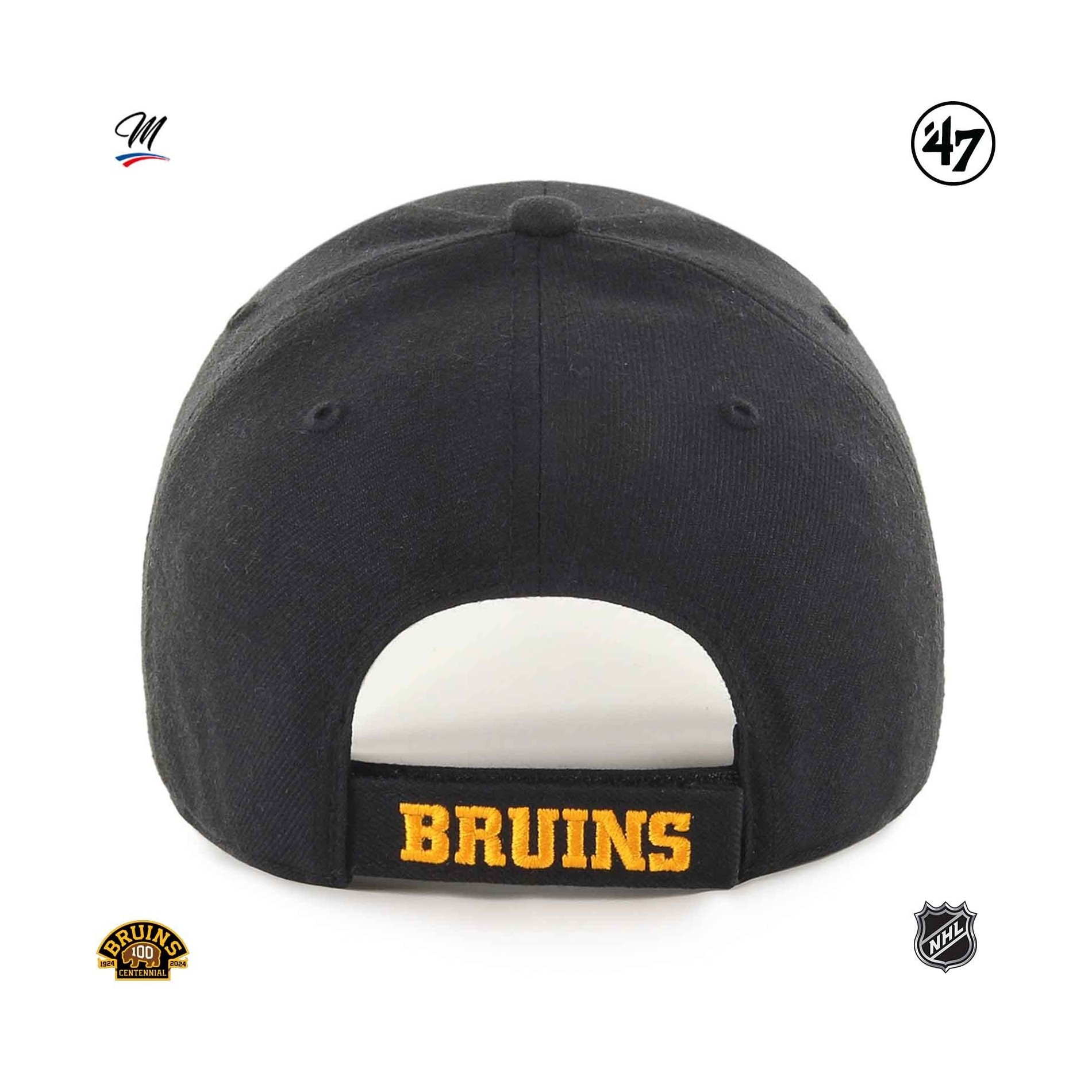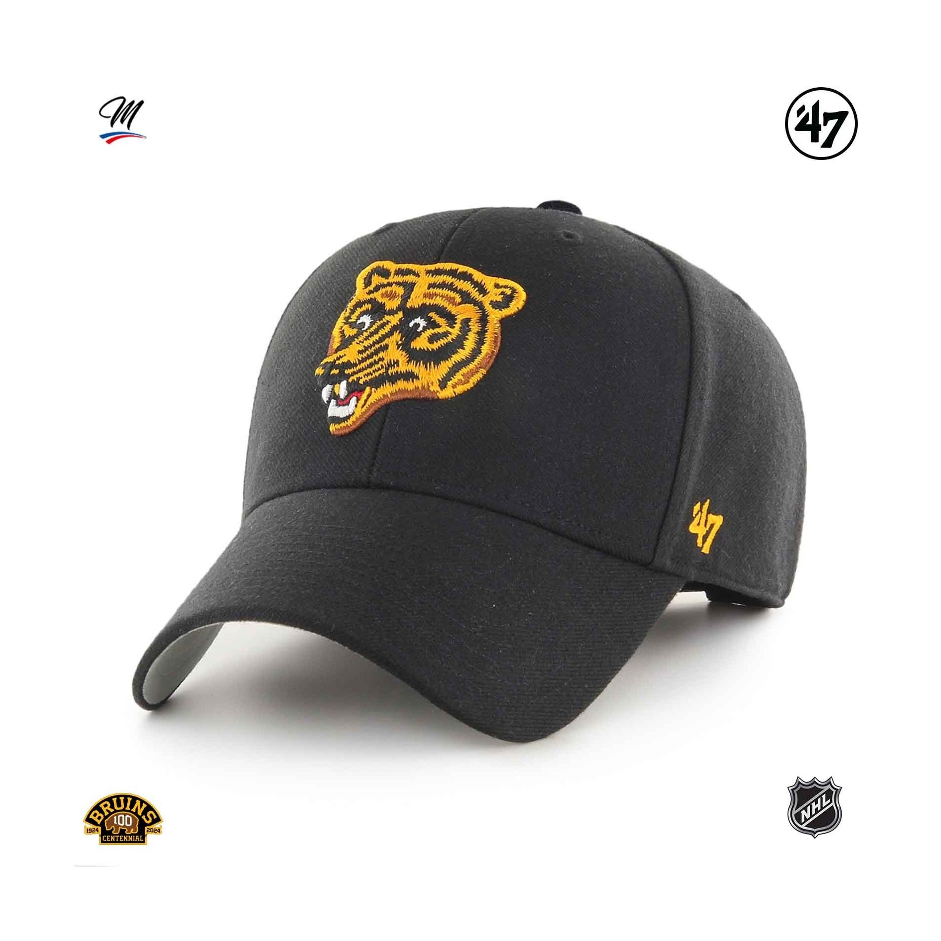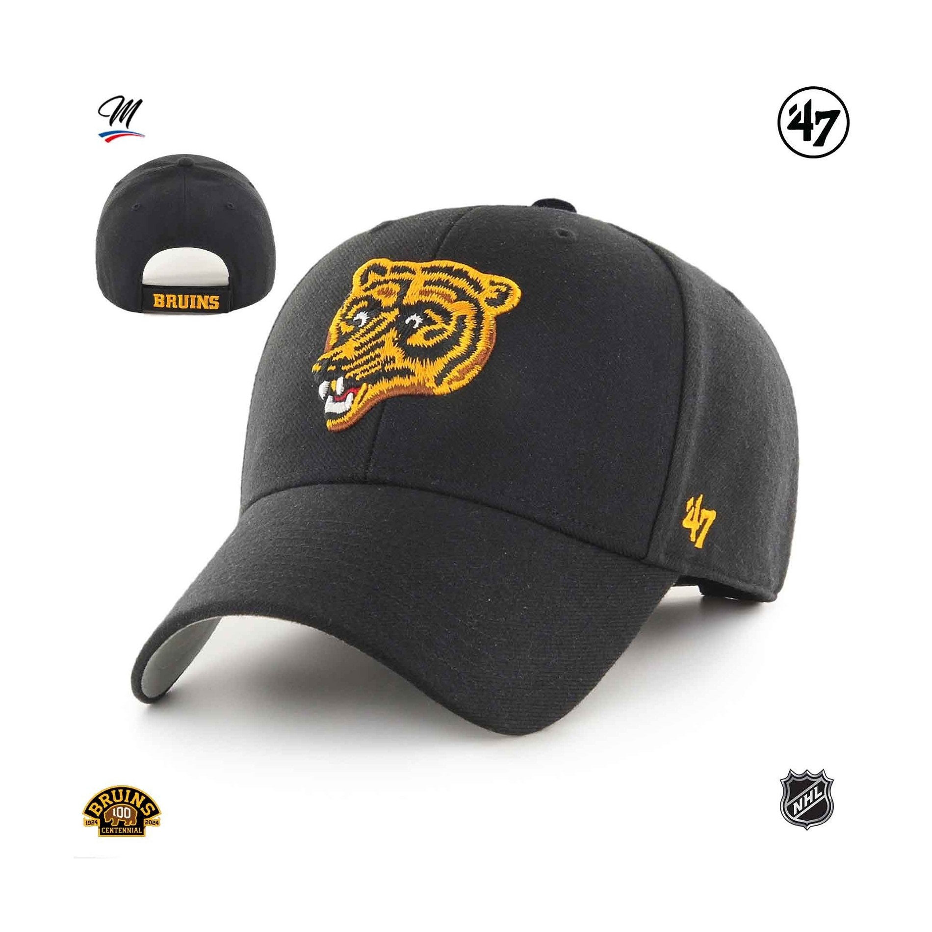 Boston Bruins '47 NHL MVP "Vintage Logo"-keps är en strukturerad, böjd hockeykeps med präglat broderi på framsidan, '47-broderi på sidan och kardborreknäppning på baksidan.