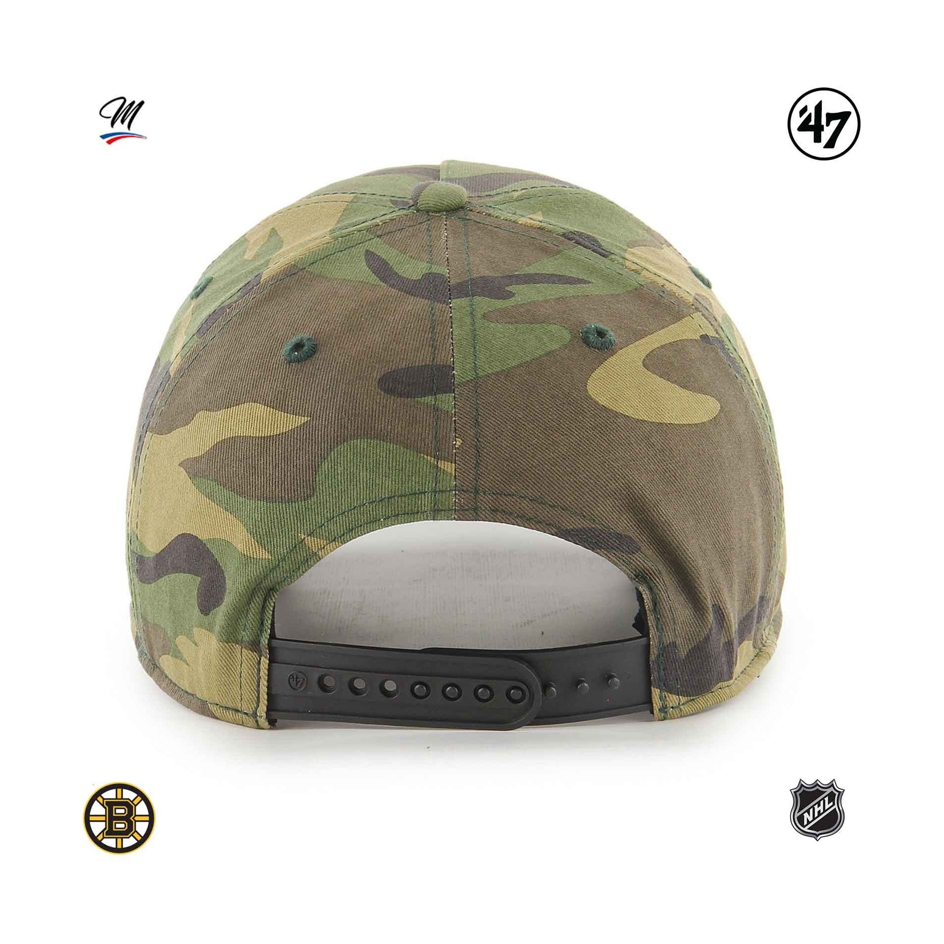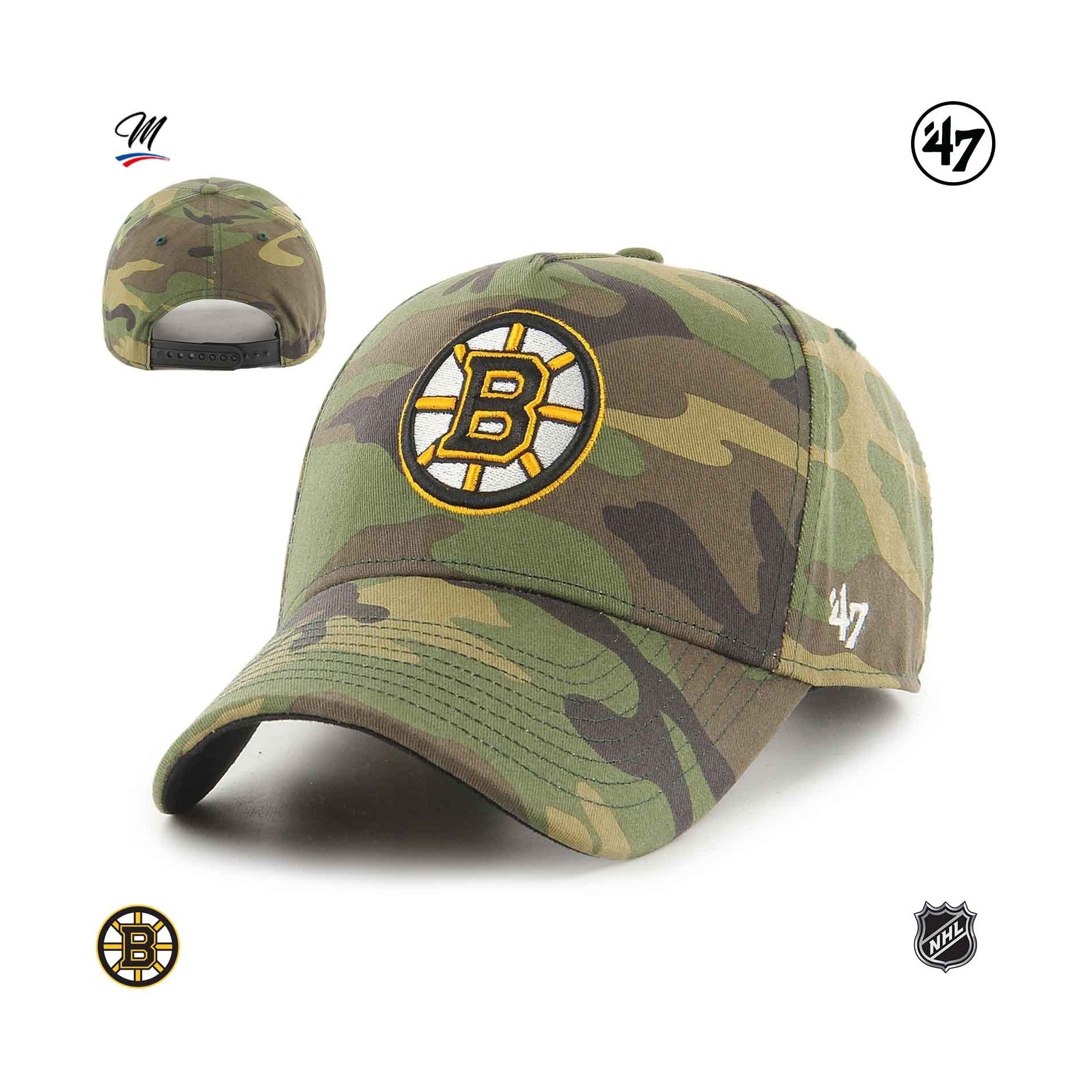 '47 NHL "Grove Snapback MVP Camo" Boston Bruins keps är en kamouflagefärgad HOCKEY-keps i 100 % bomull, strukturerad och böjd, med upphöjt broderi framtill och '47-broderi på sidan.
