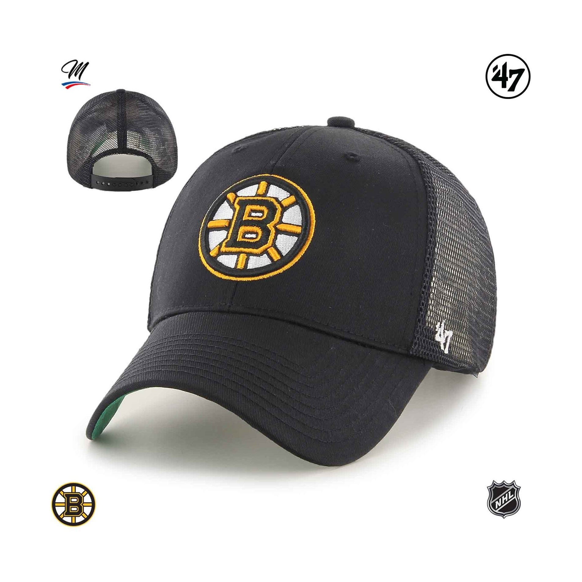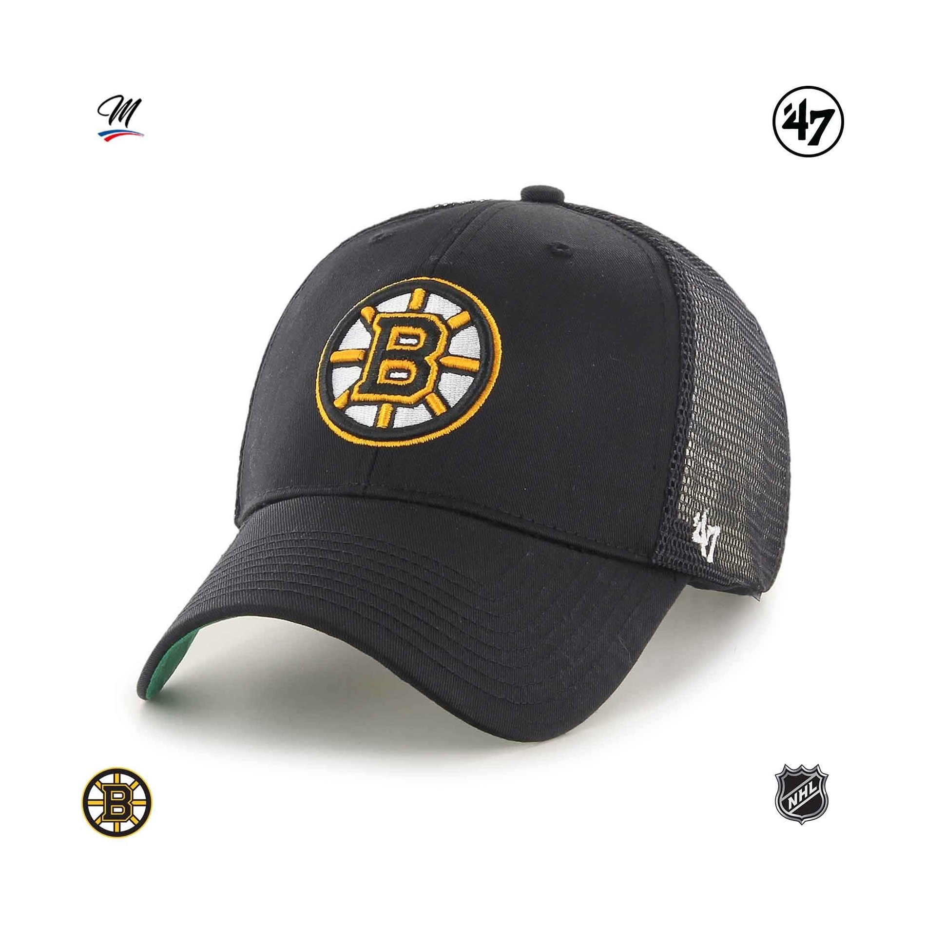 NHL Branson'47 MVP Boston Bru ins-keps är en strukturerad, böjd hockeykeps med upphöjt broderi på framsidan och '47-broderi på sidan.