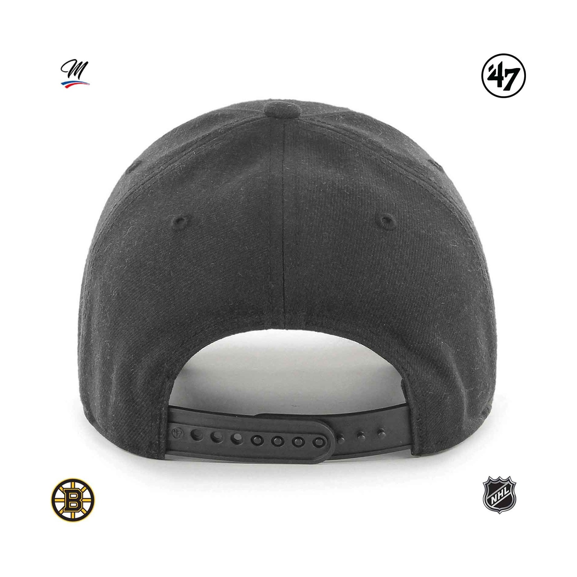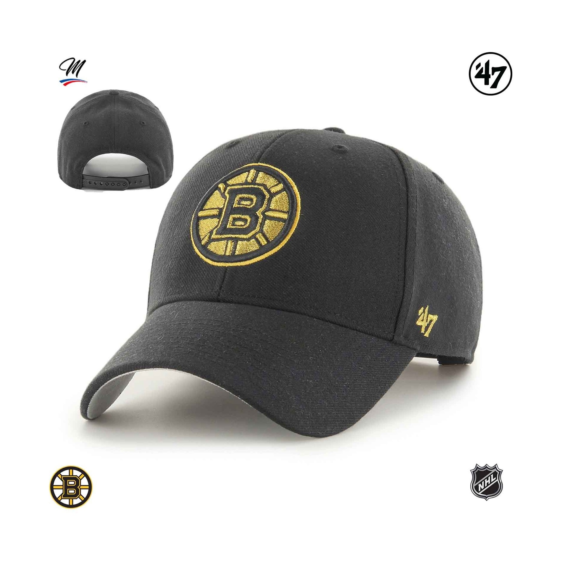 NHL Metallic Snap MVP '47 Boston Bruins-keps är en strukturerad, böjd hockeykeps med upphöjt broderi framtill och '47-broderi på sidan. Justerbar snapback baktill. 85% akryl och 15% ull.