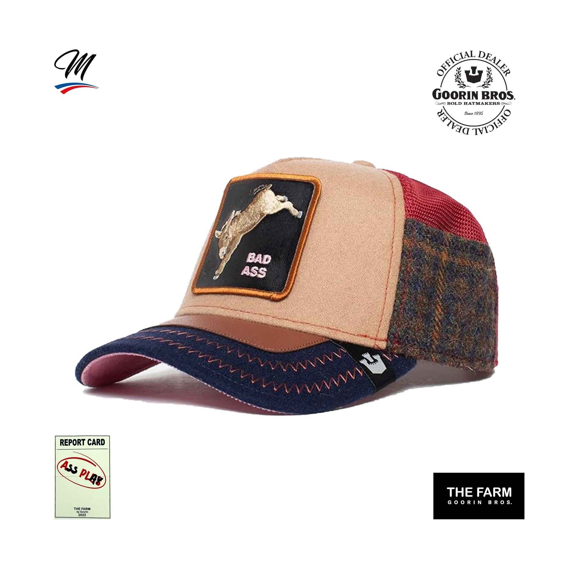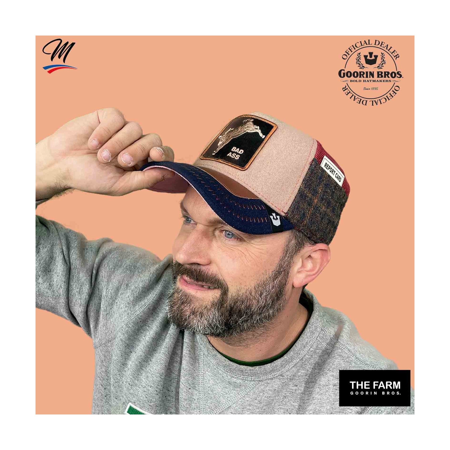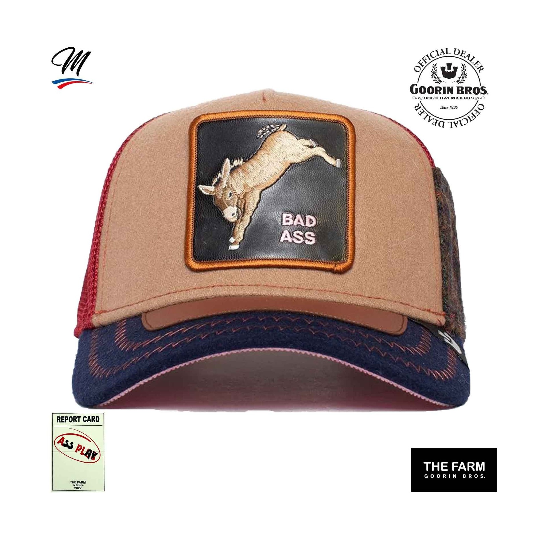 Äkta GOORIN BROS keps, baseboll Trucker med mesh, broderad åsne patch med orden "Bad ass".
