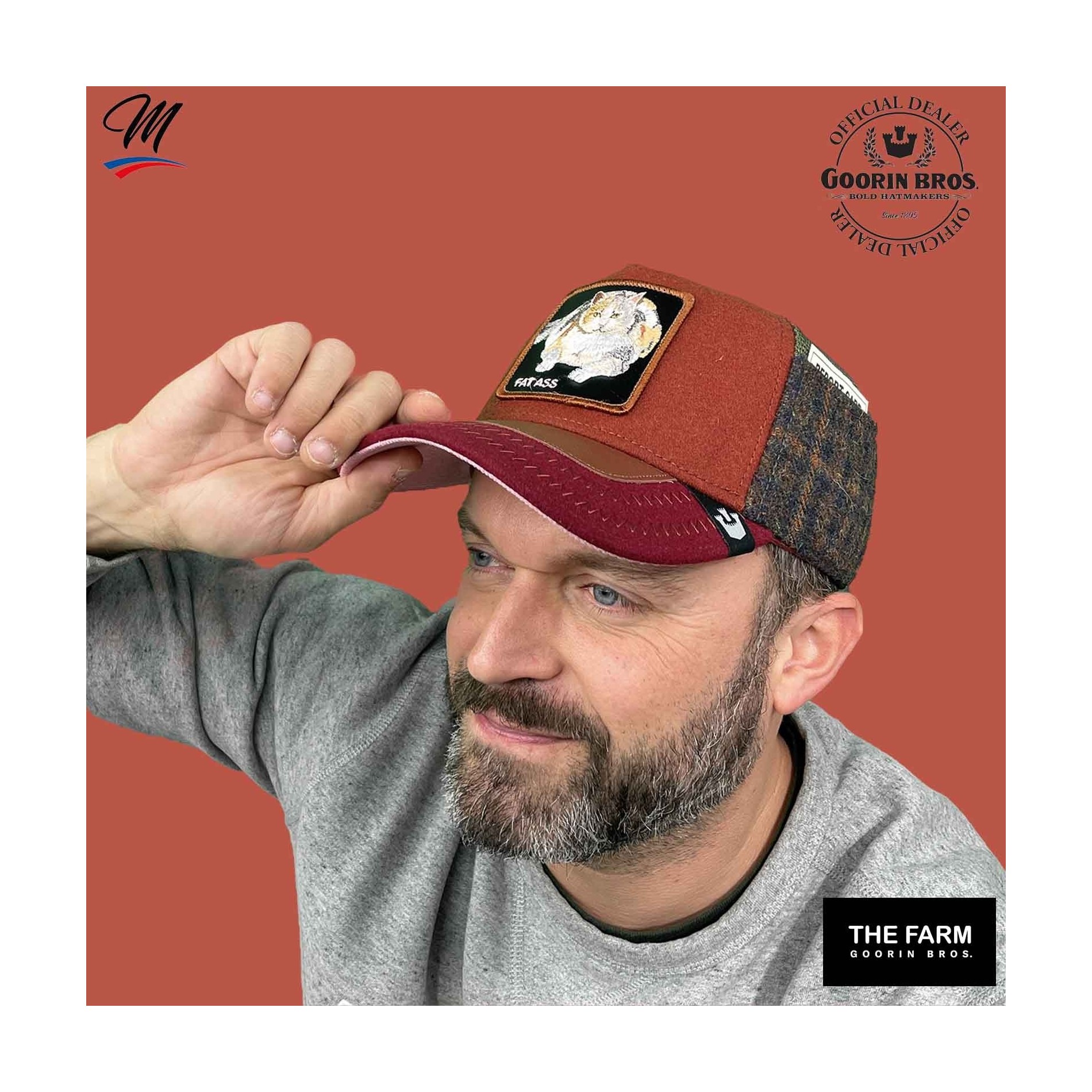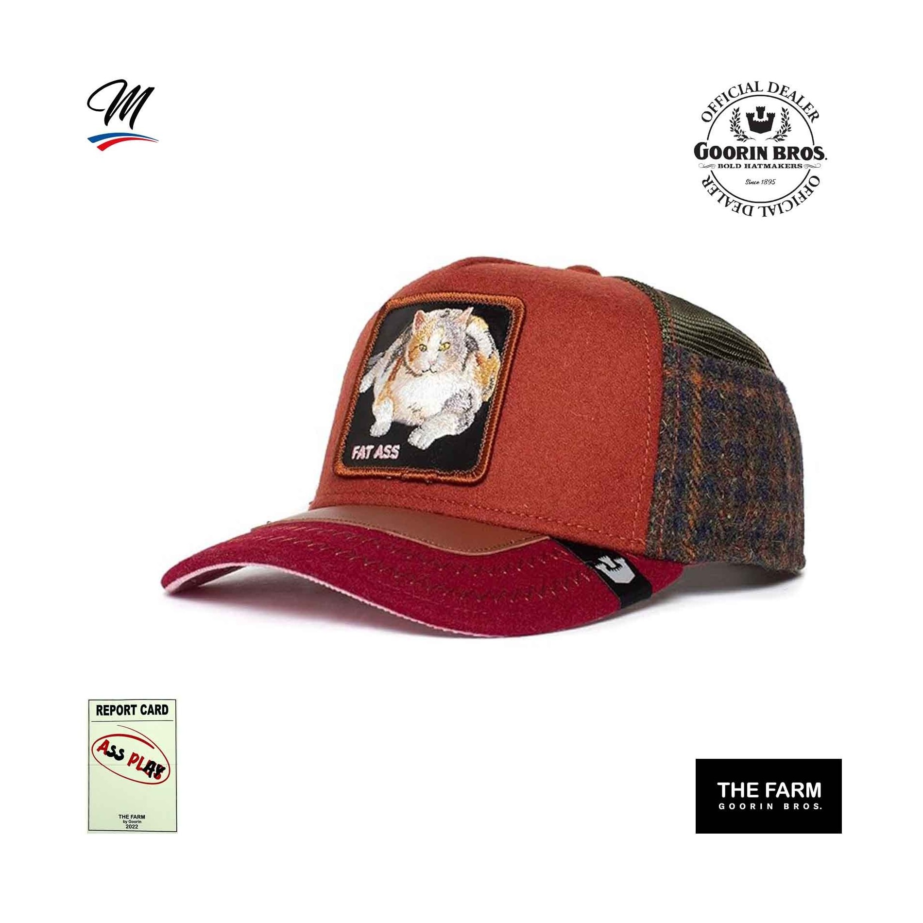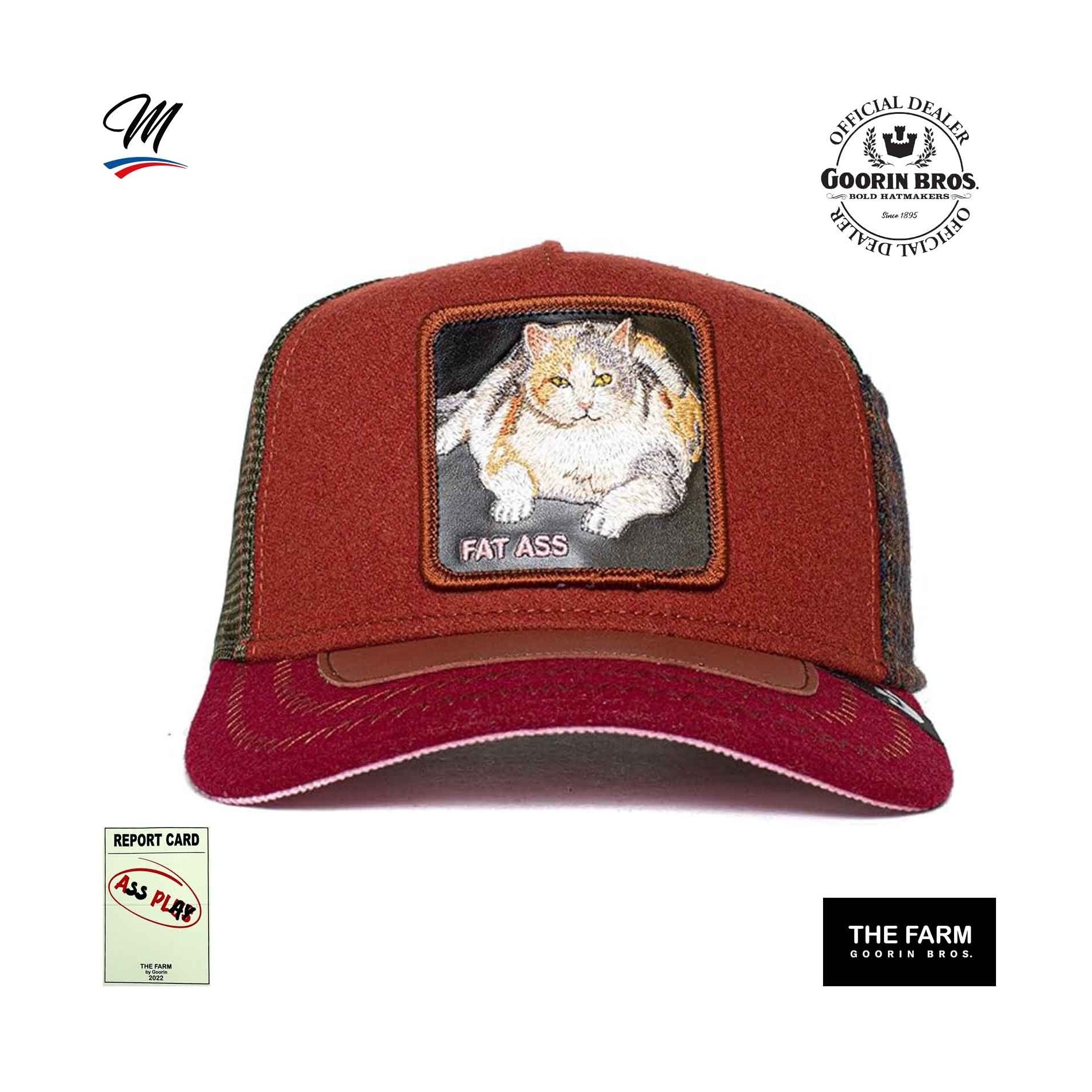 Äkta GOORIN BROS BaseballTrucker-kepsmed mesh, broderad Big Cat-patch och"FAT ASS"-bokstäver.
