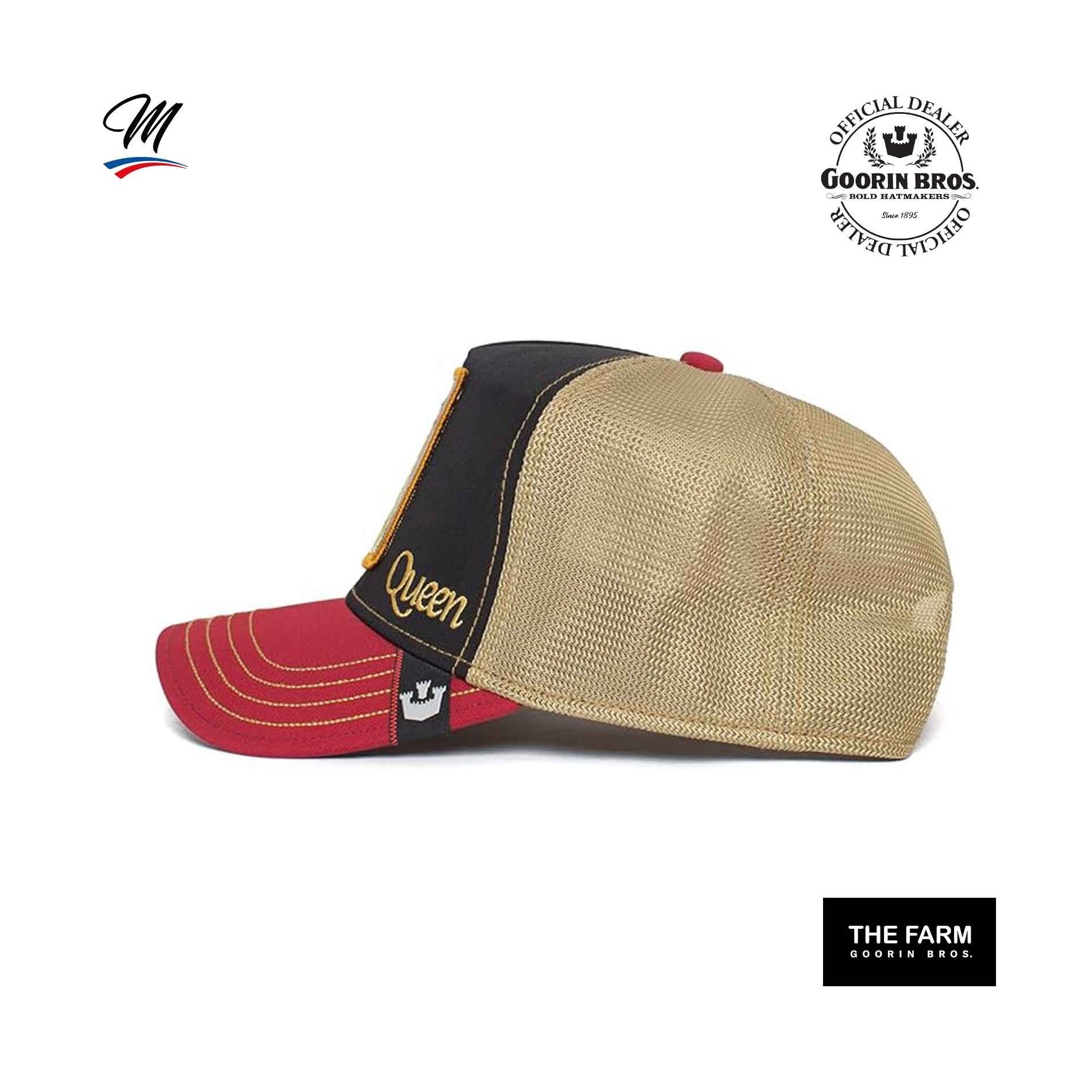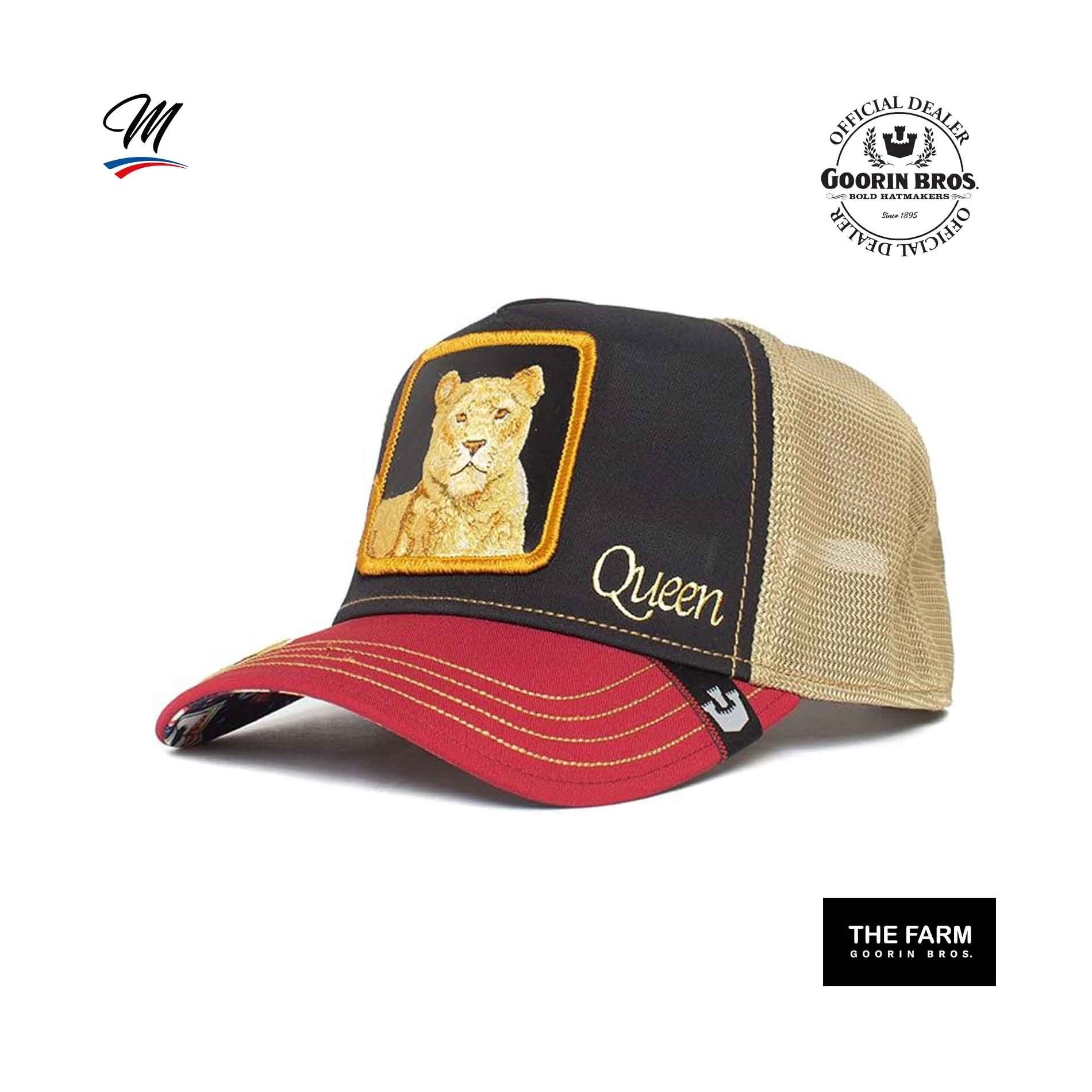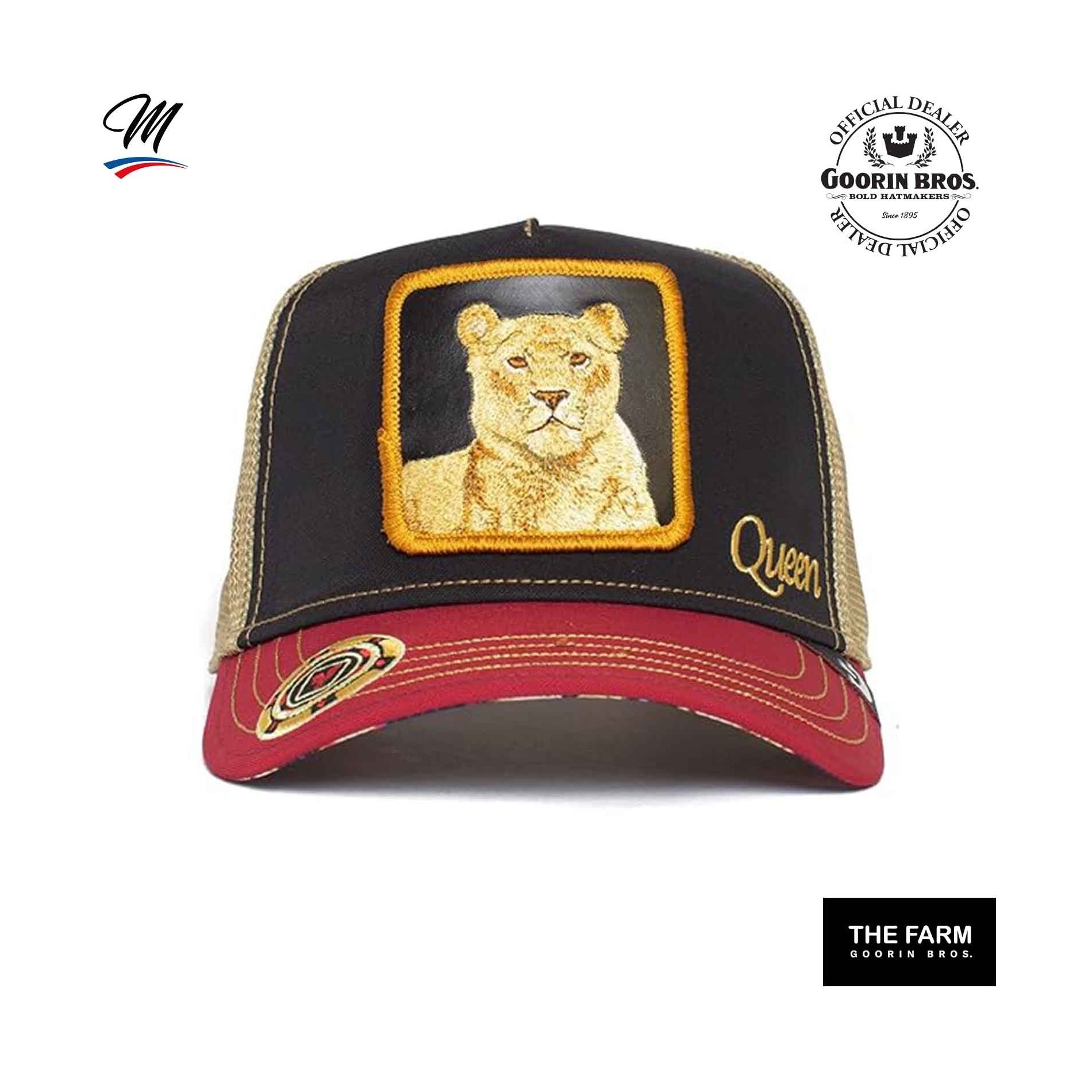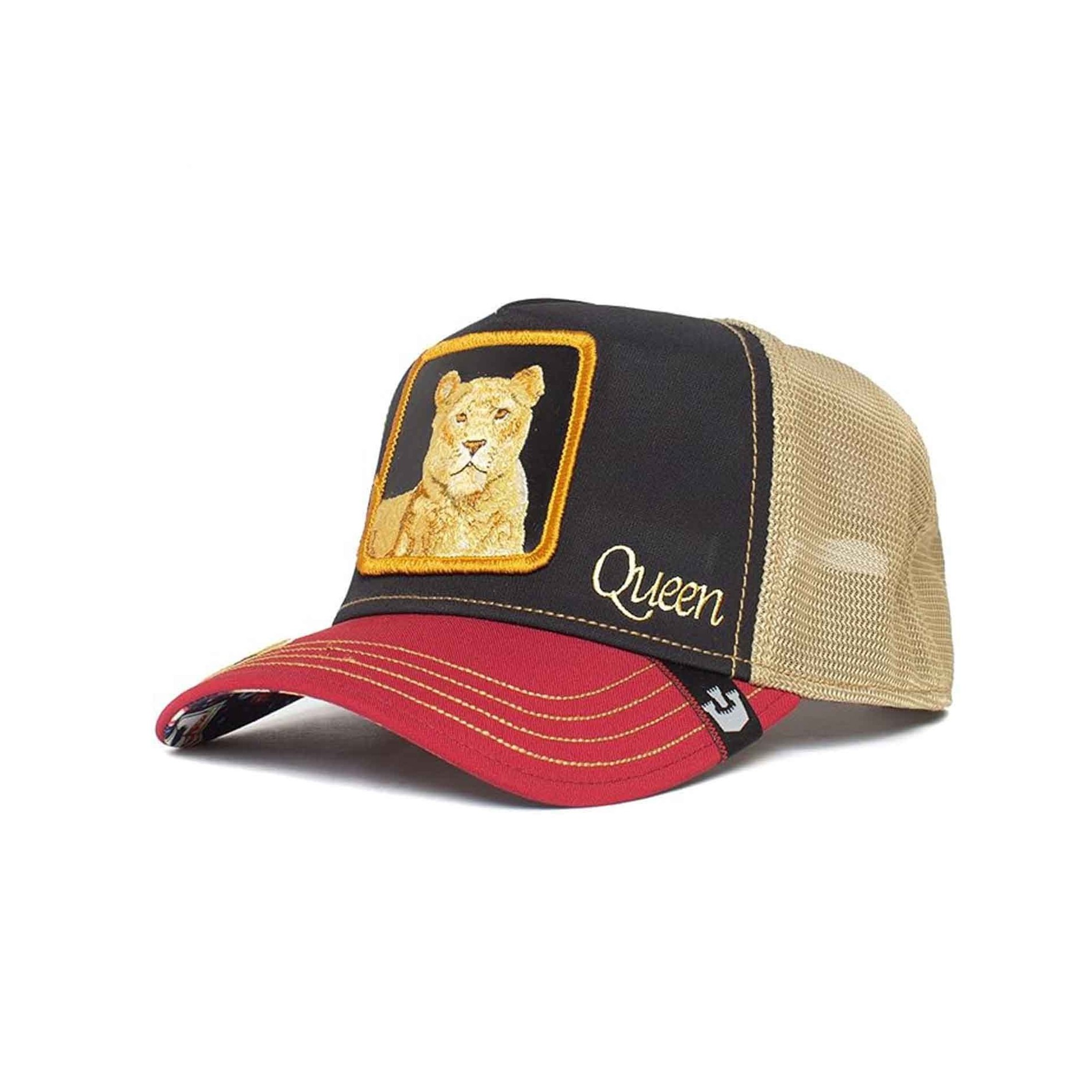 Äkta GOORIN BROS keps, Baseball Trucker med mesh, broderad patch av en lejoninna med inskriptionen "Queen".