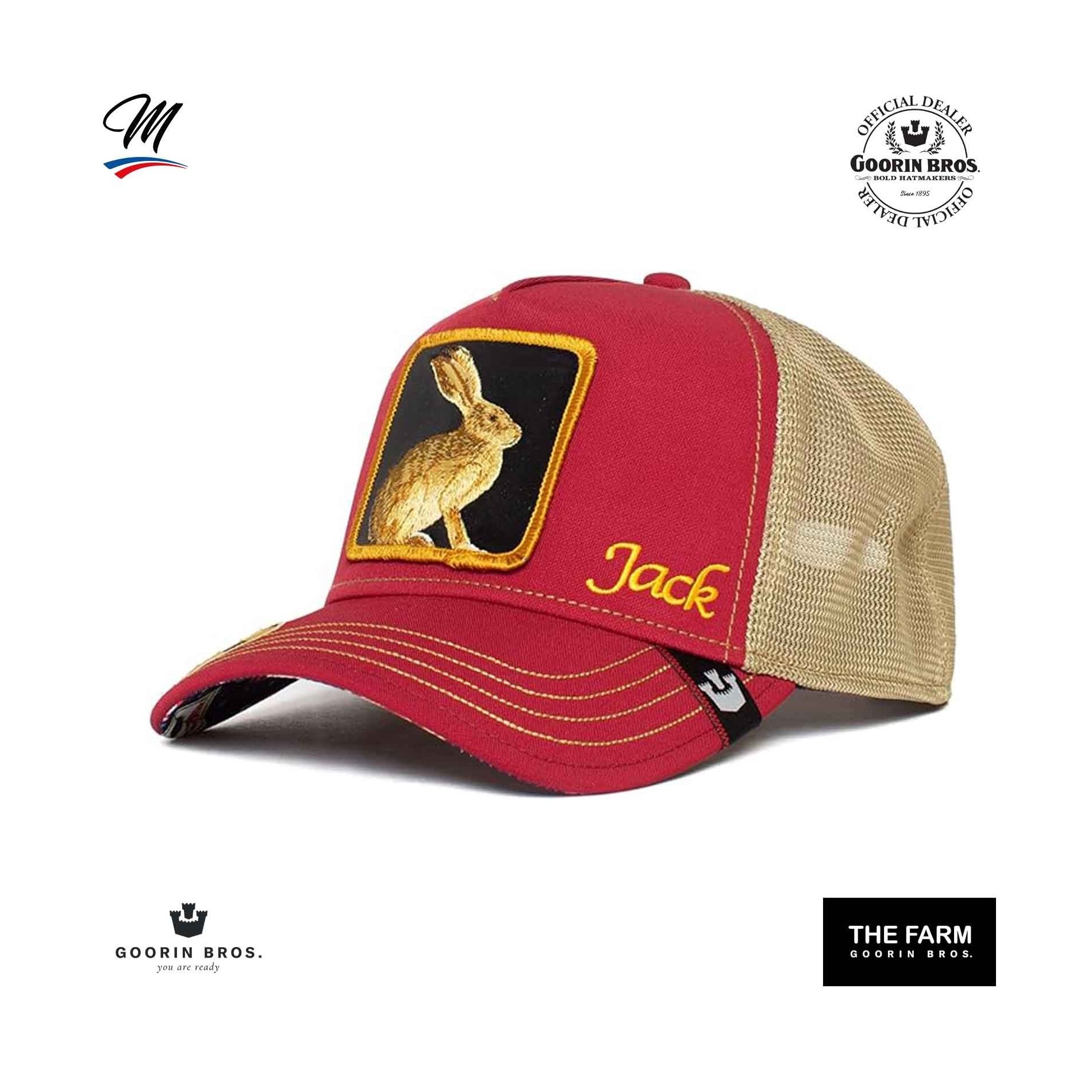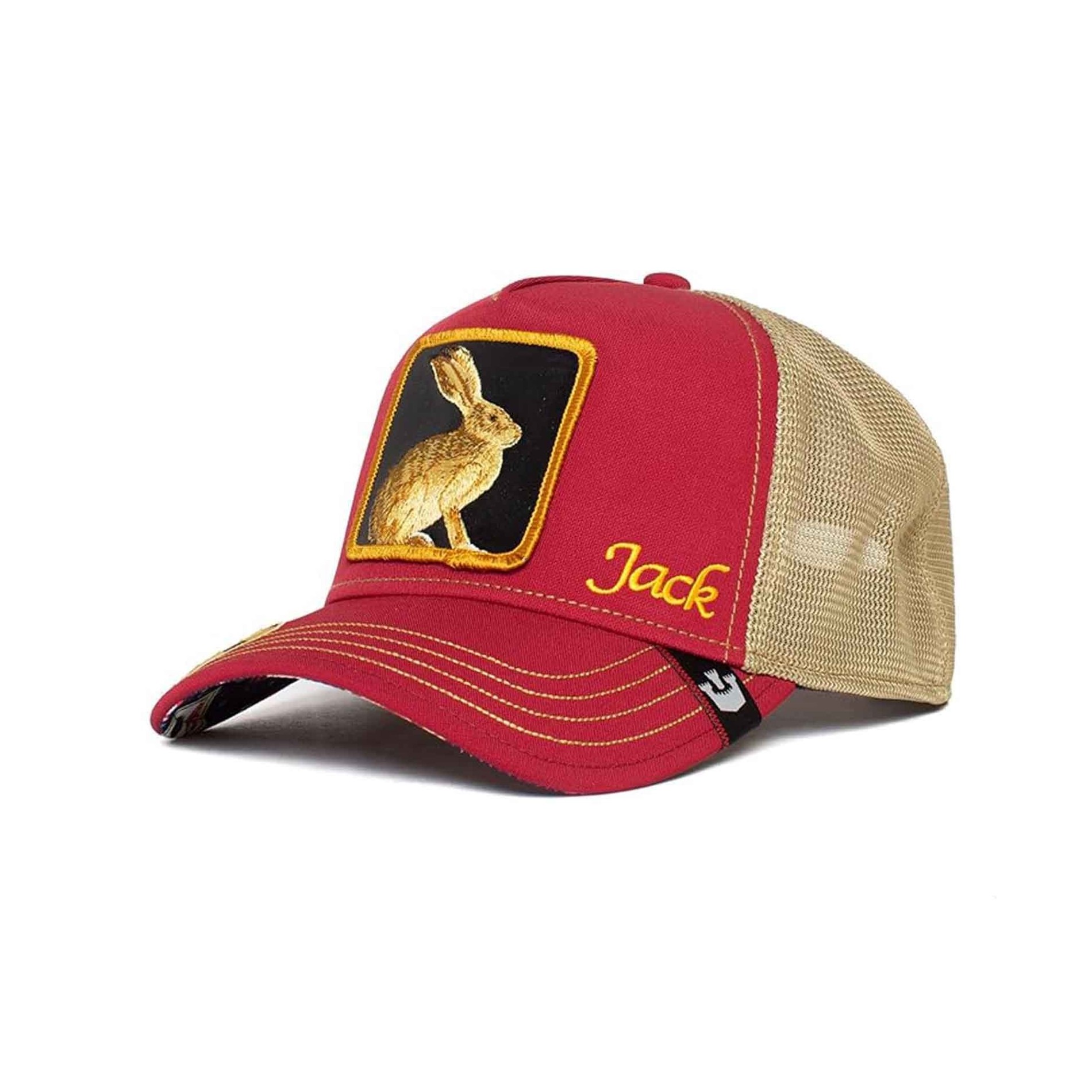 Äkta GOORIN BROS BaseballTrucker-keps med mesh, broderadRABBIT-patch och"JACK"-bokstäver.