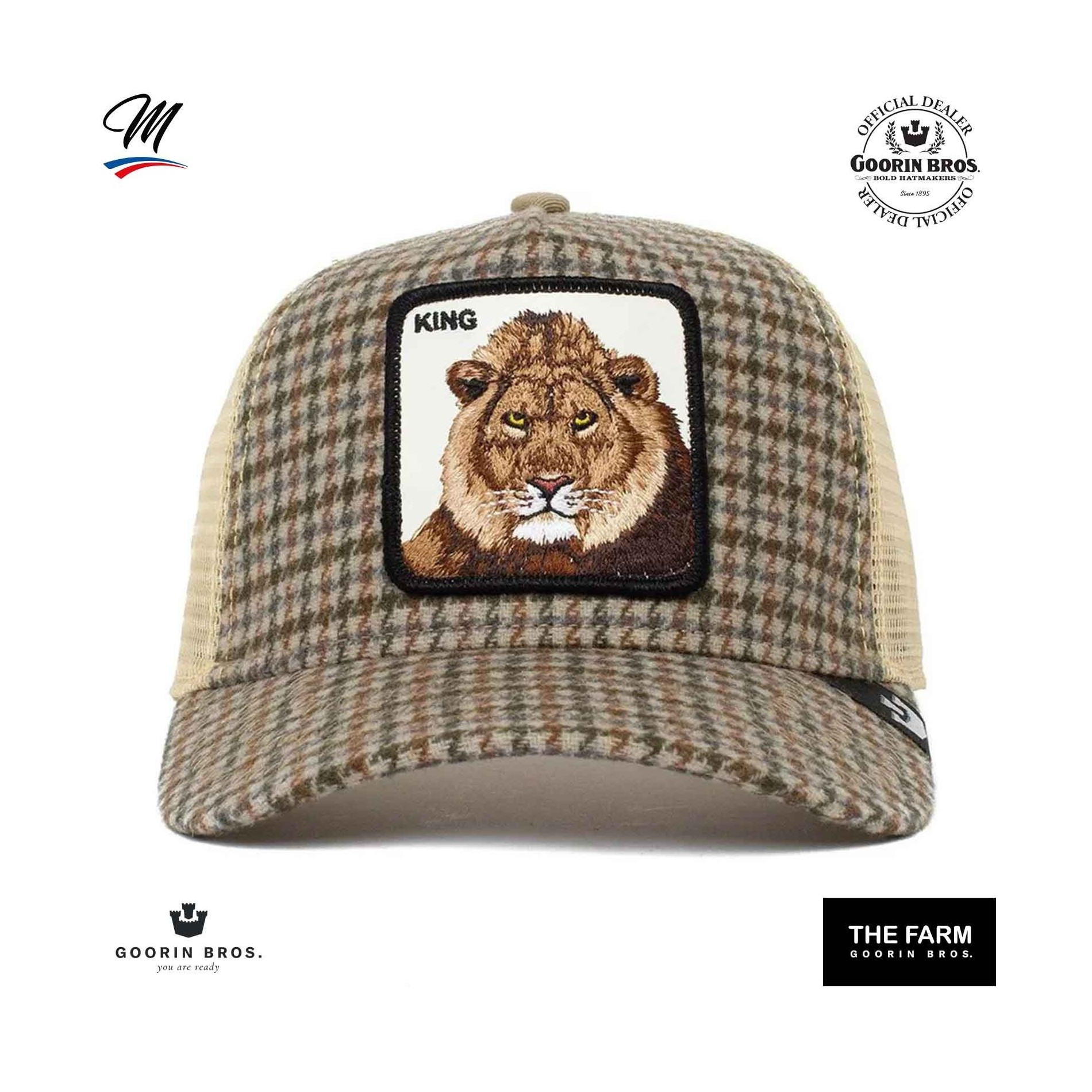 Äkta GOORIN BROS BaseballTrucker-keps med mesh, broderad " Lion King of the Jungle "-lapp och "King"-inskription.