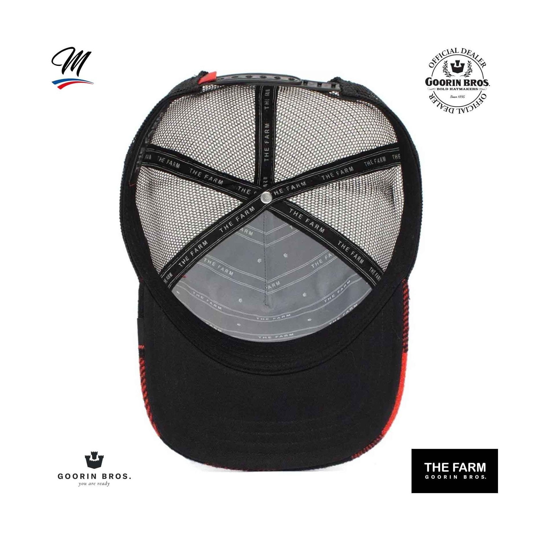 Röd och svart keps i tartanmönster med namnet"Plaidy Bug" av The Farm.