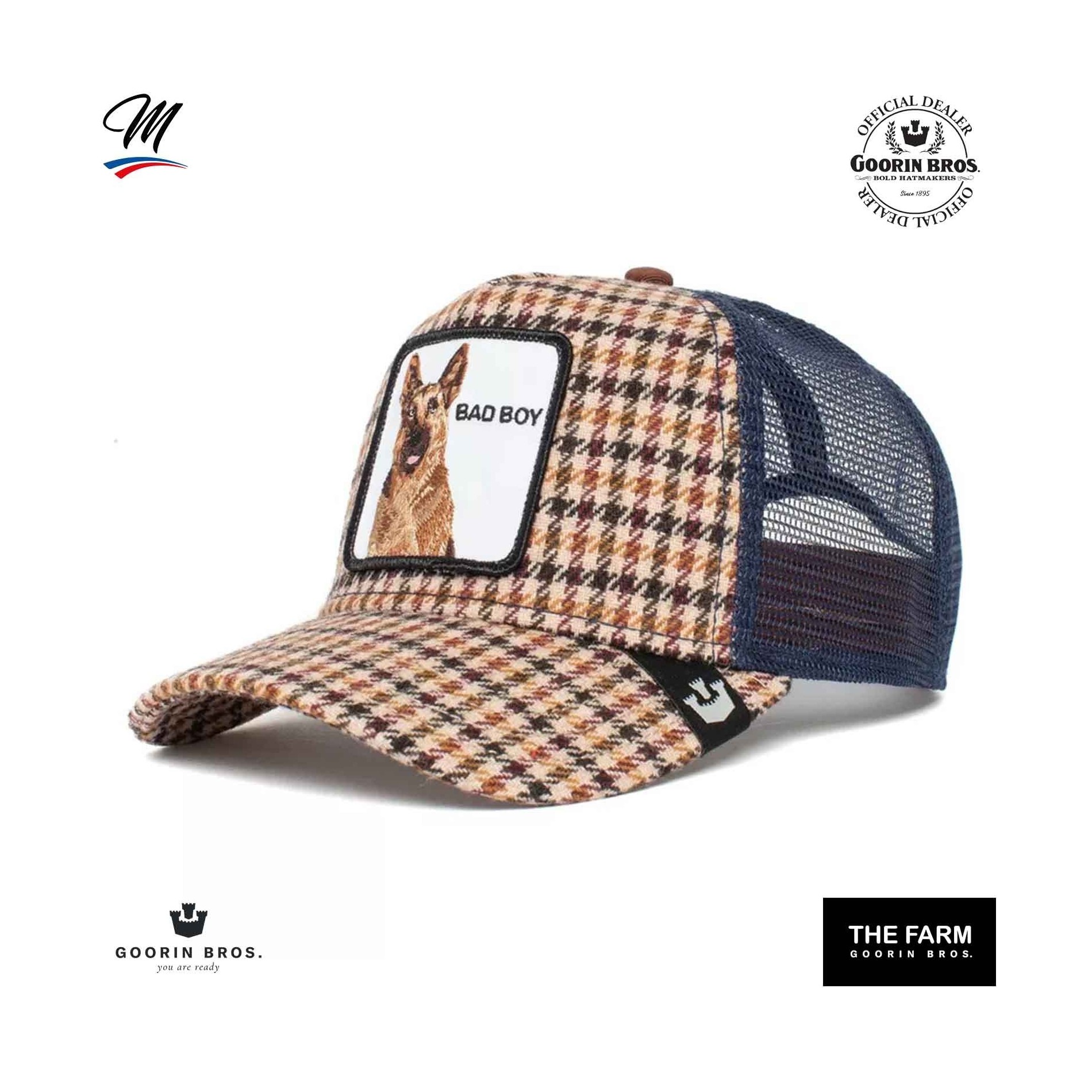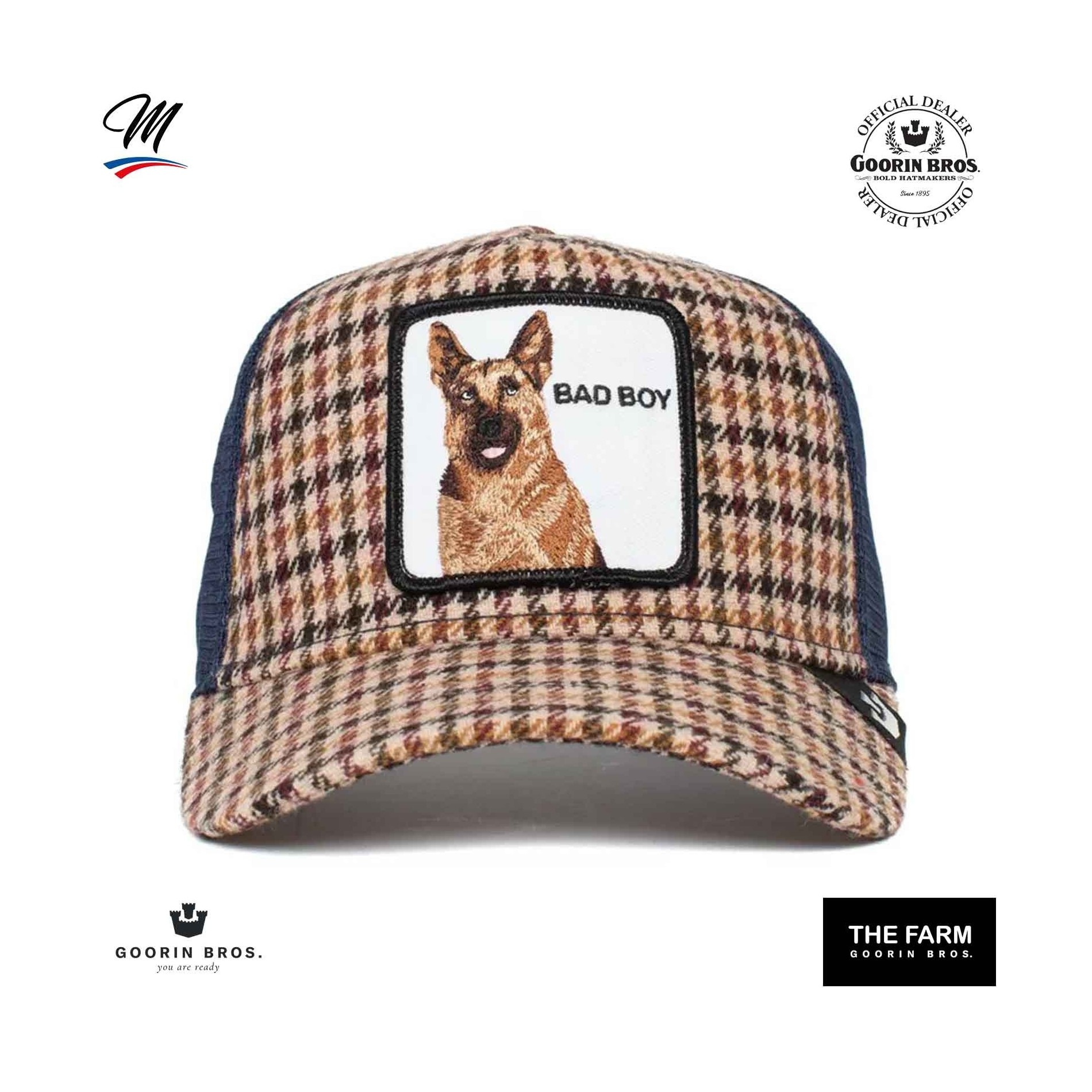Äkta GOORIN BROS Baseball Trucker-keps med mesh, broderad patch av en schäferhund och texten"BAD BOY".