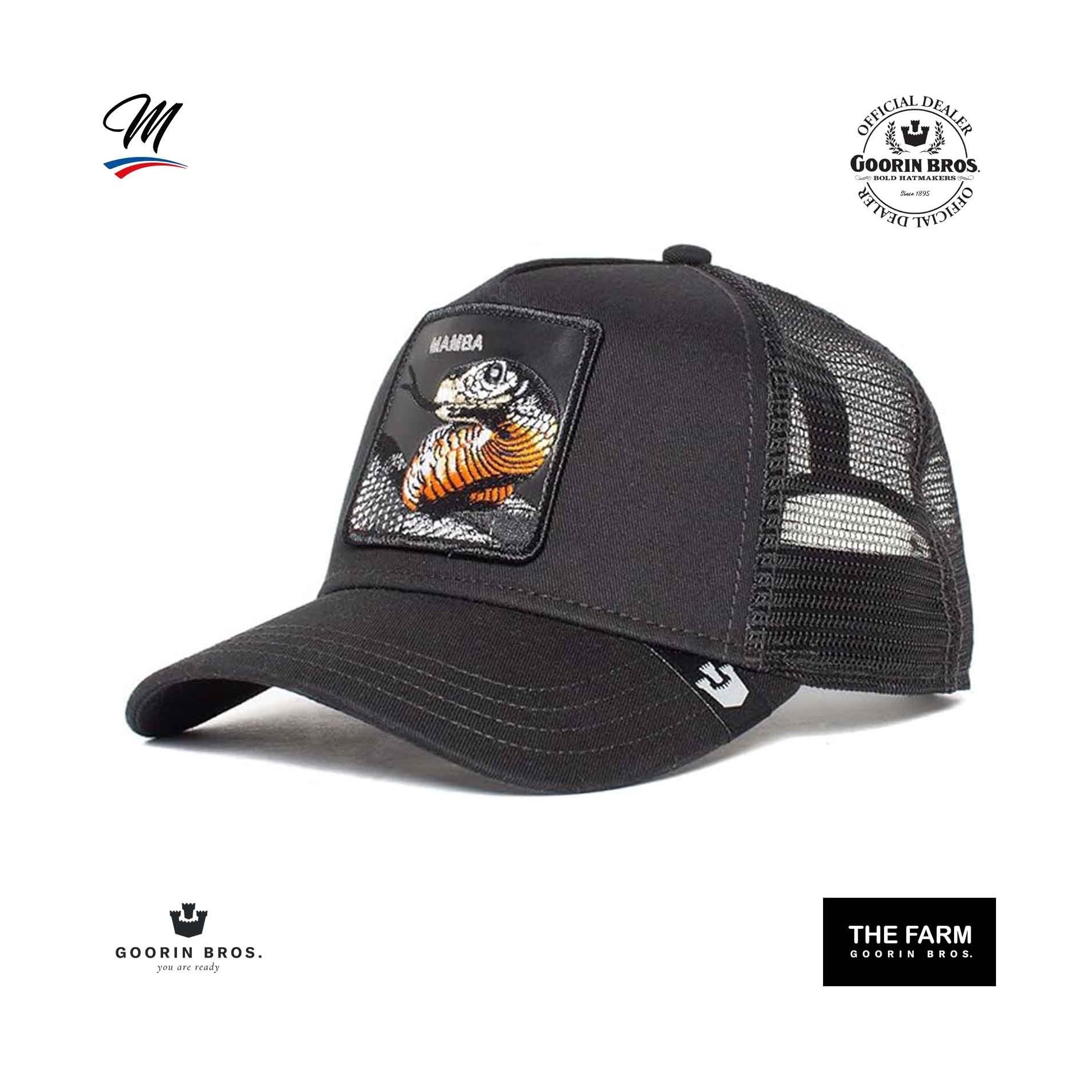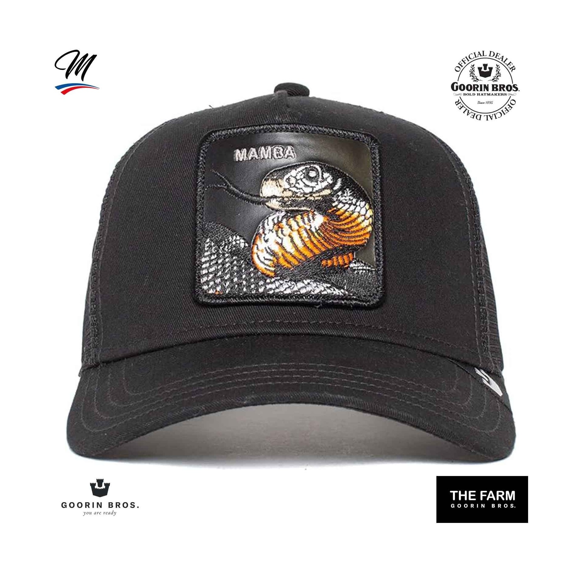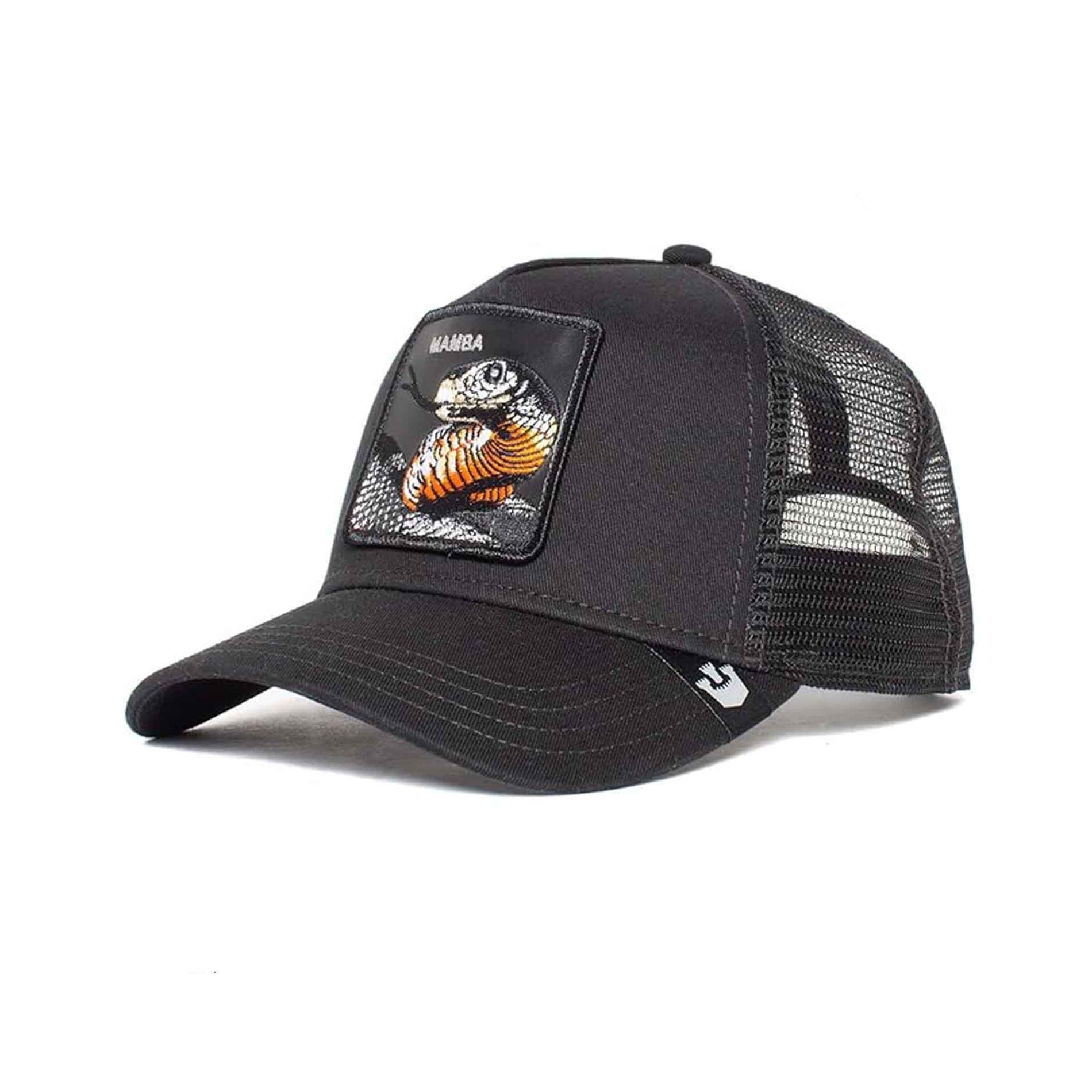 Äkta GOORIN BROSbasebollkeps Trucker med mesh, broderadormpatch och"MAMBA"-logotyp.