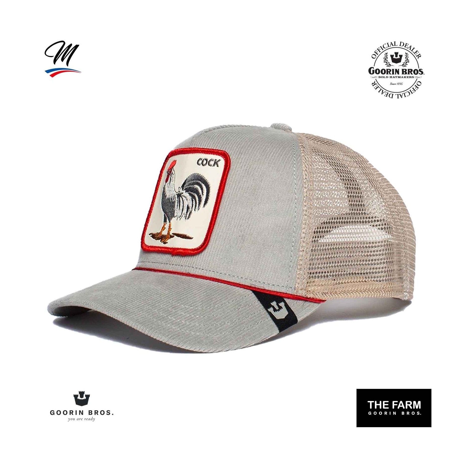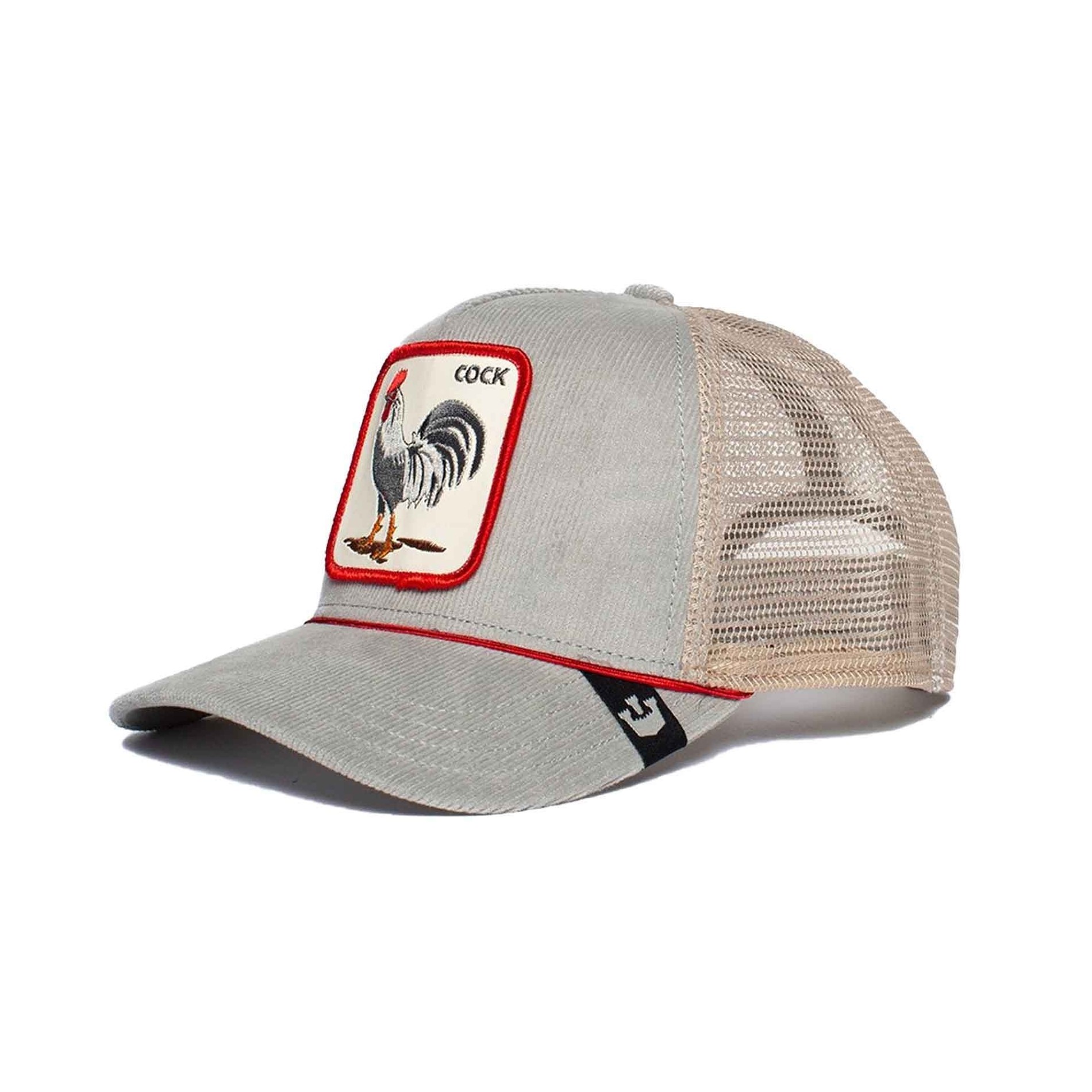Äkta GOORIN BROS keps, Baseball Trucker i sammet med mesh, broderad patch av en tupp med inskriptionen "COCK".