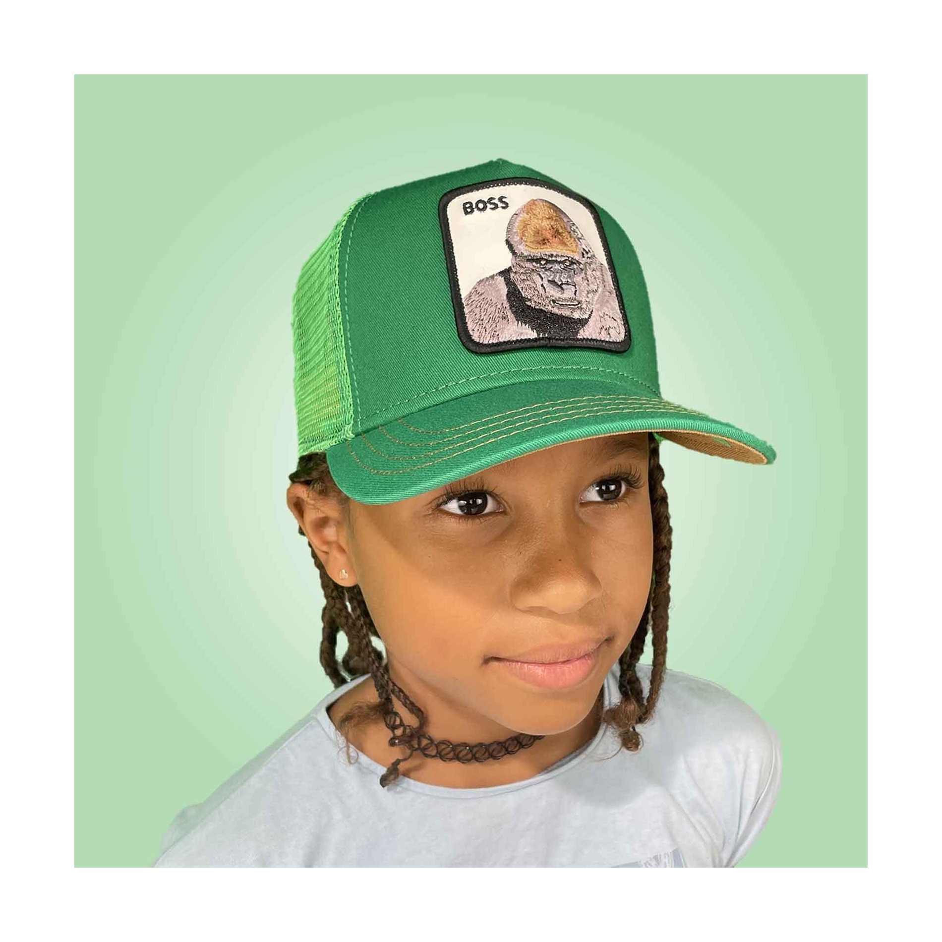 Äkta GOORIN BROSbasebollkeps för barnTruckerkeps med mesh, Gorilla-broderad patch och"BOSS"-inskription.