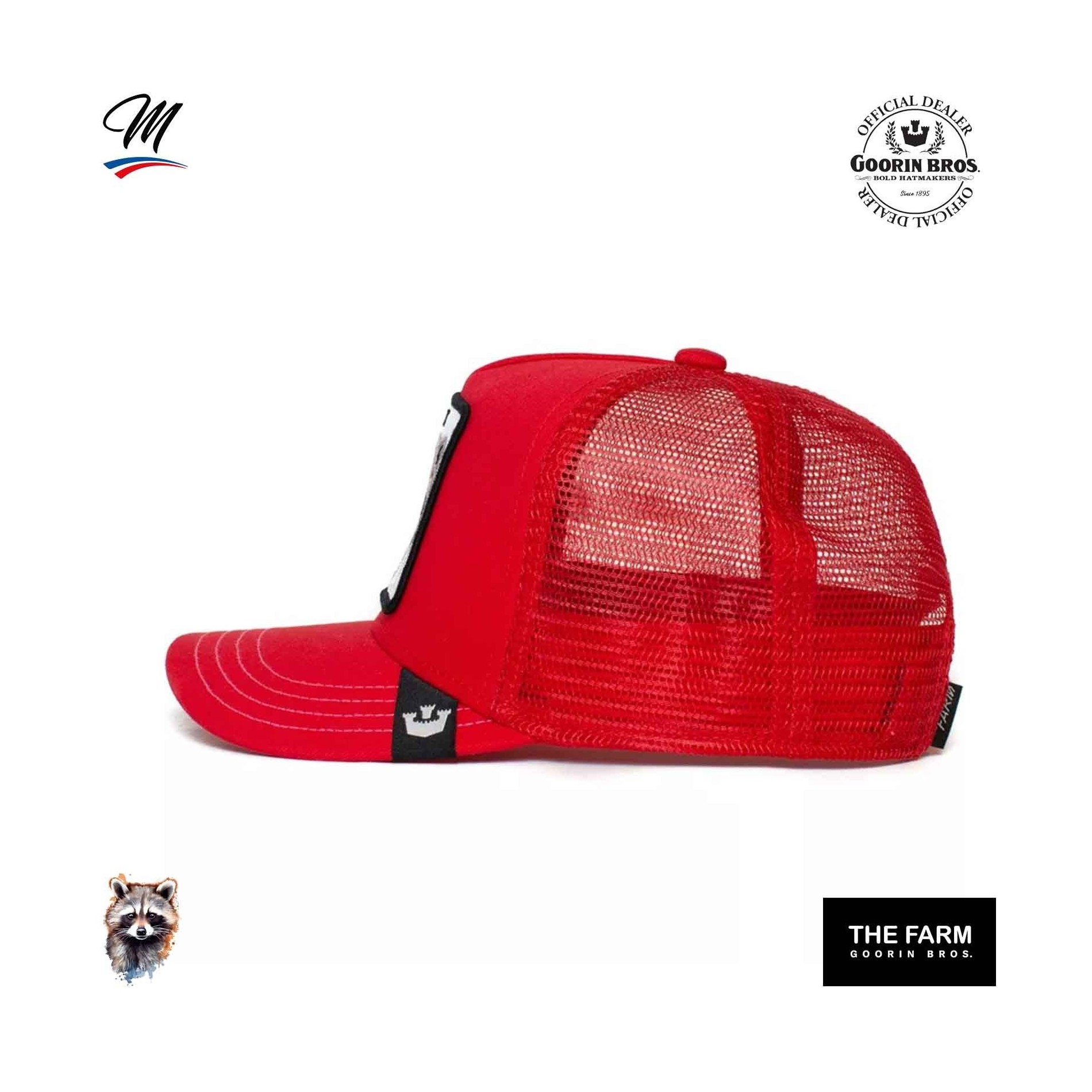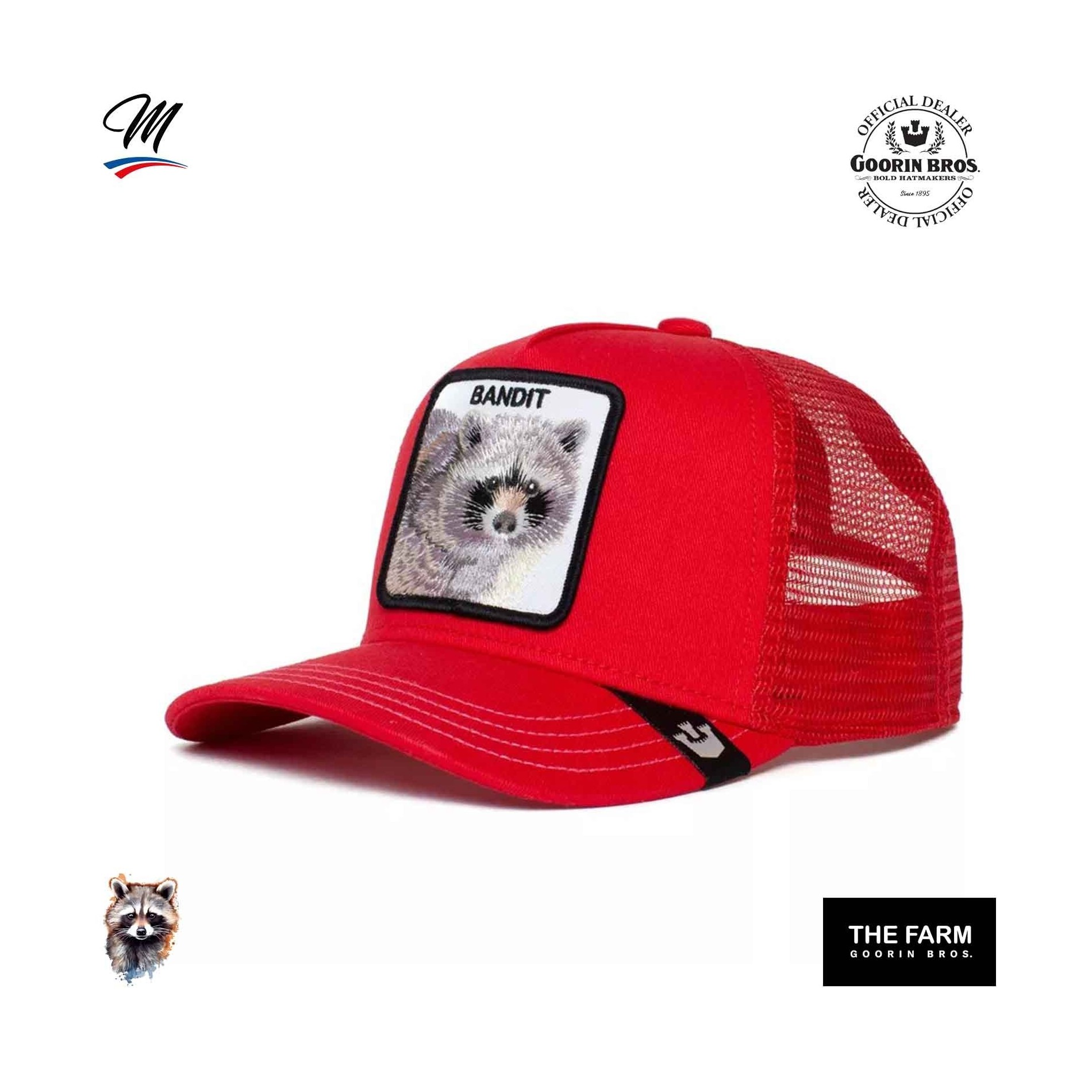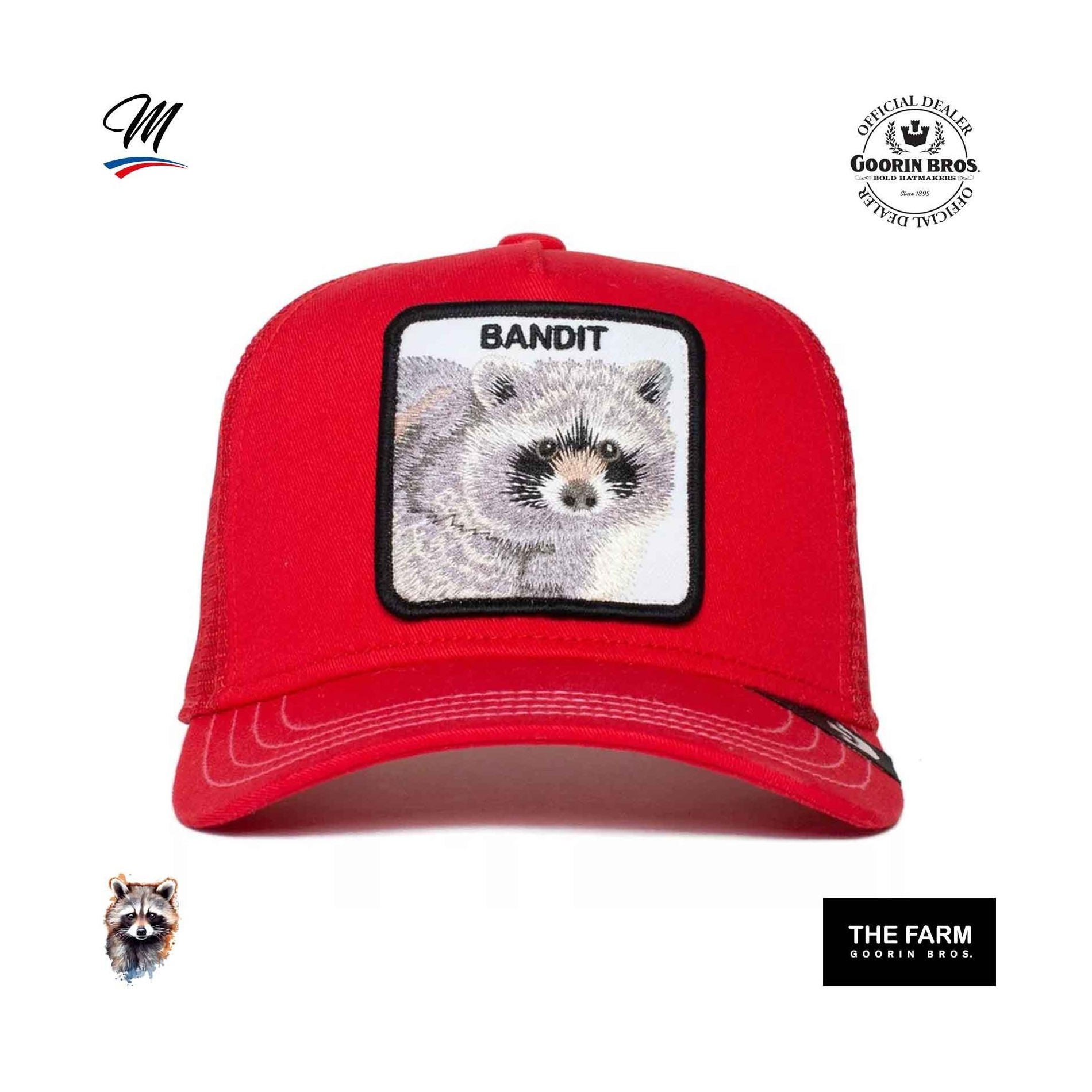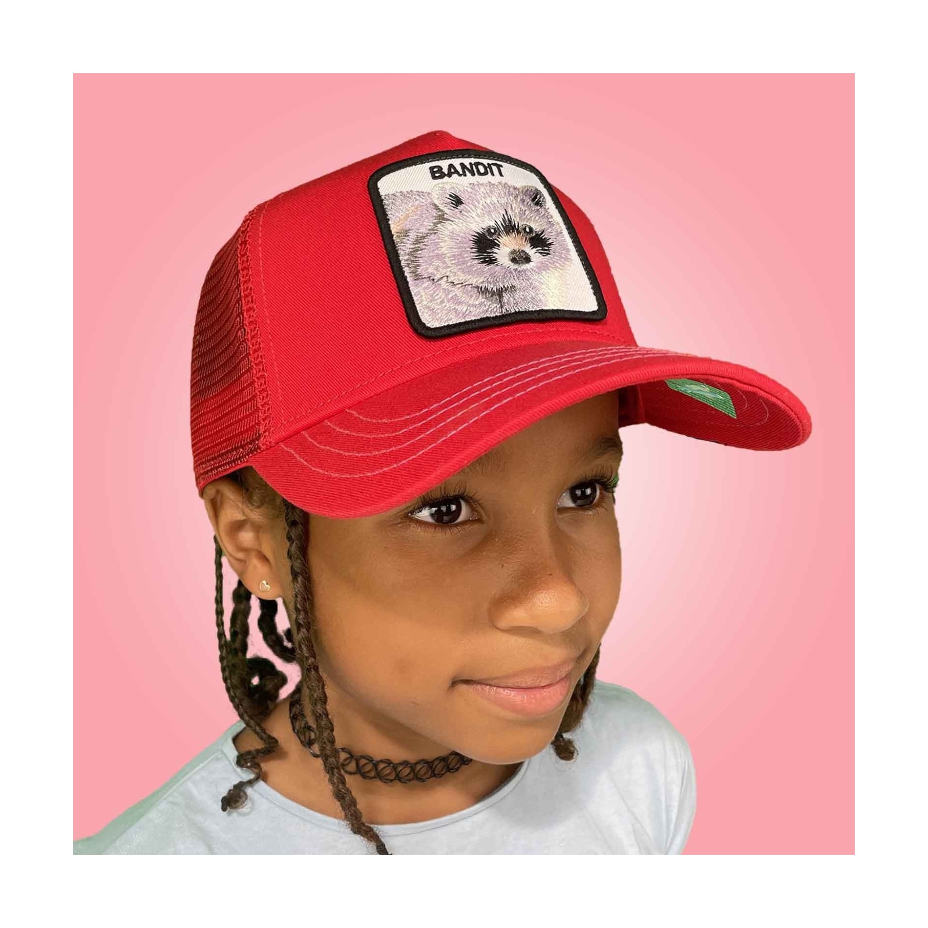 Äkta GOORIN BROS basebollkeps för barnTruckerkeps med mesh, patch broderad med en tvättbjörn och texten"BANDIT".