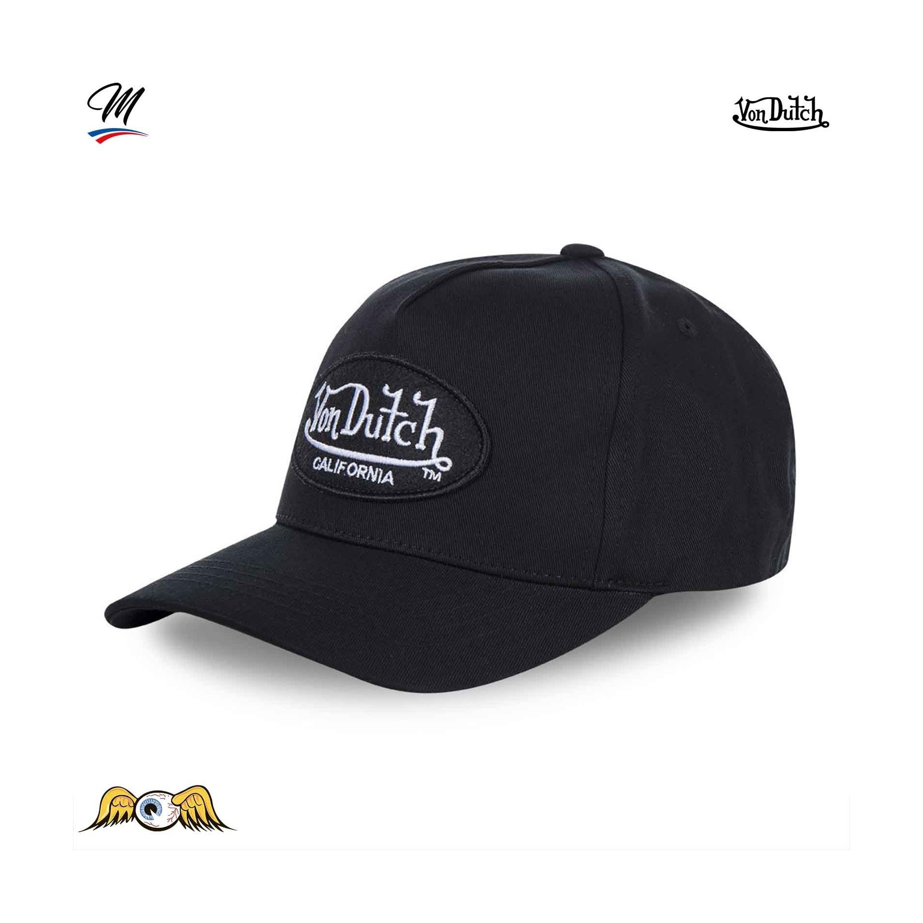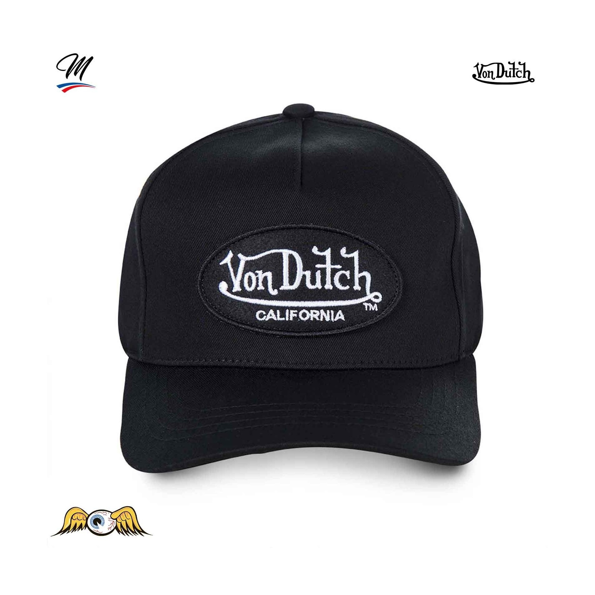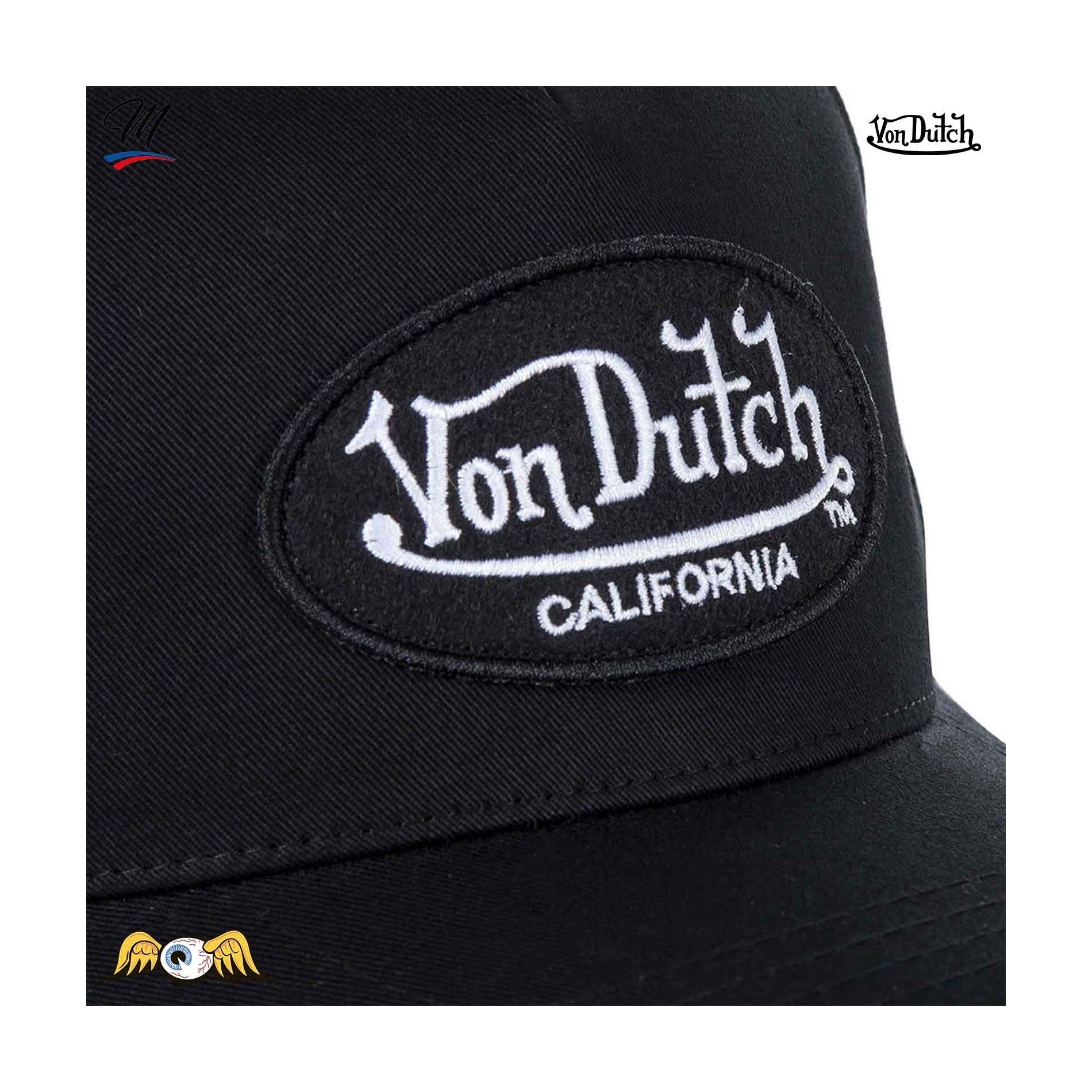 En stor patch med den klassiska Von Dutch -loggan är broderad på framsidan.